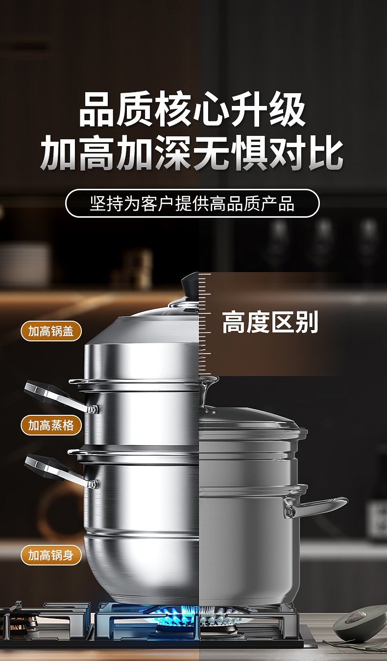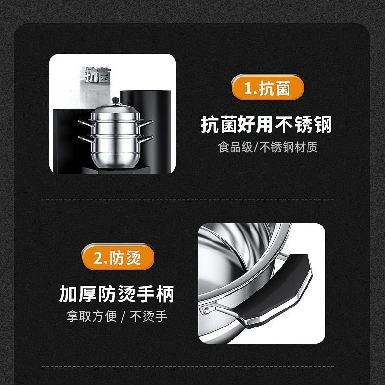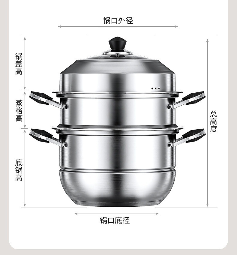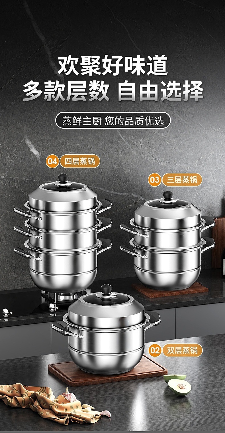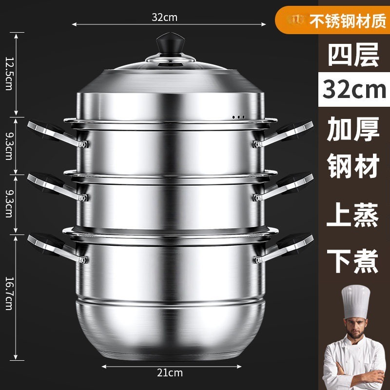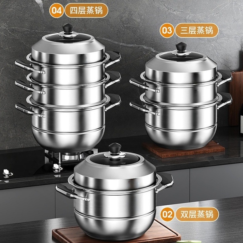 316不锈钢蒸锅特厚汤锅加厚加高蒸馒头三四层大容量家用蒸笼
