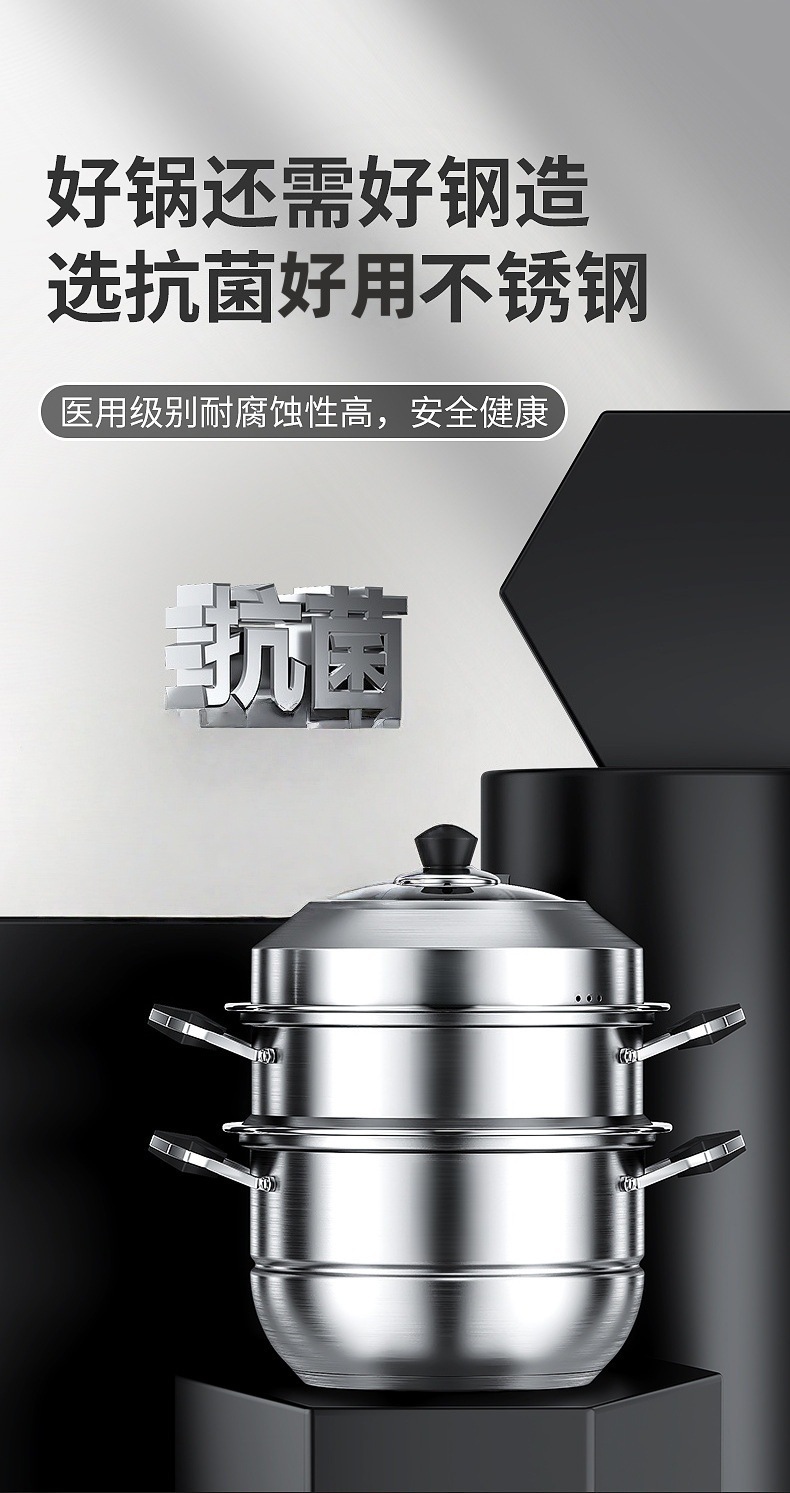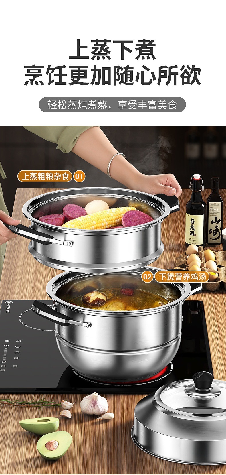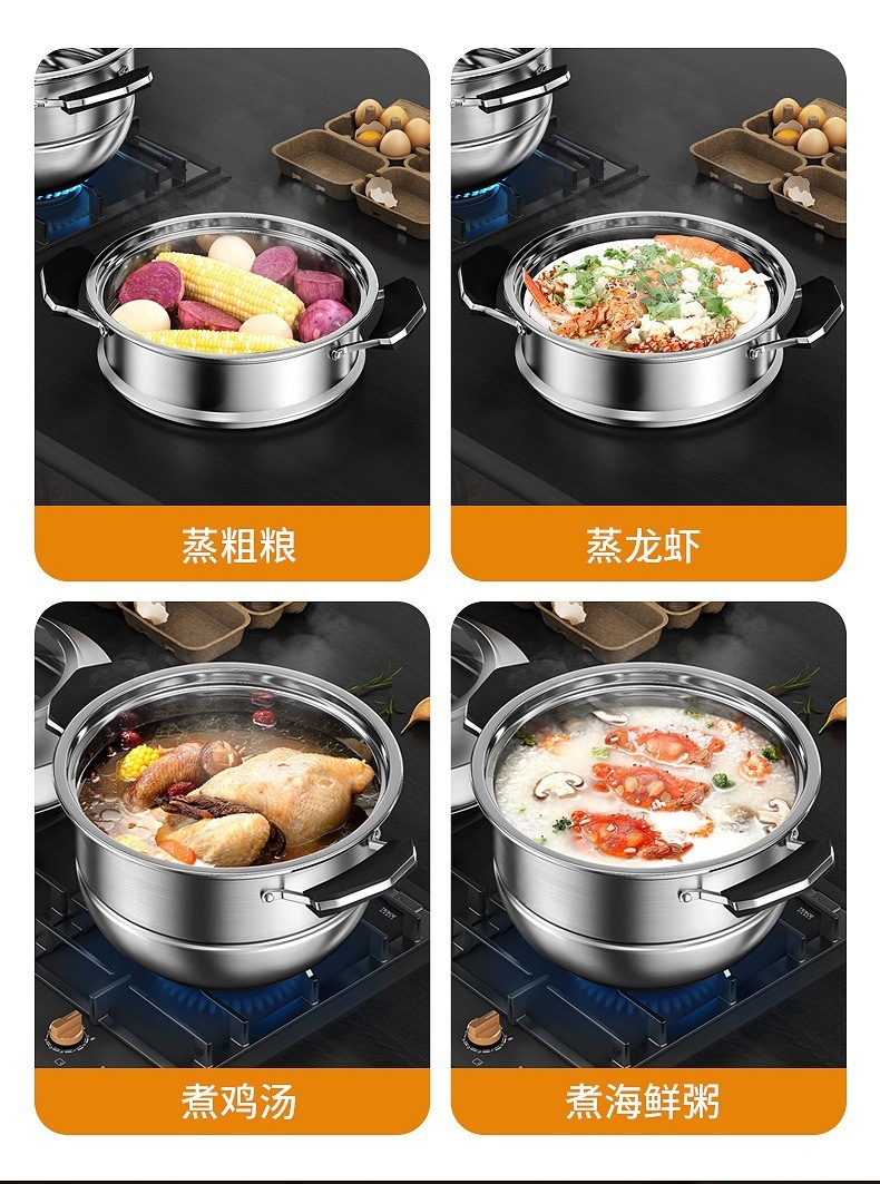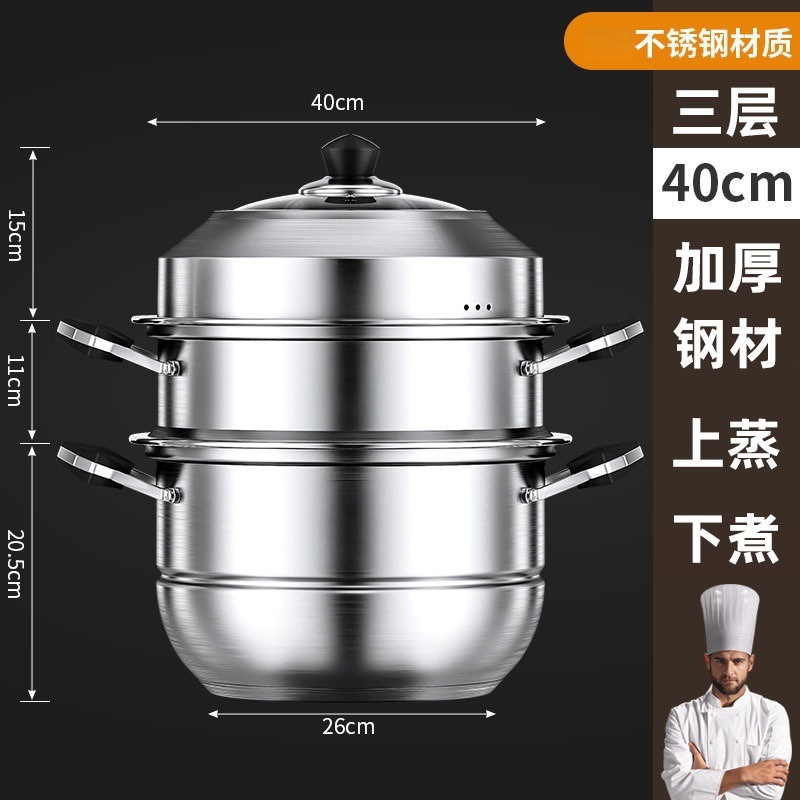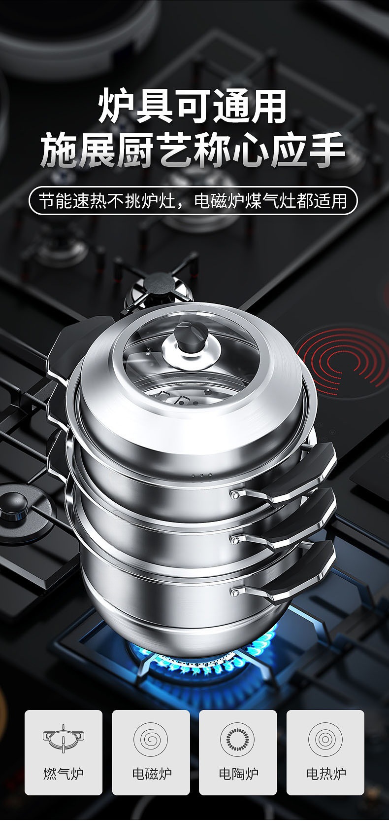 316不锈钢蒸锅特厚汤锅加厚加高蒸馒头三四层大容量家用蒸笼