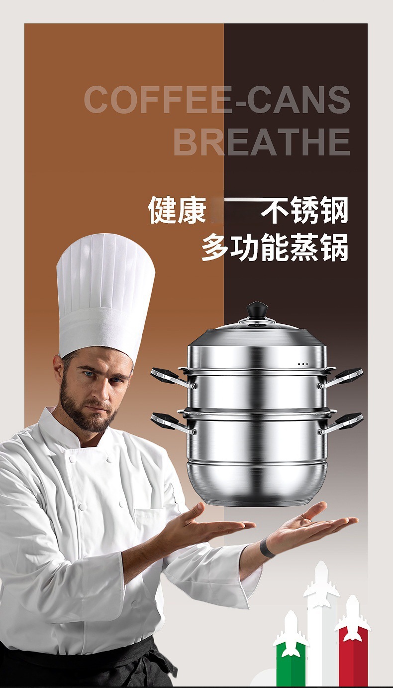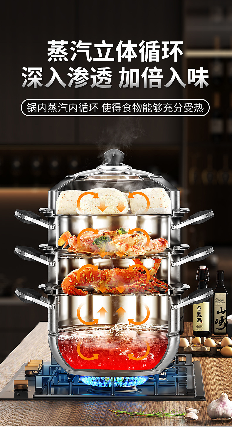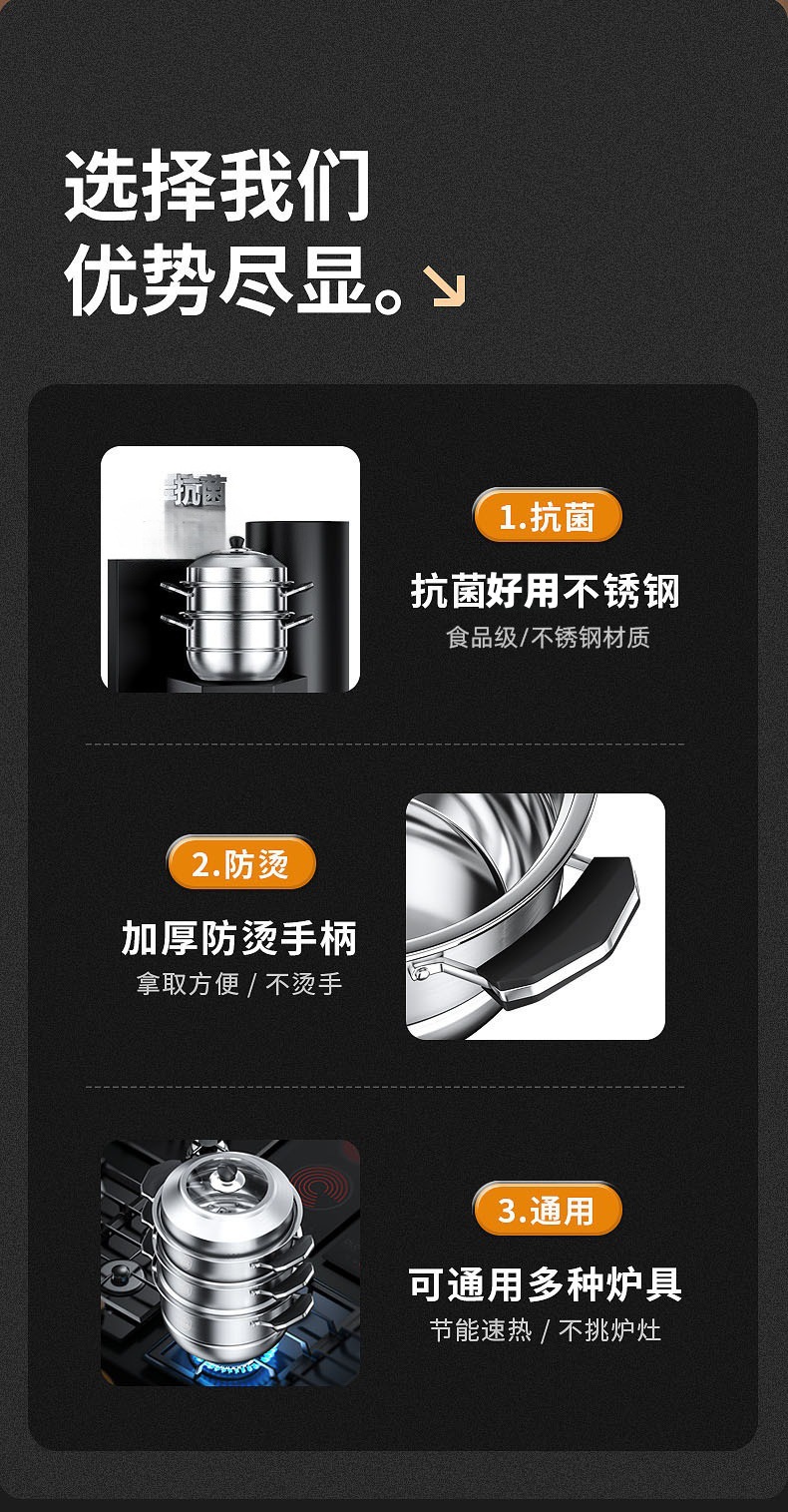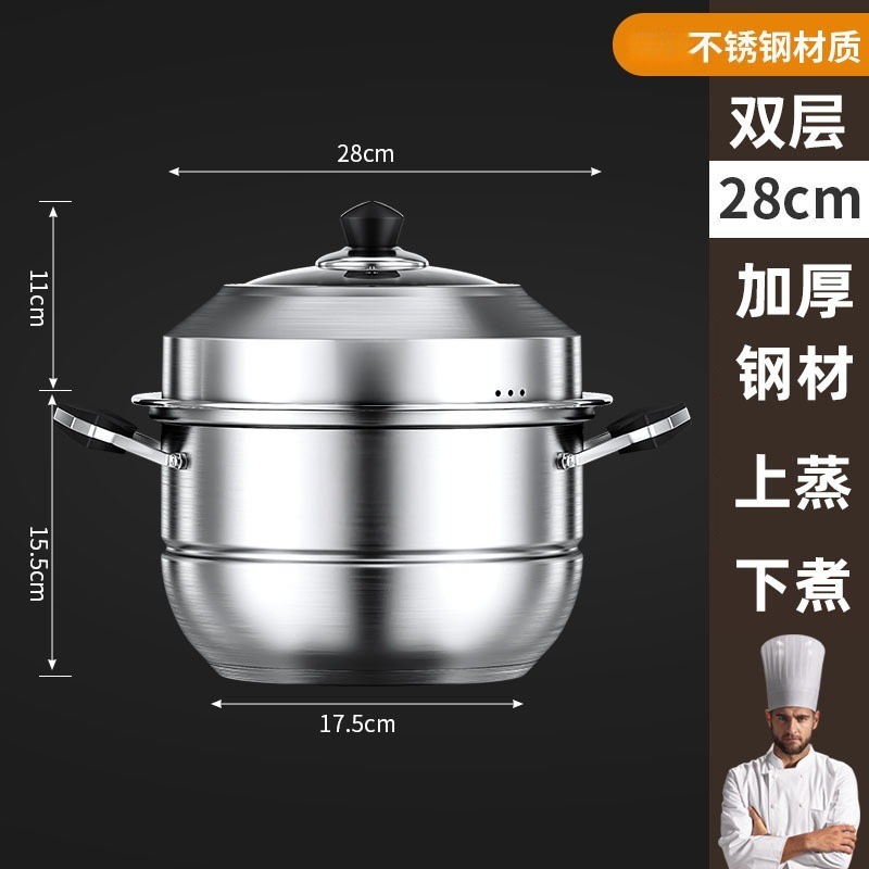 316不锈钢蒸锅特厚汤锅加厚加高蒸馒头三四层大容量家用蒸笼