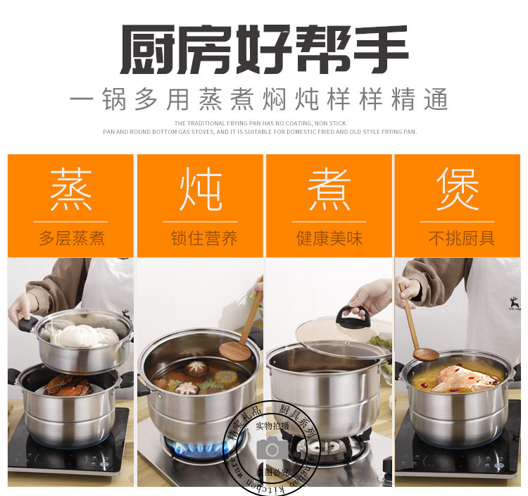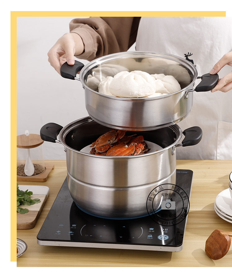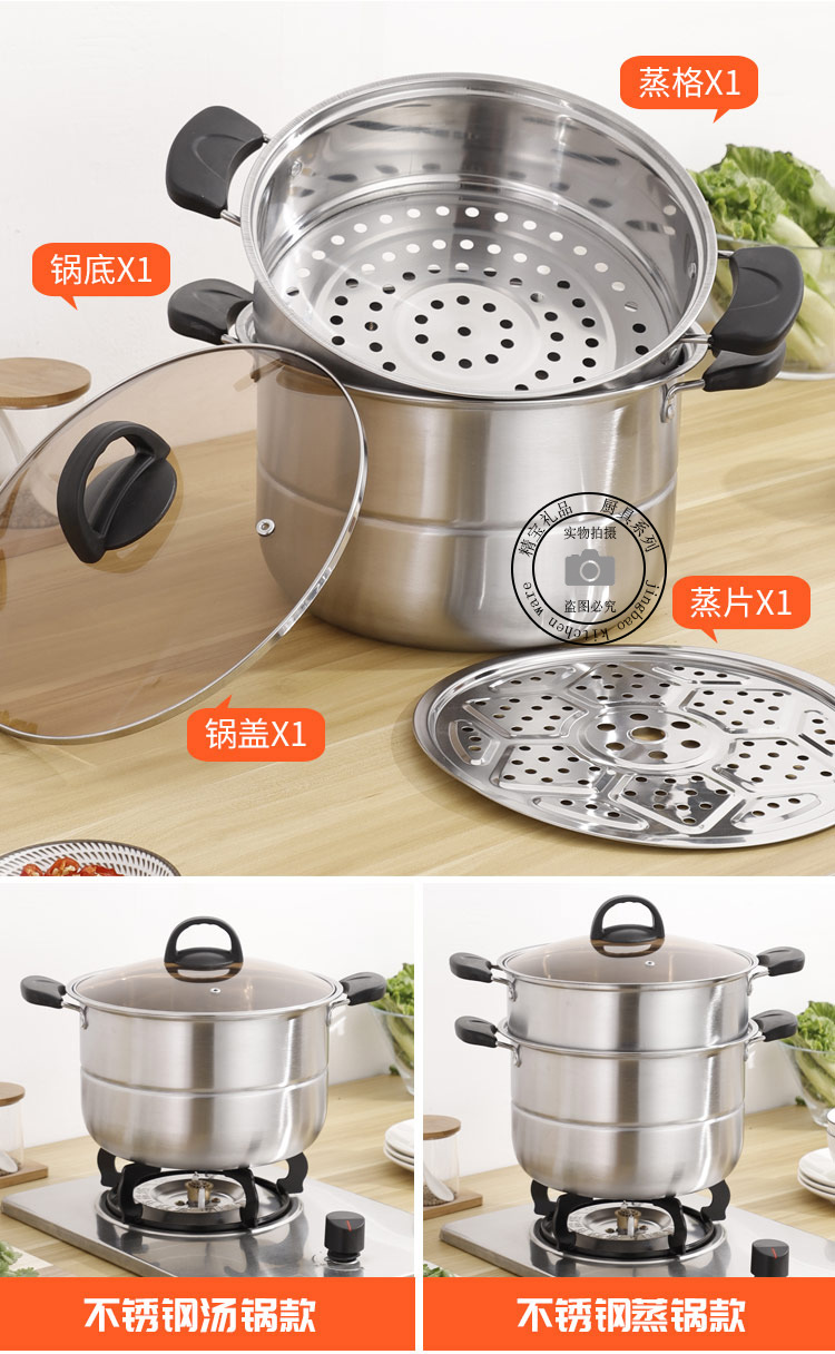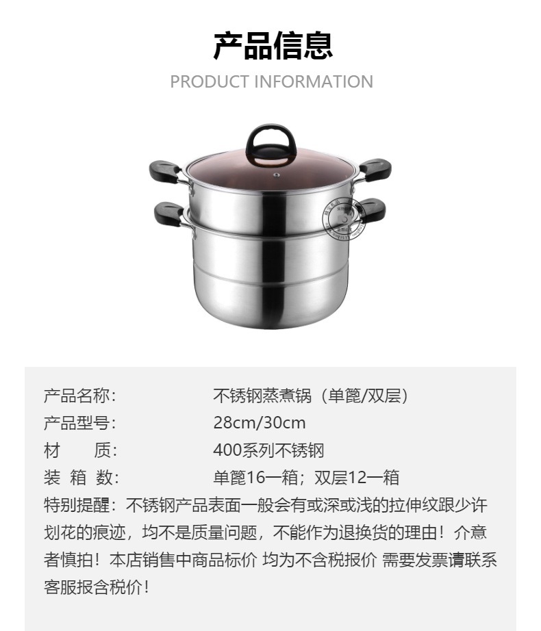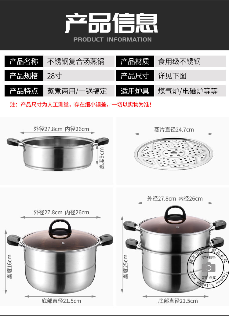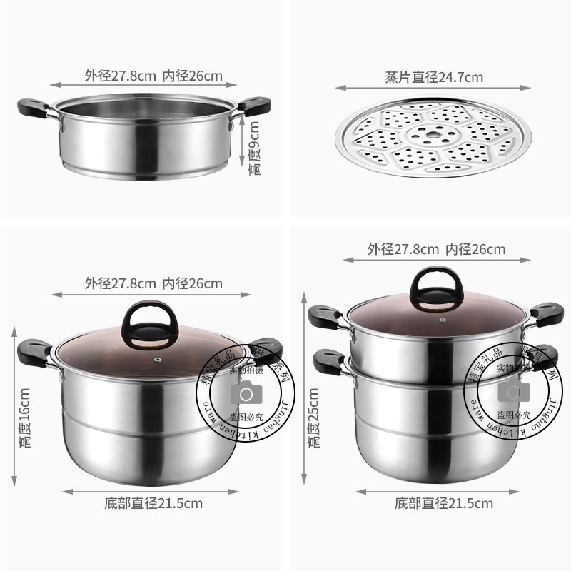 通用不锈钢蒸锅双层加厚蒸煮多用锅28cm不锈钢汤蒸锅蒸鱼蒸锅家用