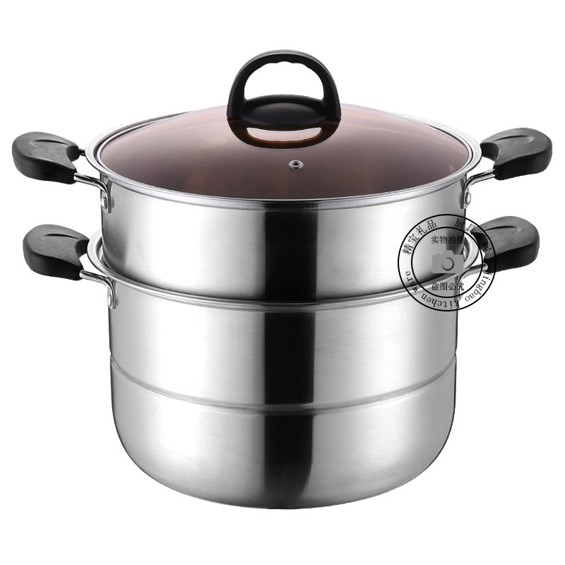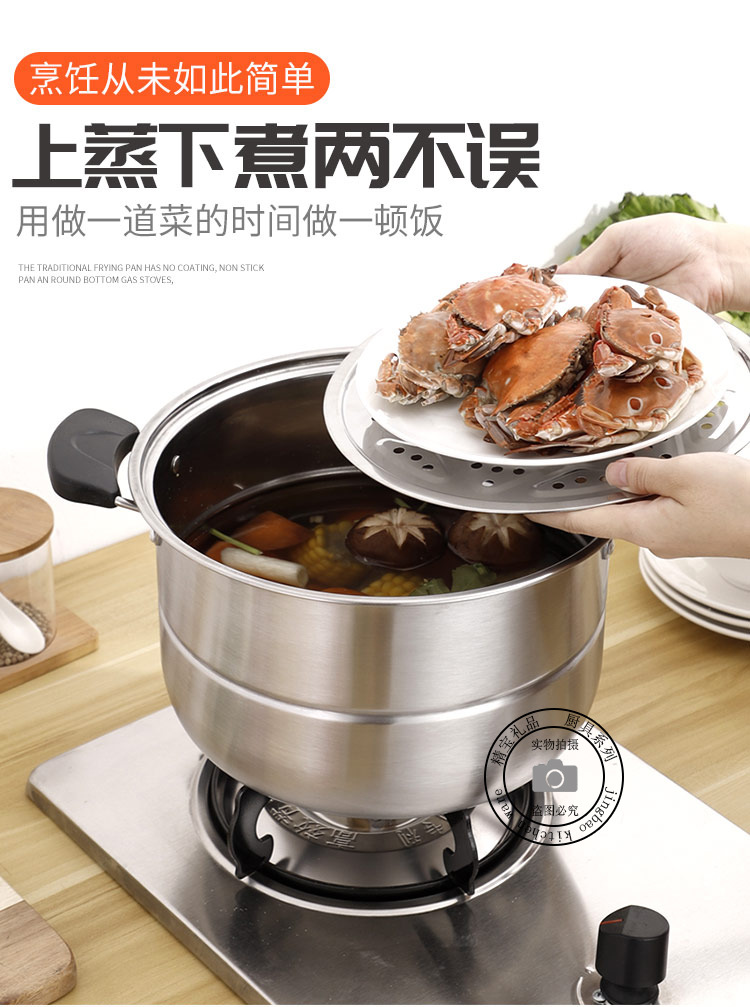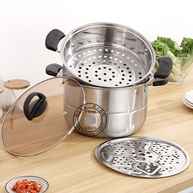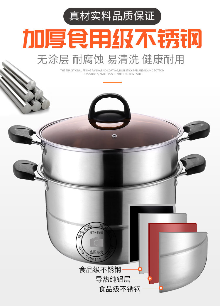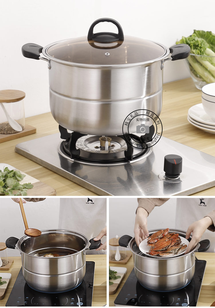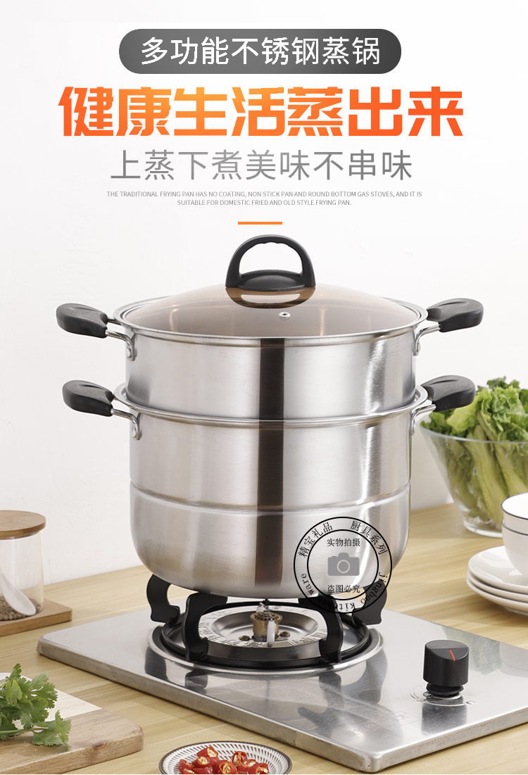 通用不锈钢蒸锅双层加厚蒸煮多用锅28cm不锈钢汤蒸锅蒸鱼蒸锅家用