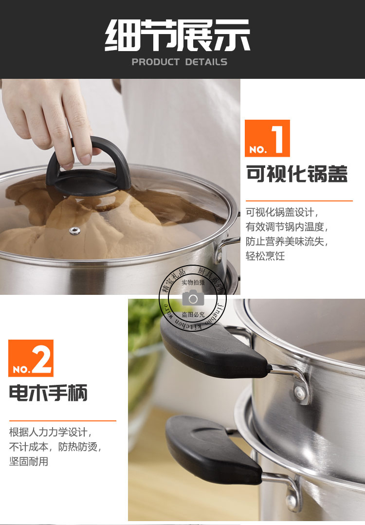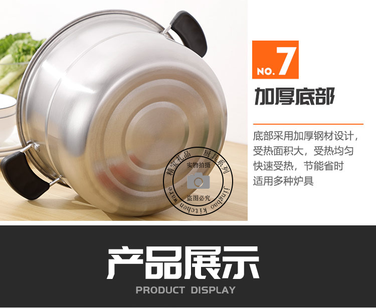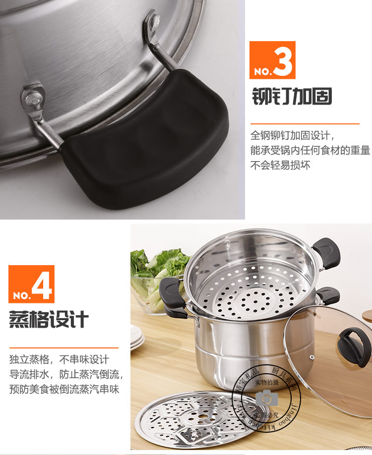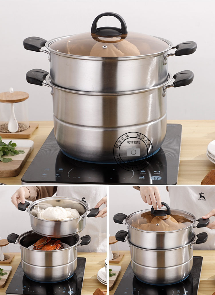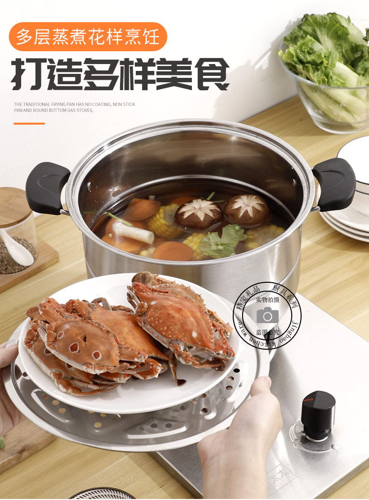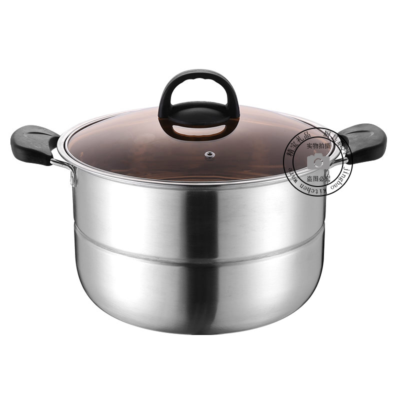 通用不锈钢蒸锅双层加厚蒸煮多用锅28cm不锈钢汤蒸锅蒸鱼蒸锅家用