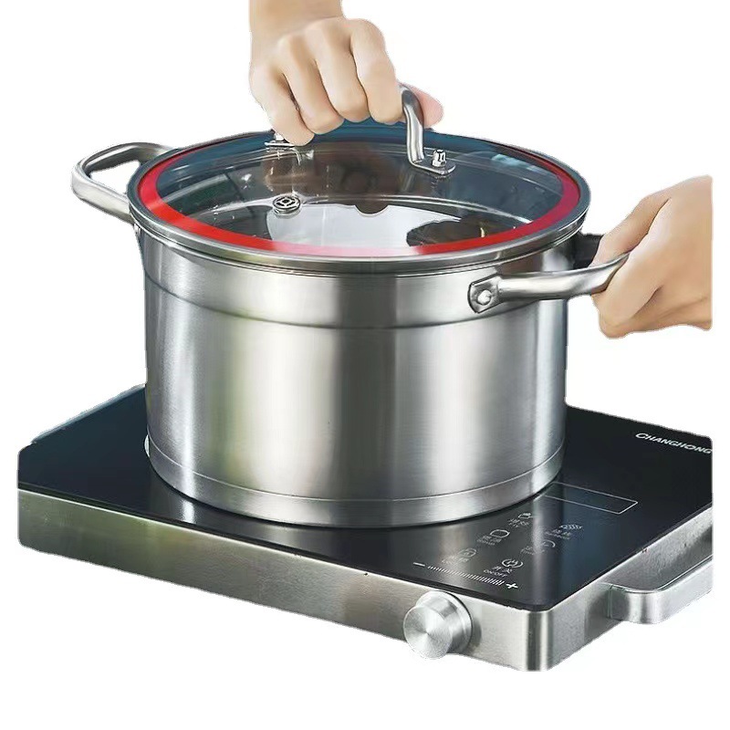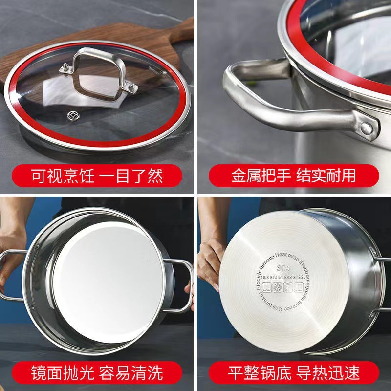 厂家304不锈钢直角汤锅双耳锅三层复底电磁炉锅礼品