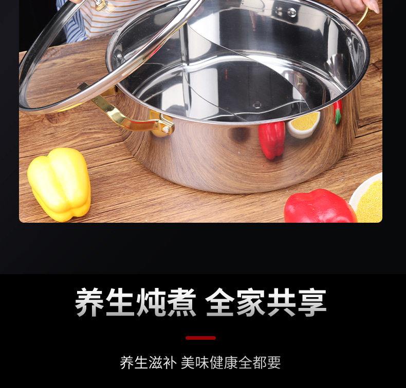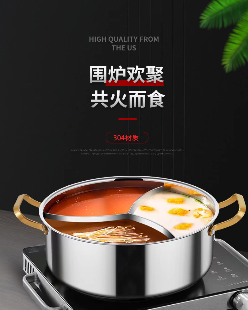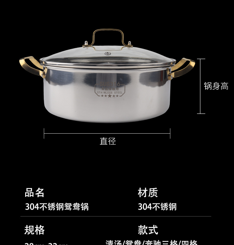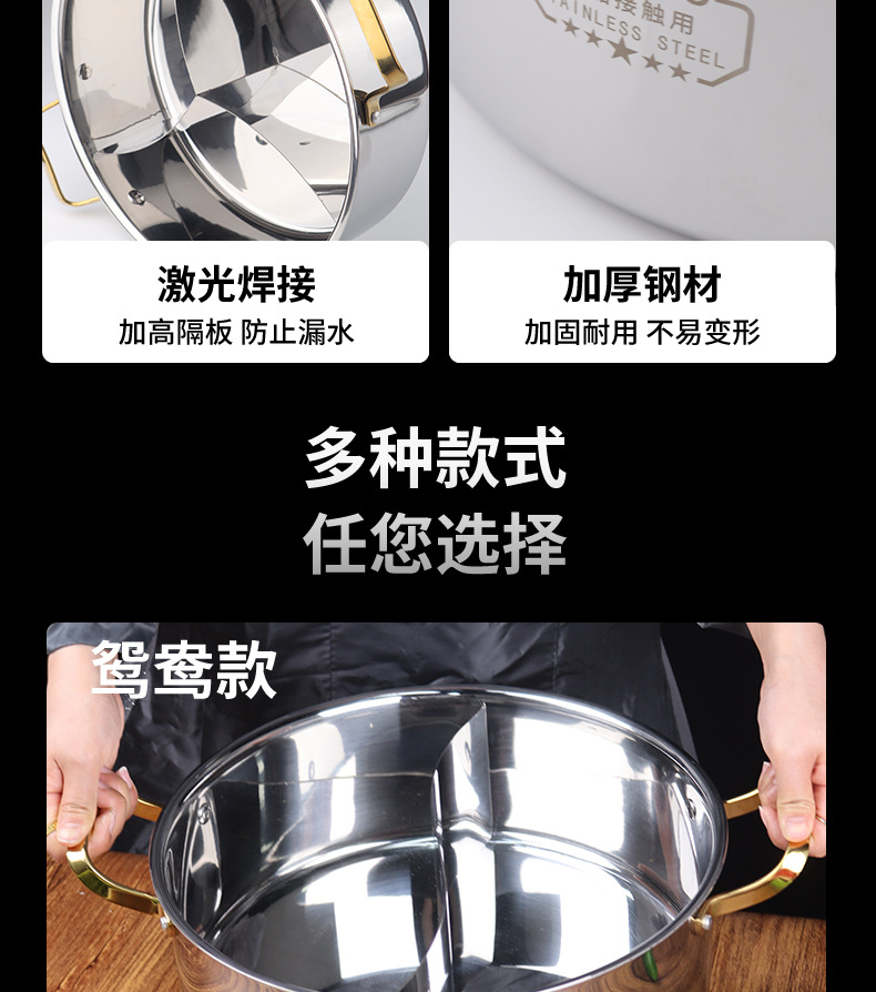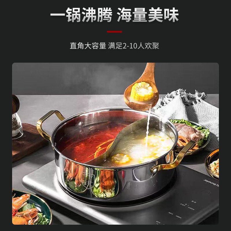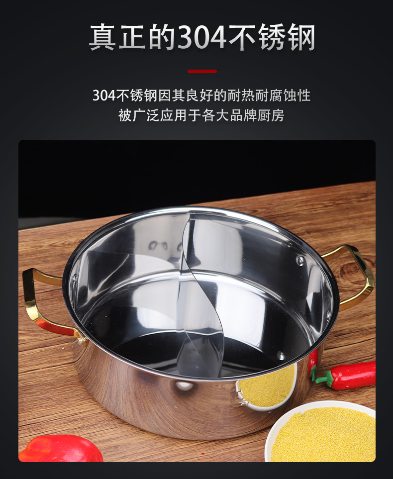 乐在316L/304不锈钢食品级加厚鸳鸯汤锅火锅商用家用燃气电磁炉