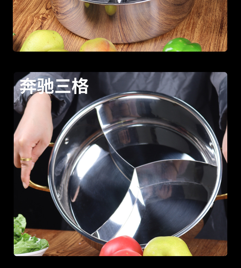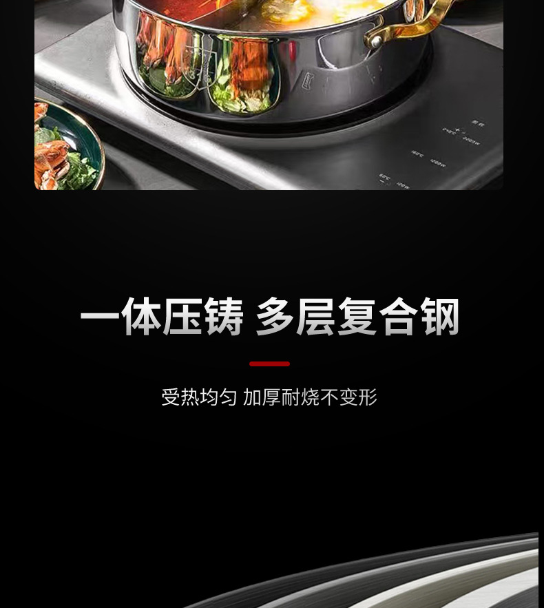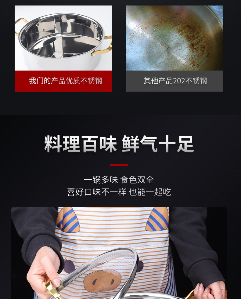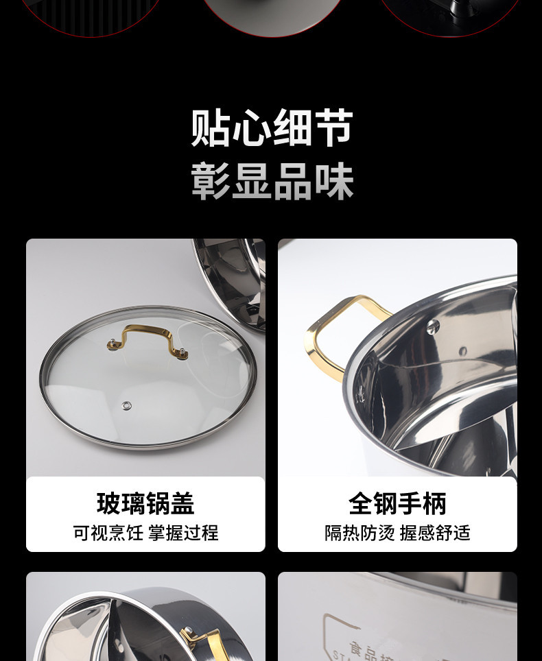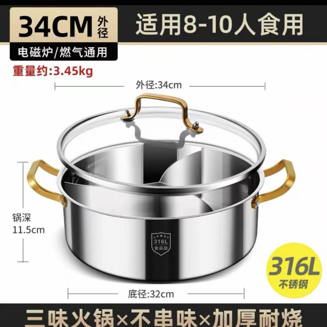 乐在316L/304不锈钢食品级加厚鸳鸯汤锅火锅商用家用燃气电磁炉