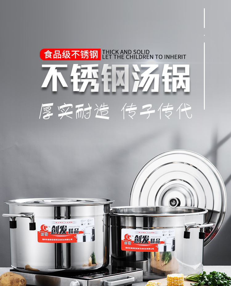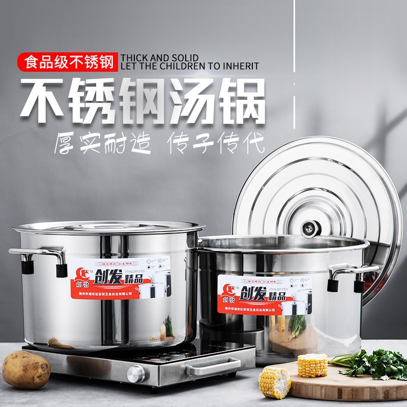 定制创发食品级不锈钢汤锅加厚双耳带盖食堂水桶商用卤桶炖锅多用