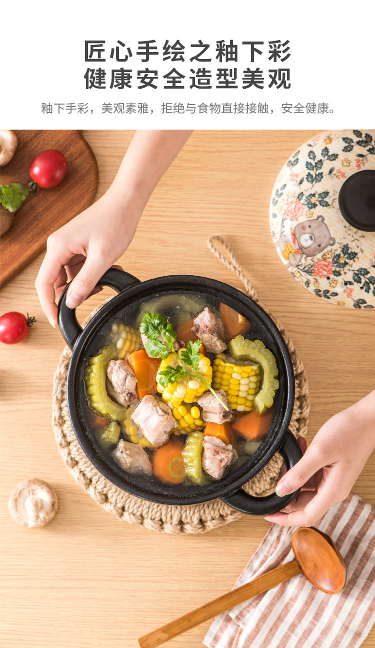 厂家批发网红北欧卡通砂锅耐热电磁炉明火家用煲汤炖锅沙锅礼品