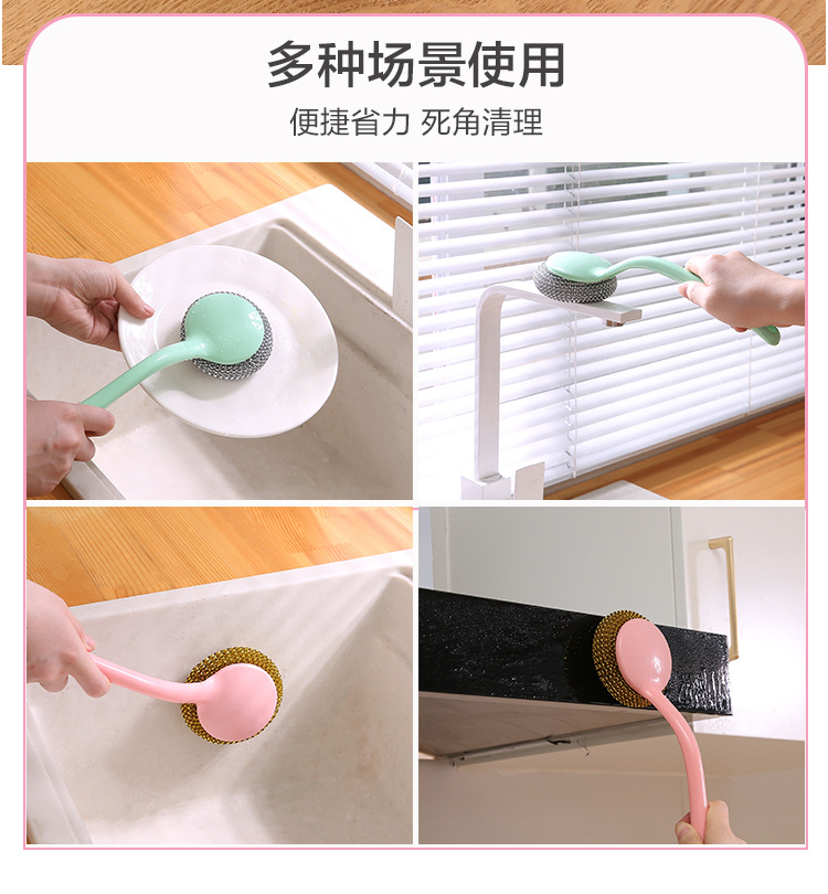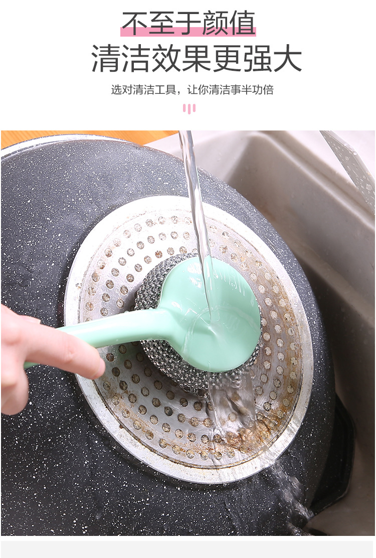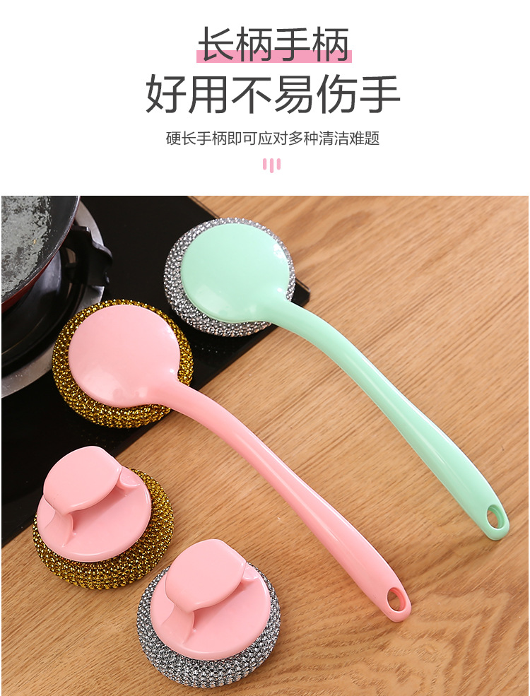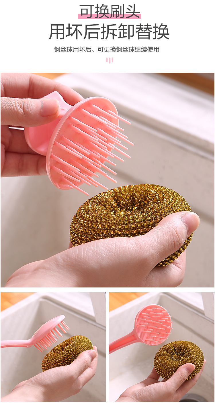 清洁球刷锅洗碗神器 可拆洗pet钢丝球厨房清洁刷不粘锅手柄洗锅刷