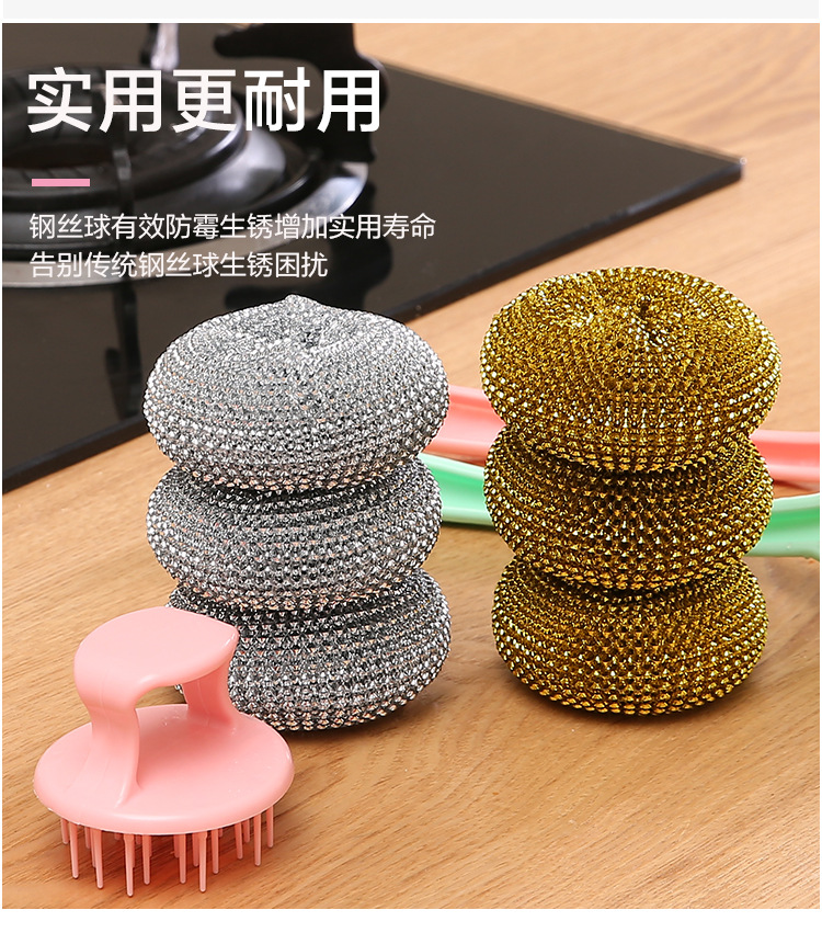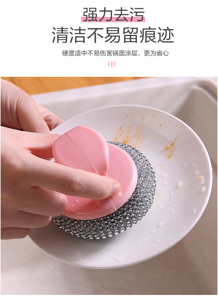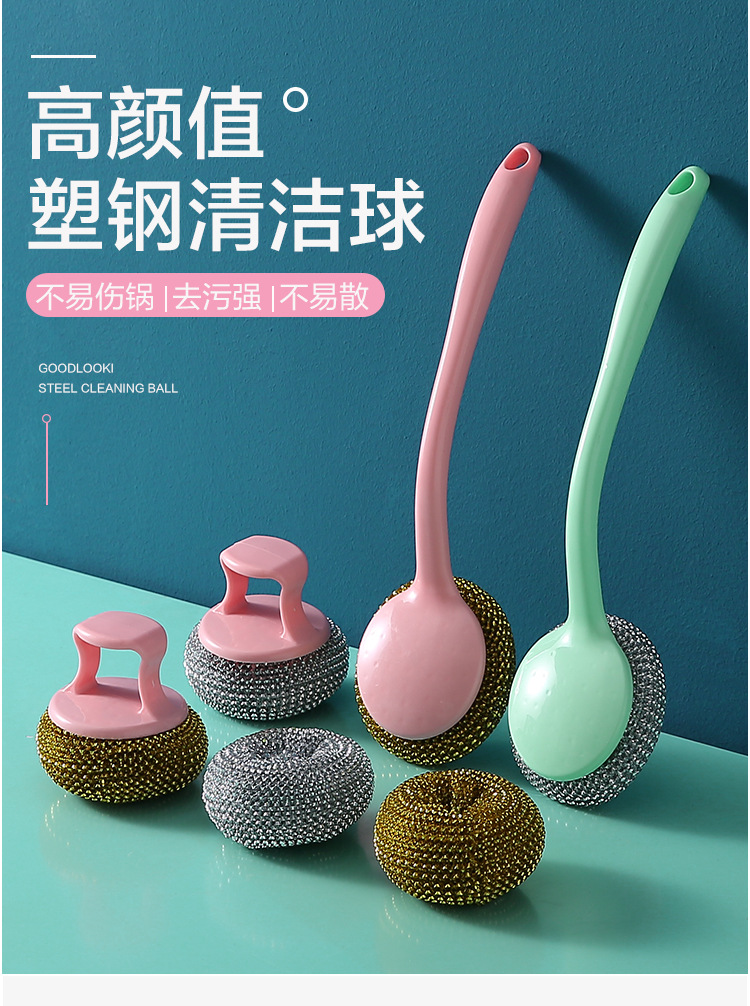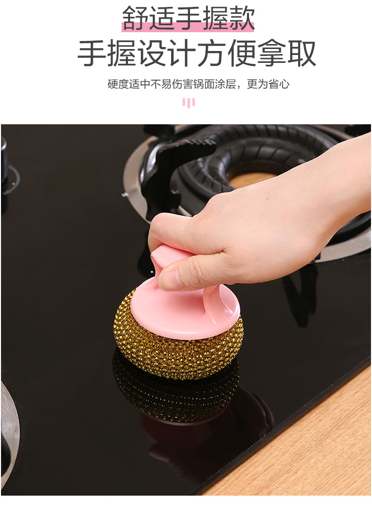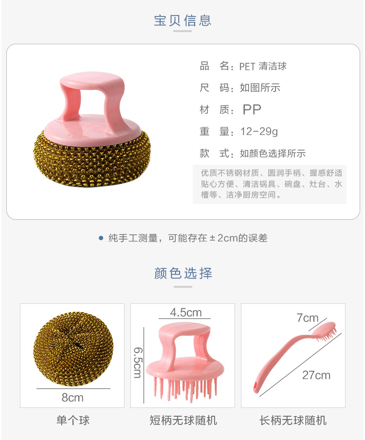 清洁球刷锅洗碗神器 可拆洗pet钢丝球厨房清洁刷不粘锅手柄洗锅刷