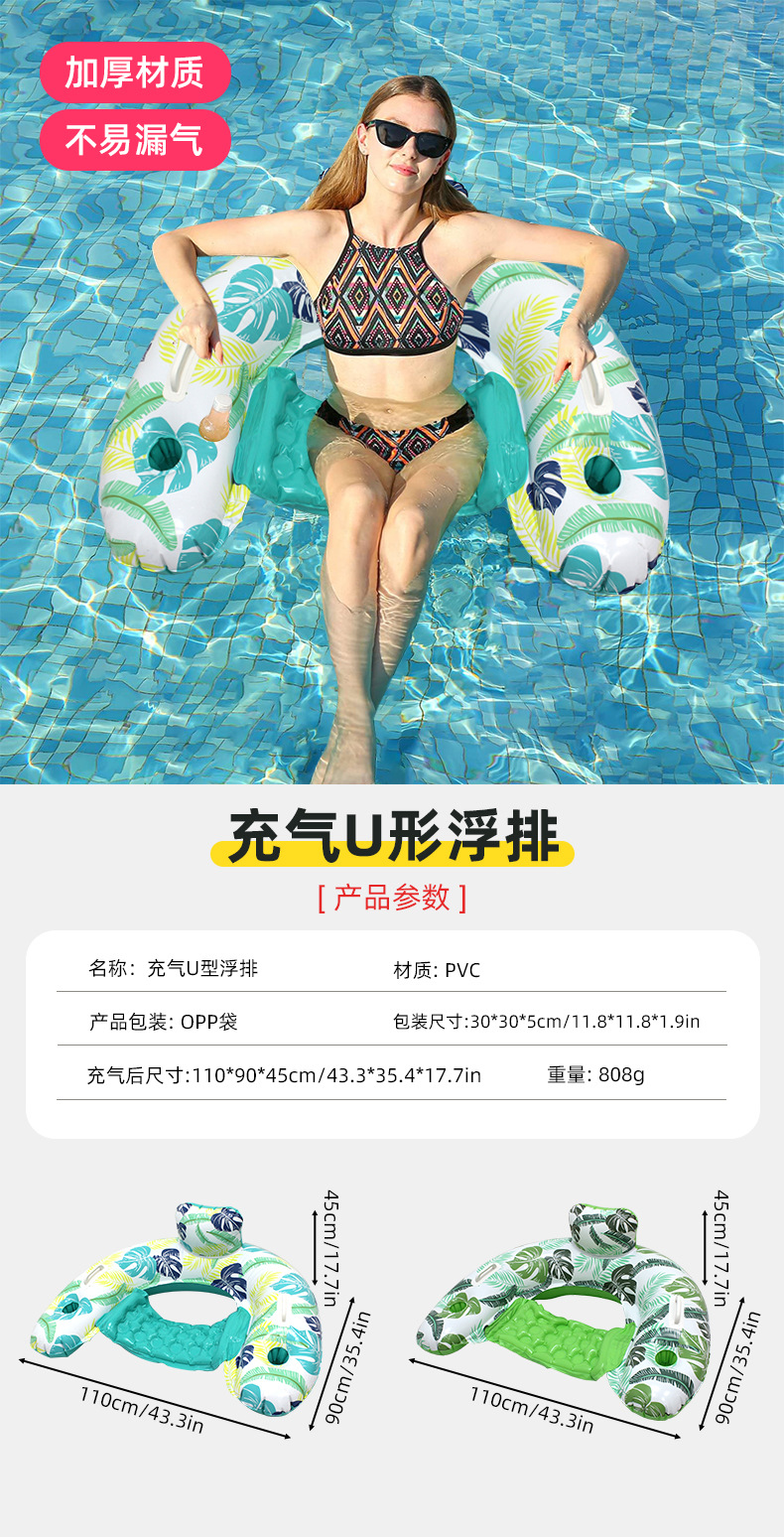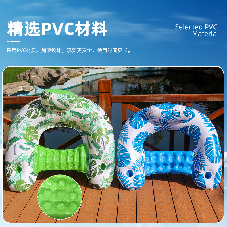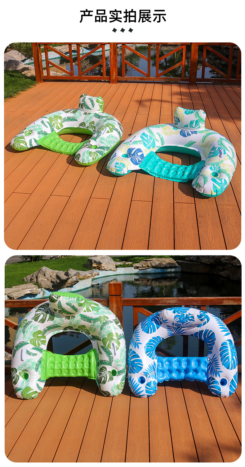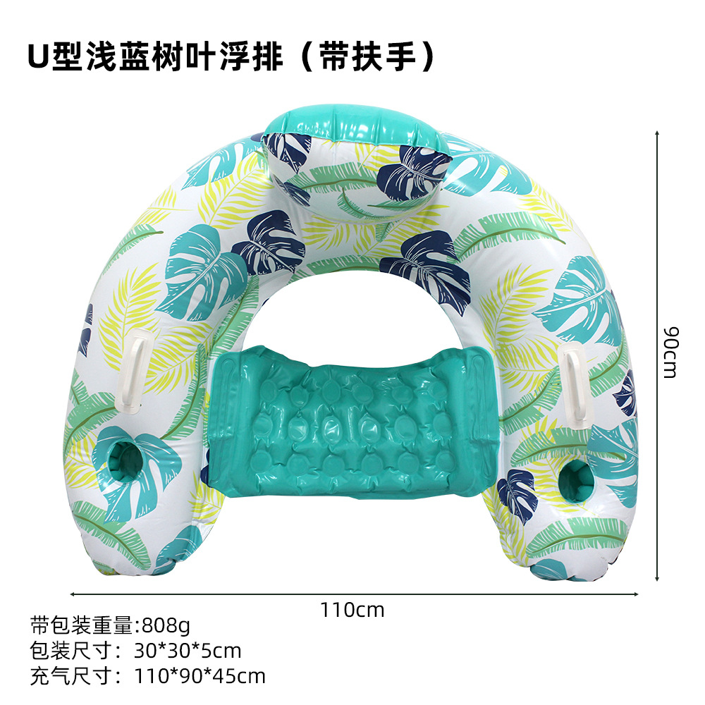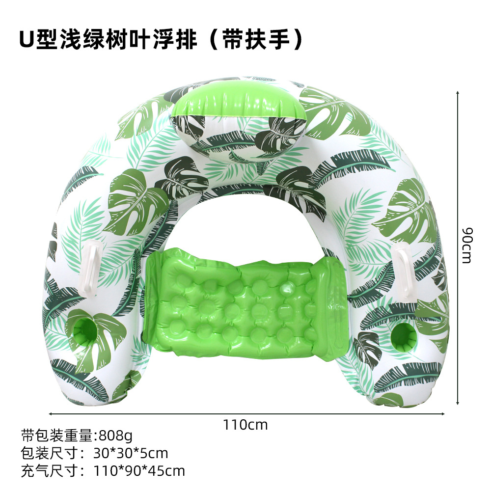 U型树叶充气浮排pvc带杯座躺椅水上可折叠靠背浮床水上充气躺椅