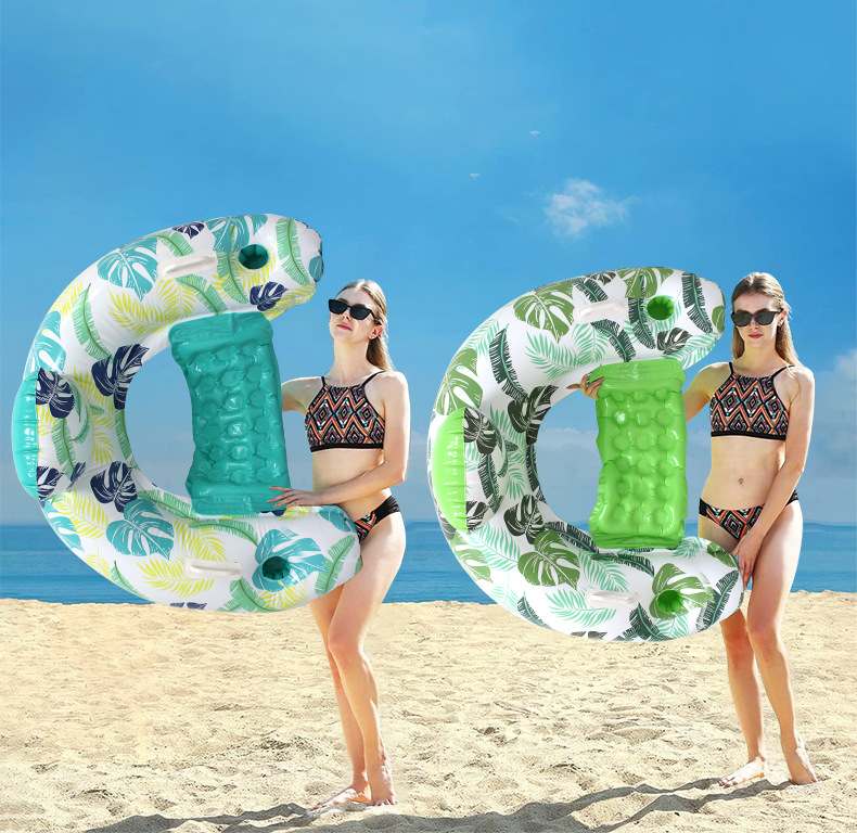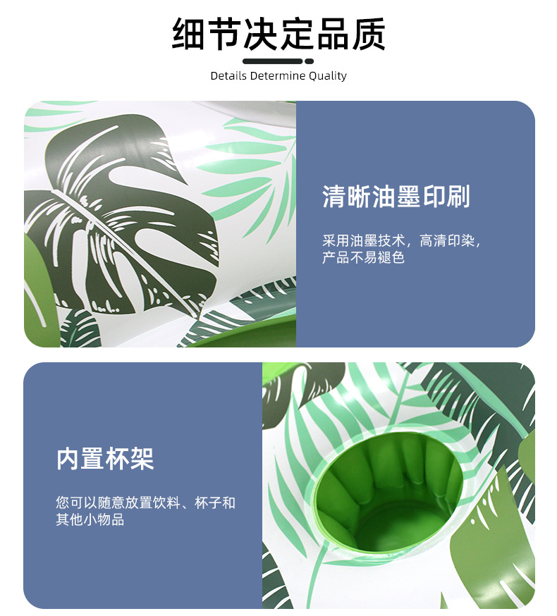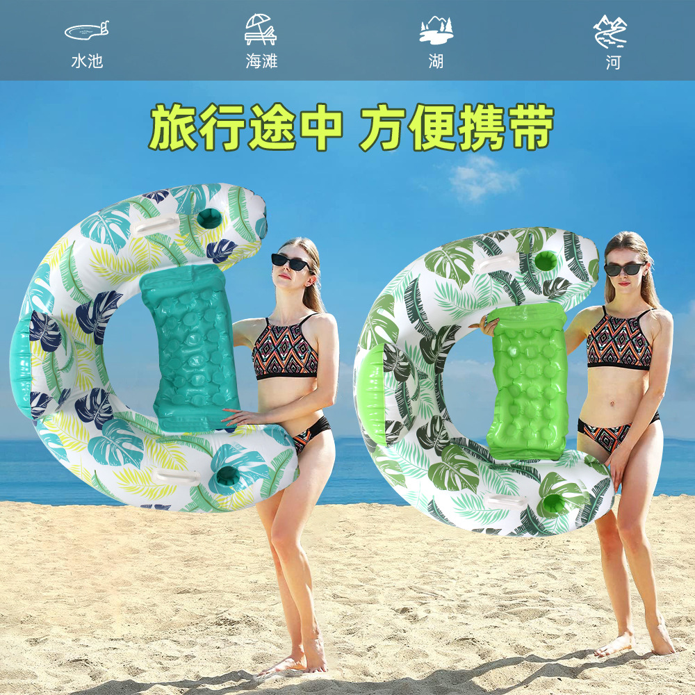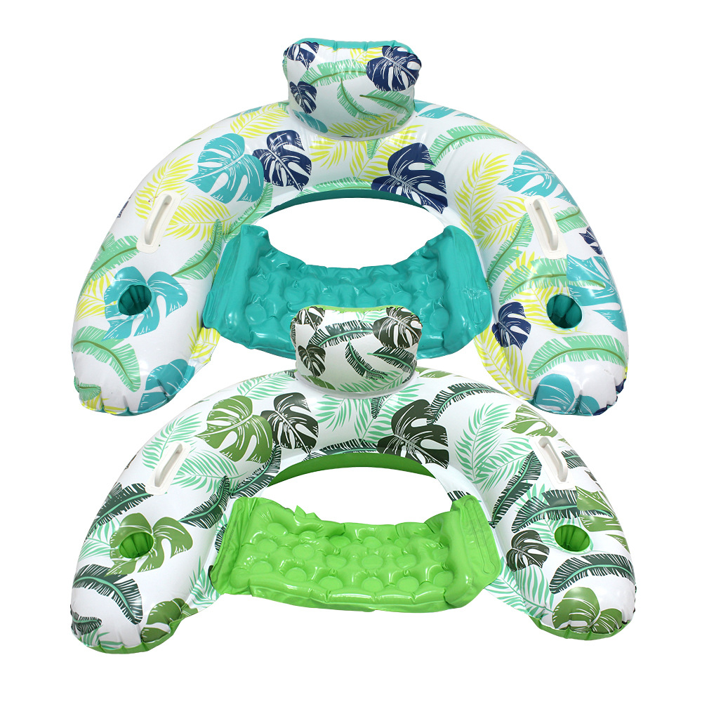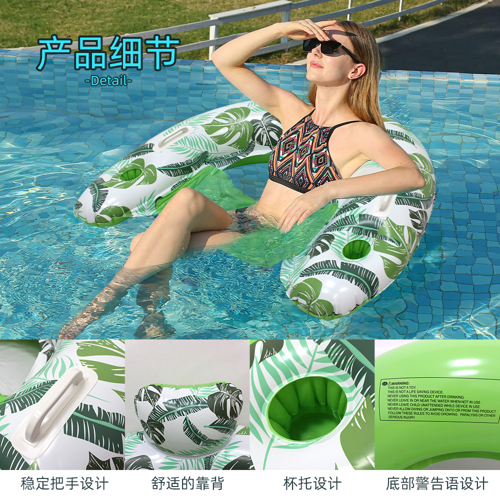 U型树叶充气浮排pvc带杯座躺椅水上可折叠靠背浮床水上充气躺椅