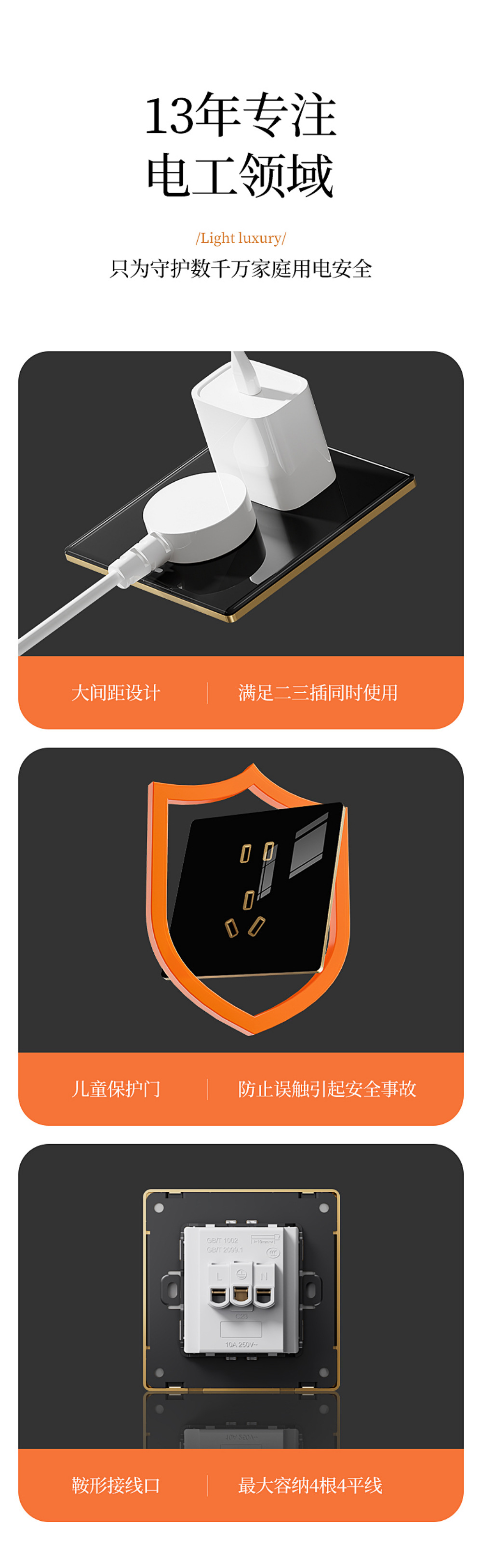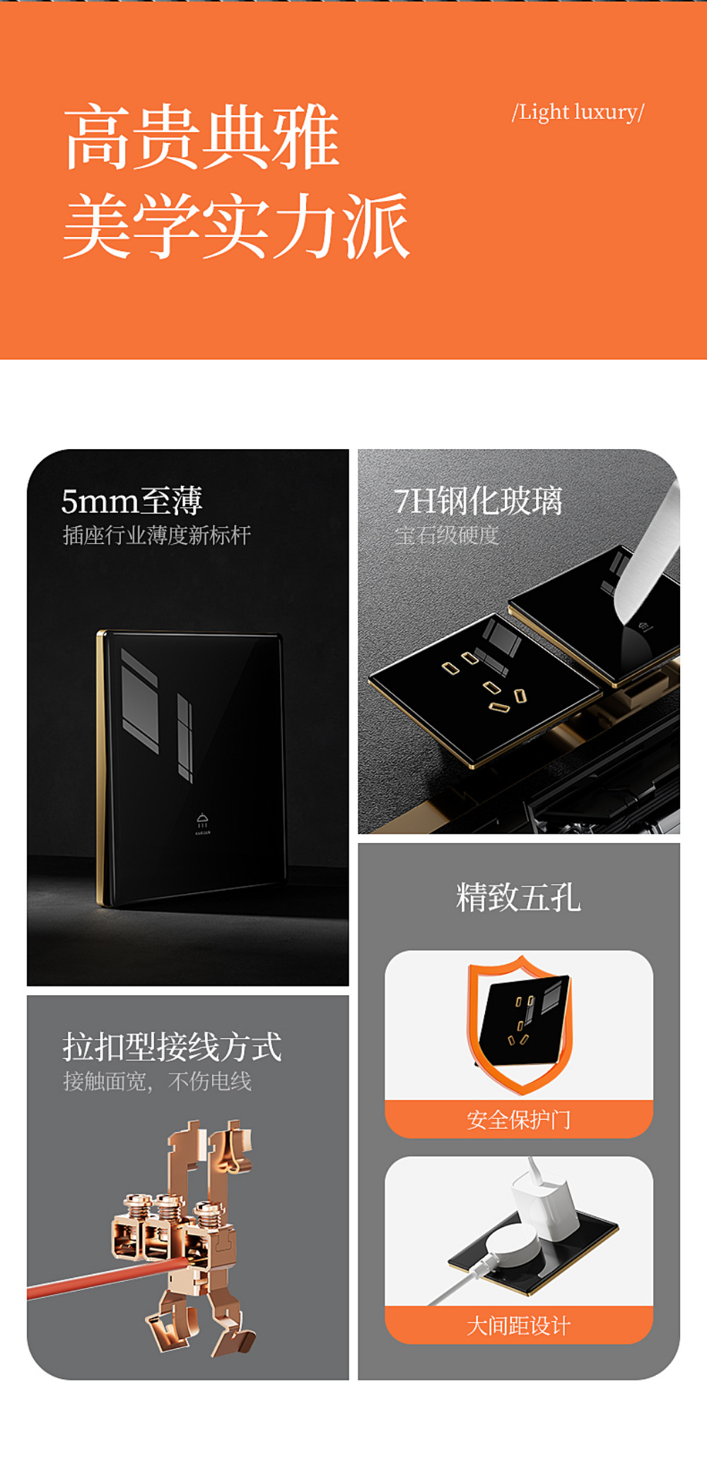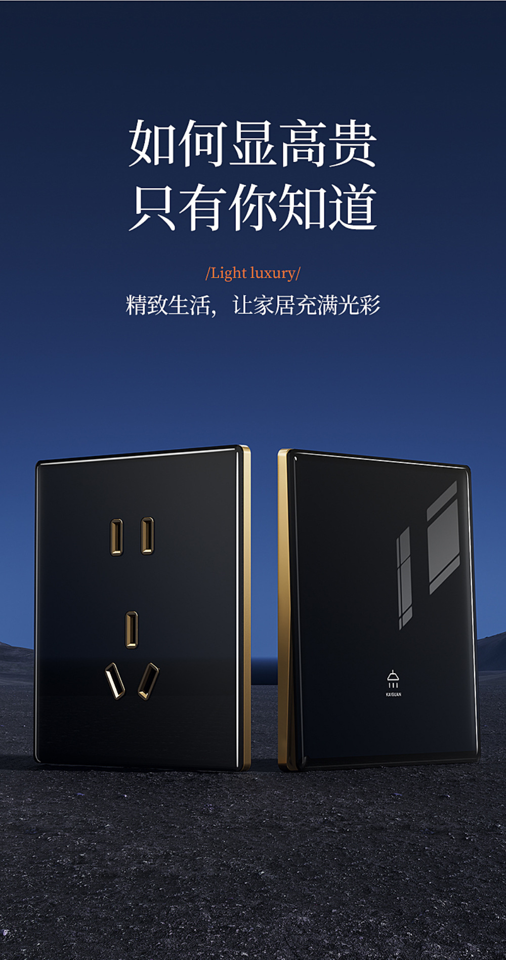 | 【玻璃黑色】二开五孔双控 | USD $2.63 | 48644 piece available |