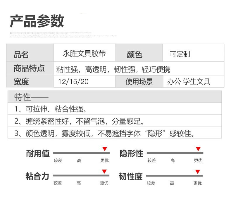 永胜胶带文具小胶布2cm宽办公花艺胶带透明学生文具胶带整箱批发