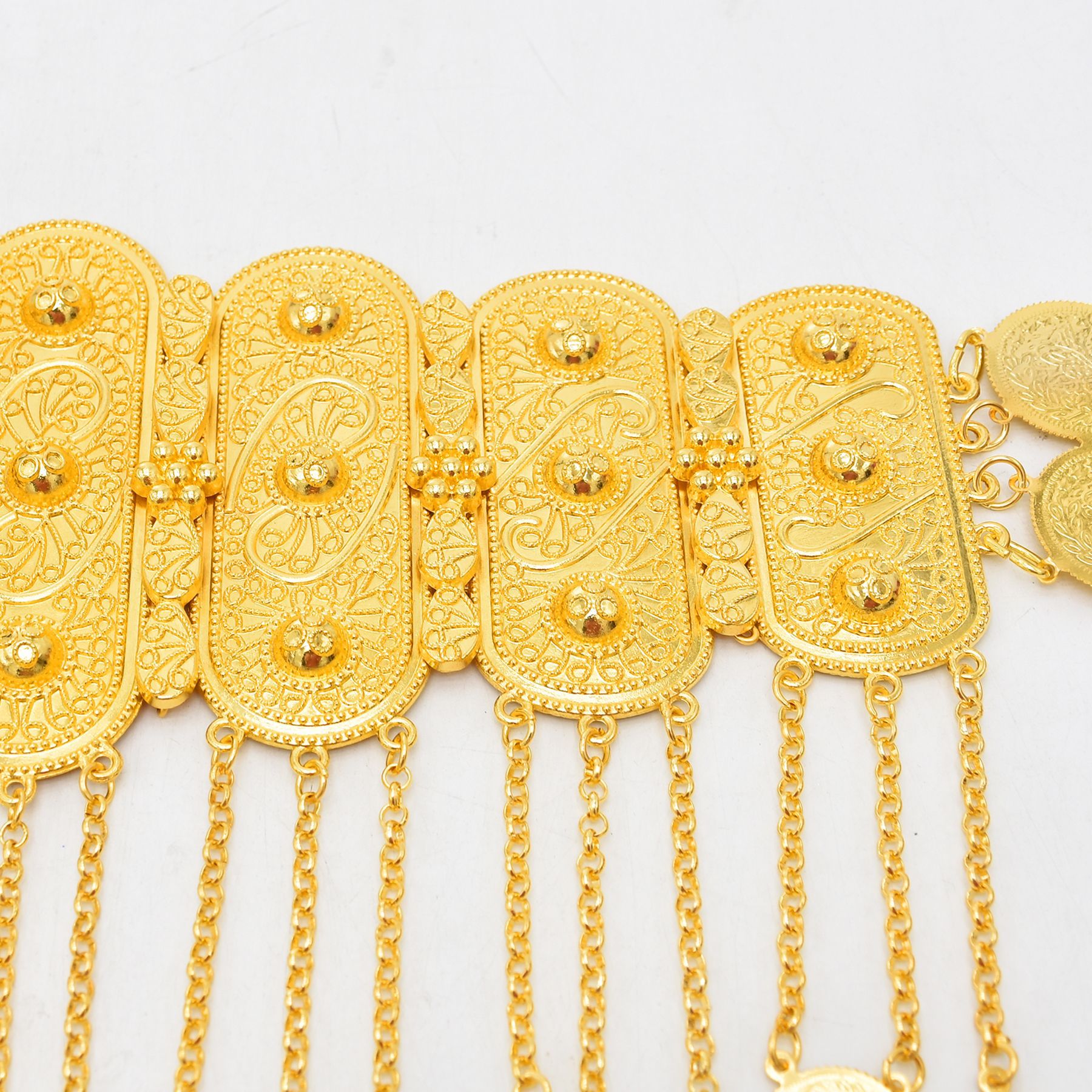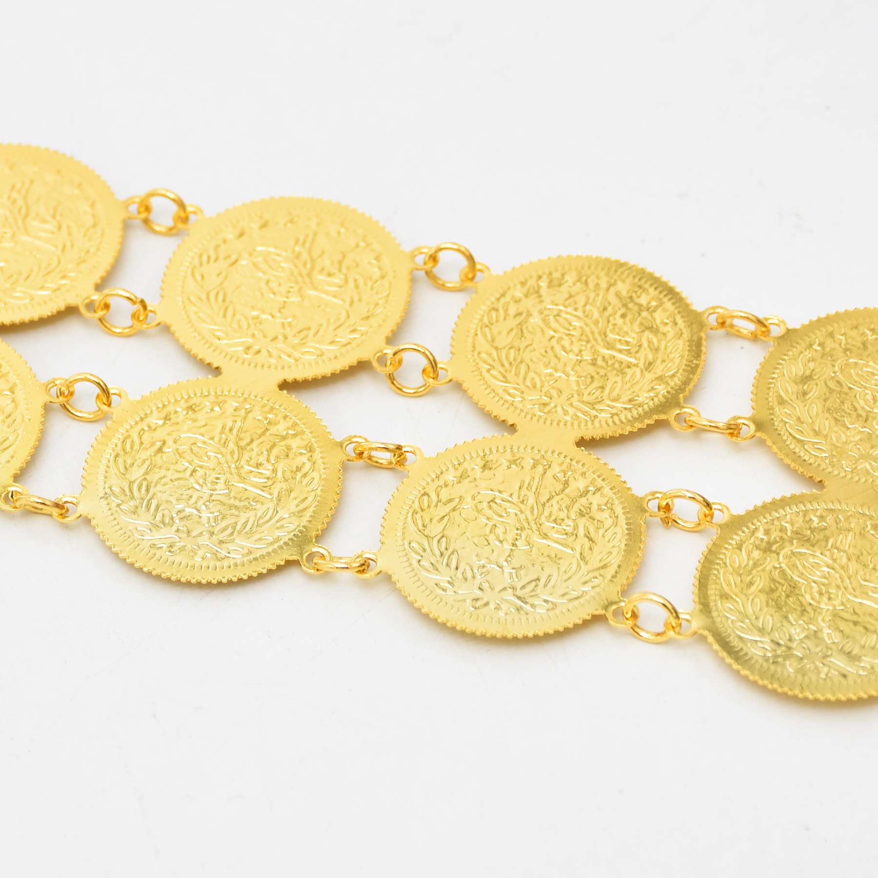 新款跨境合金钱币腰链几何流苏吊坠腰饰长款显瘦民族风身体链