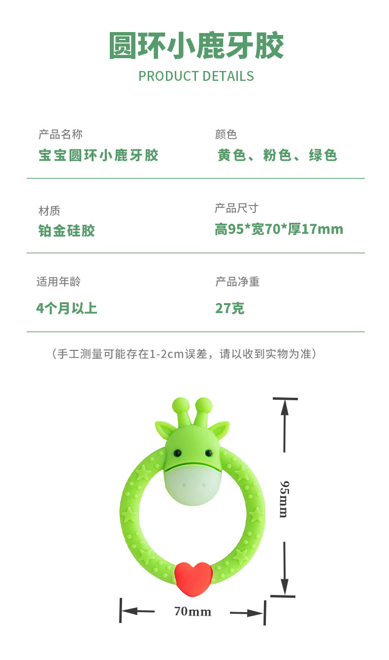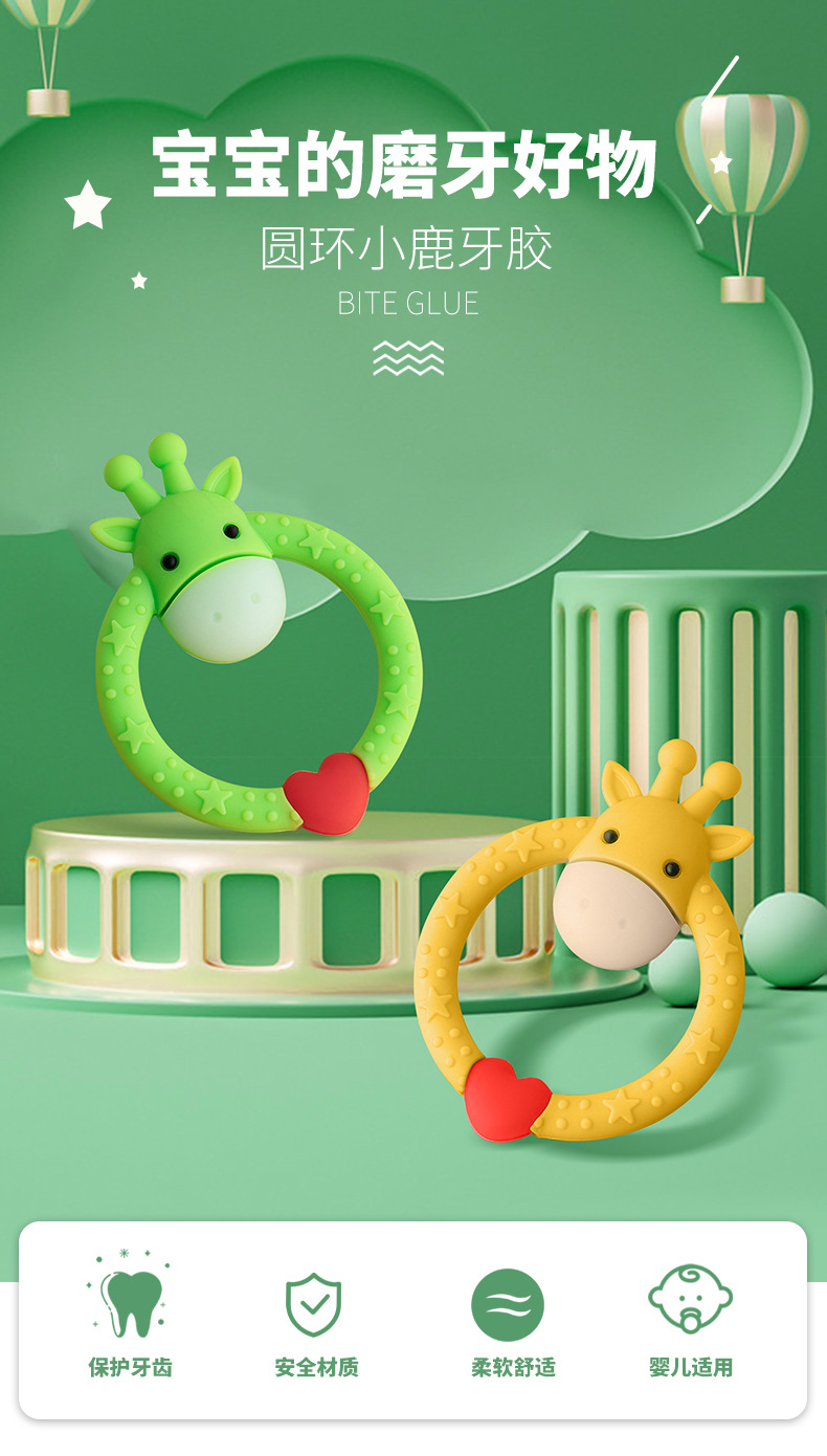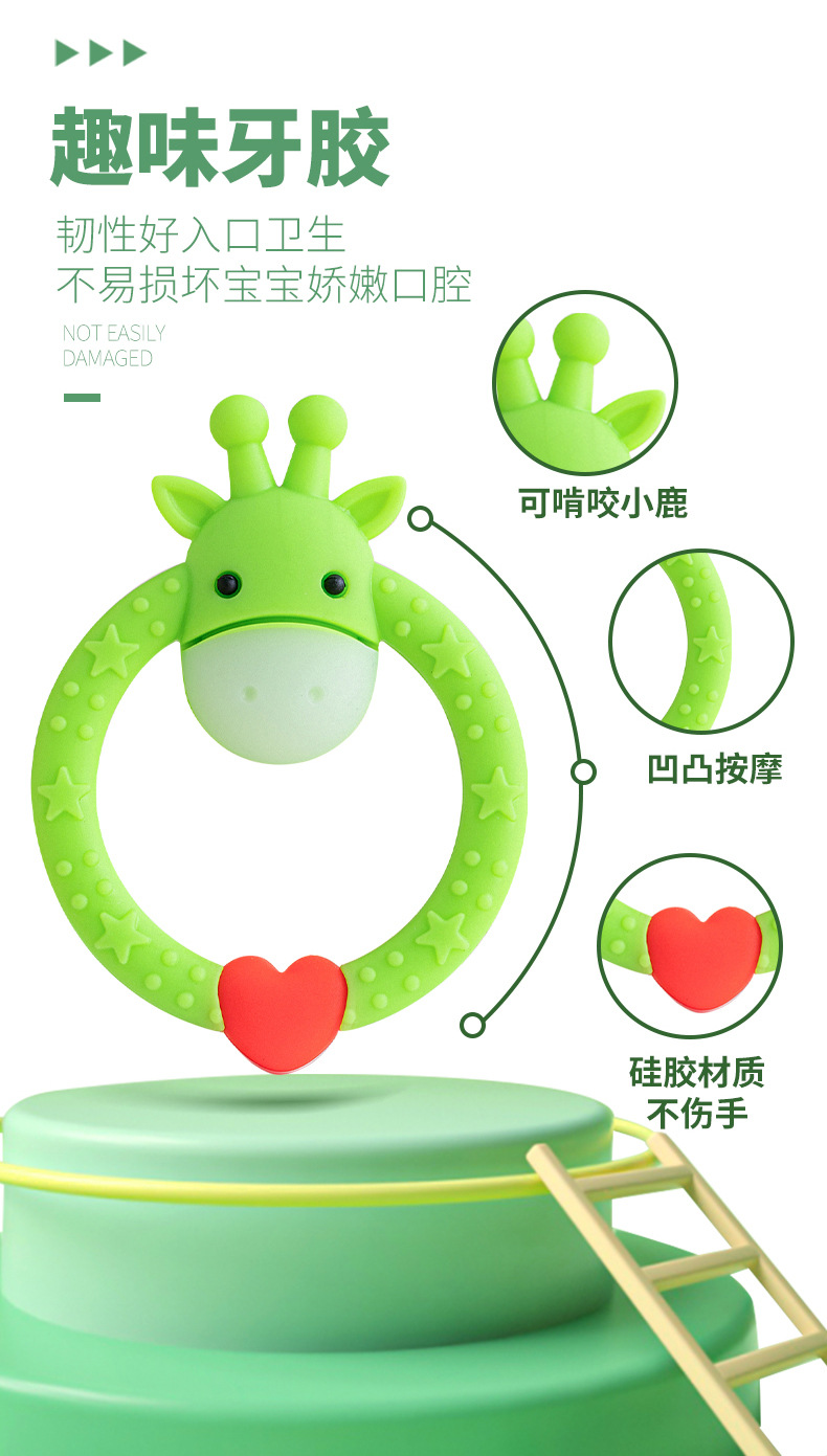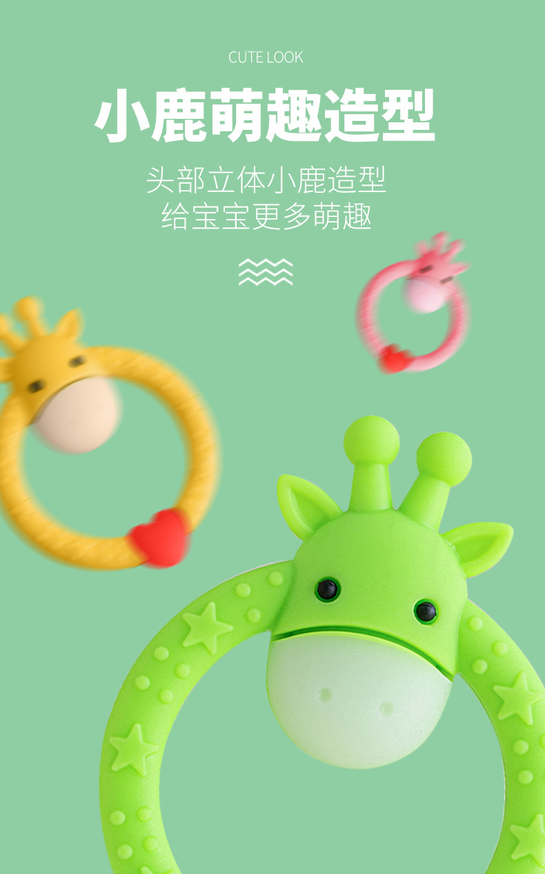 小鹿环形咬胶婴儿全硅胶牙胶卡通造型可爱圆环小鹿牙胶宝宝磨牙棒