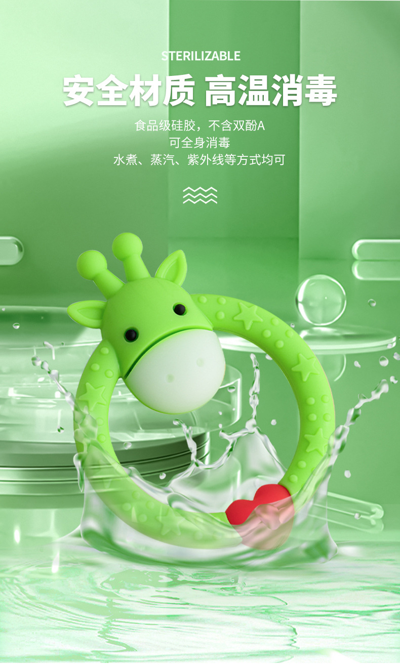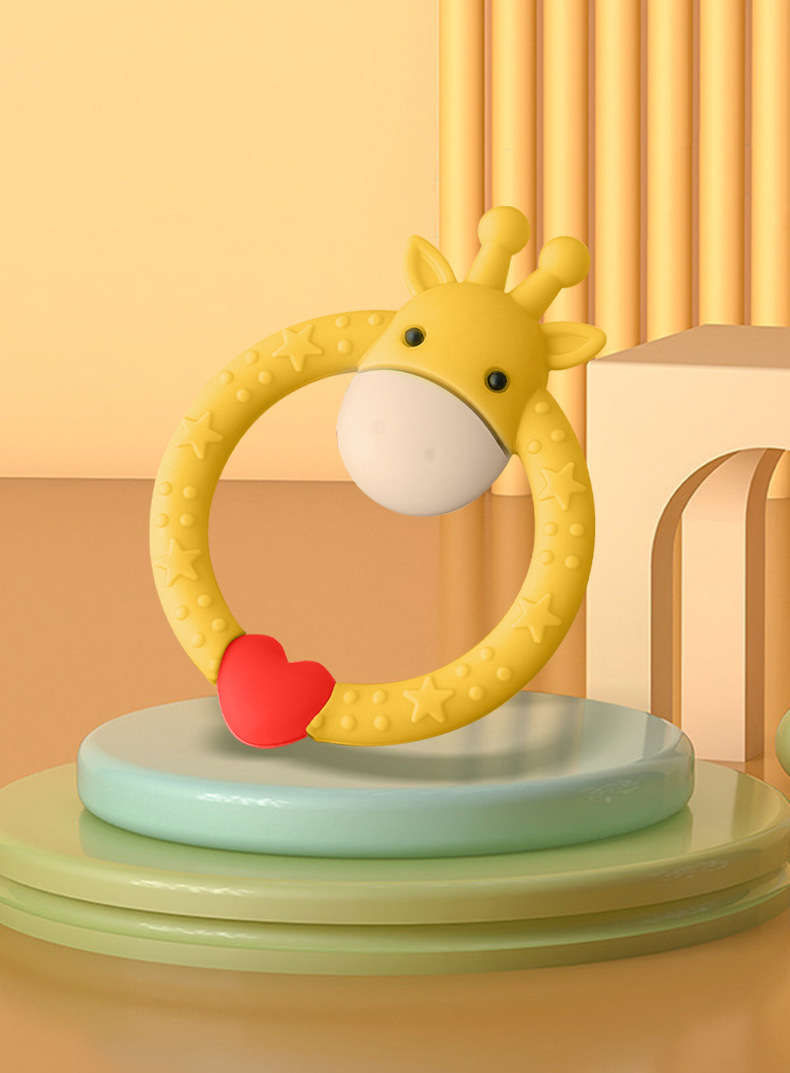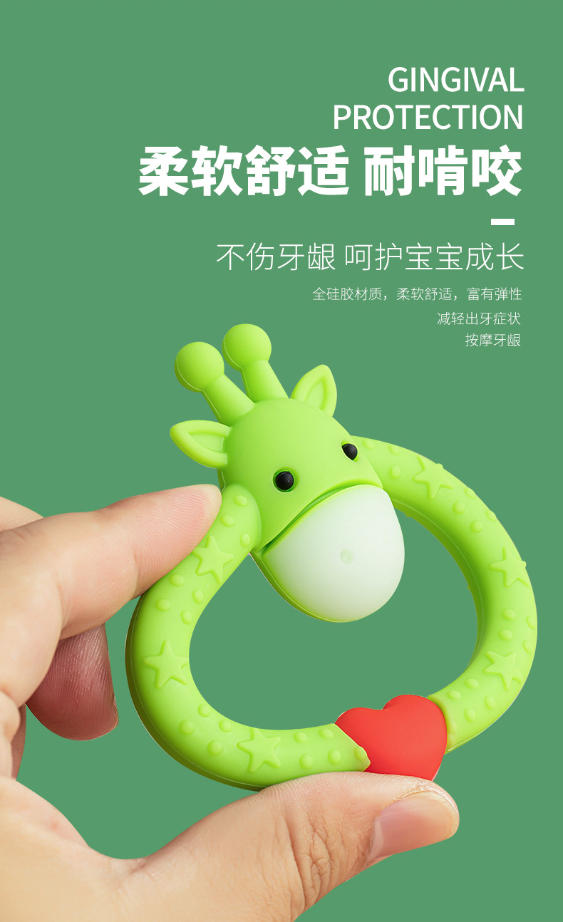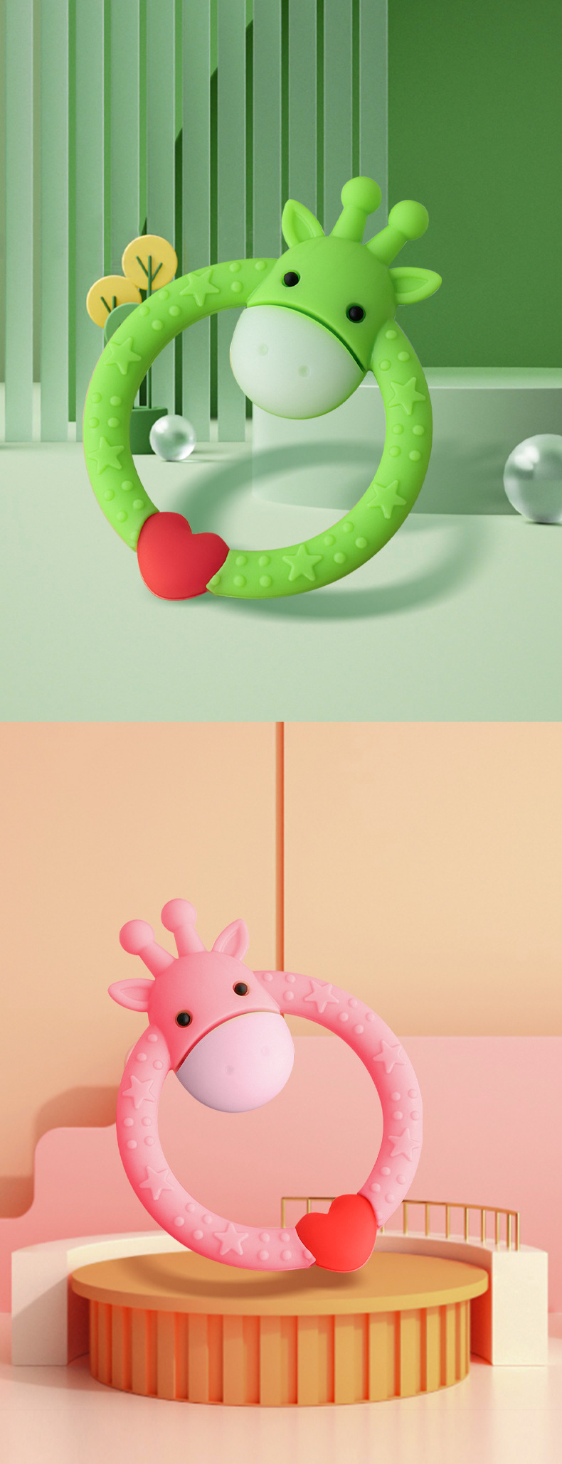 小鹿环形咬胶婴儿全硅胶牙胶卡通造型可爱圆环小鹿牙胶宝宝磨牙棒