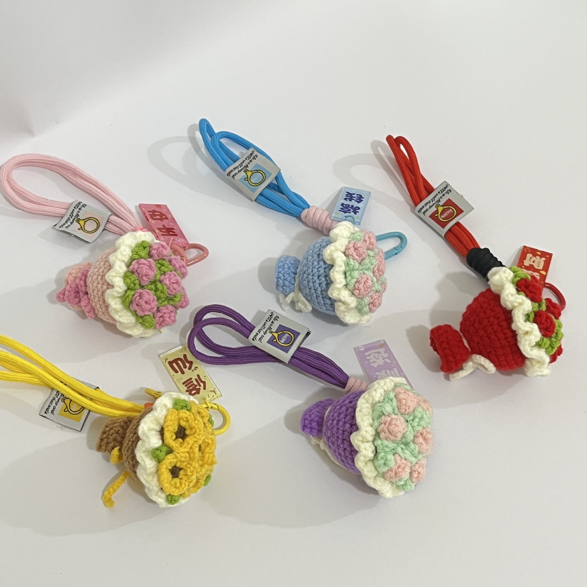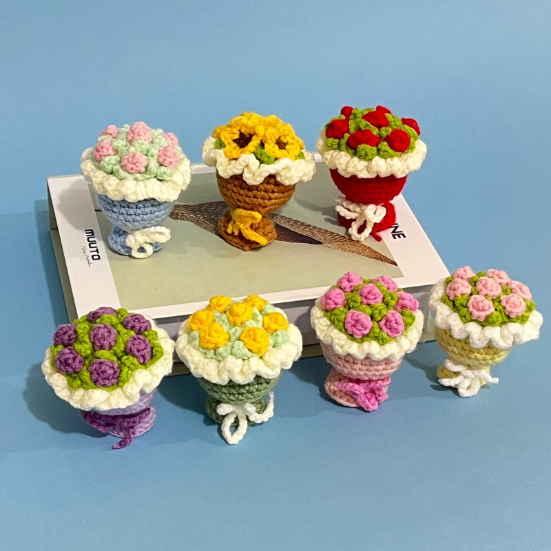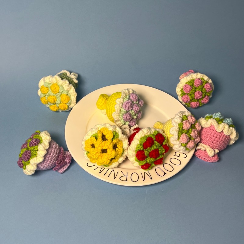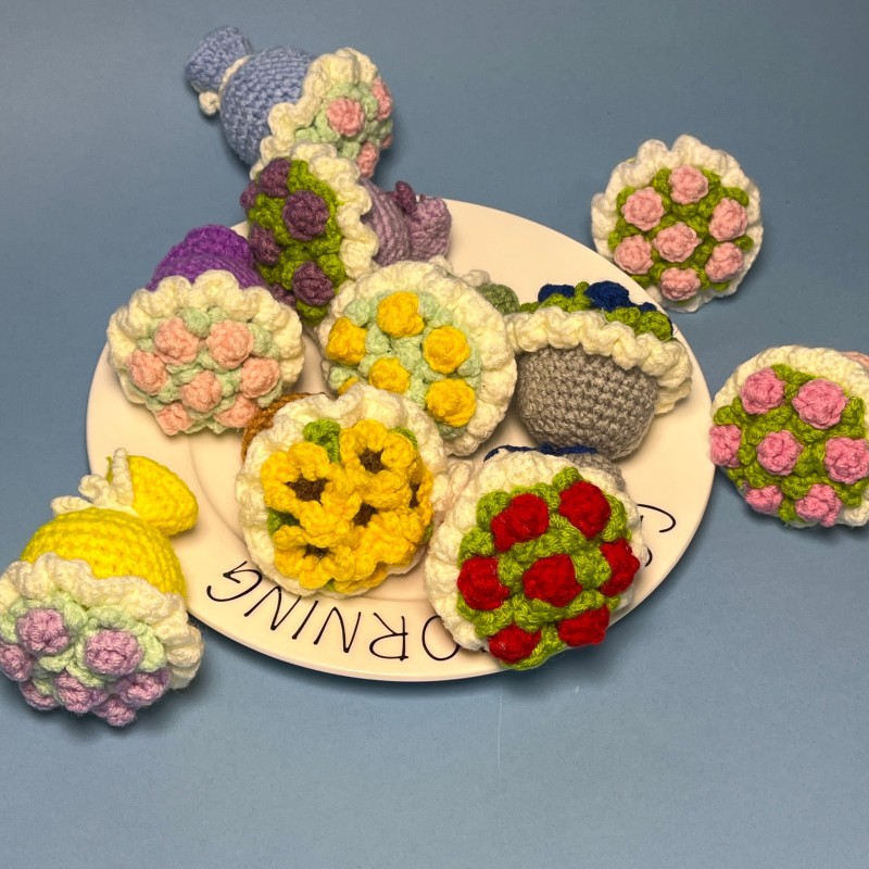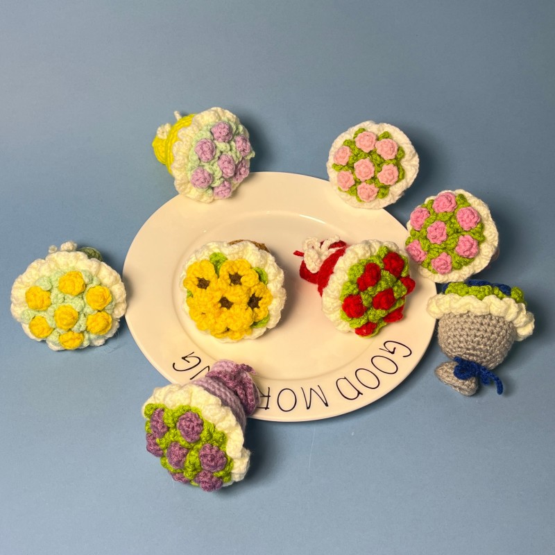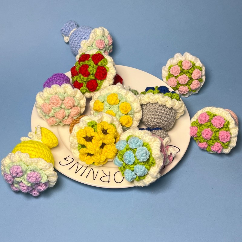 优质钩织毛线手捧花节日礼物挂件手工玫瑰花编织小花束爆品批发