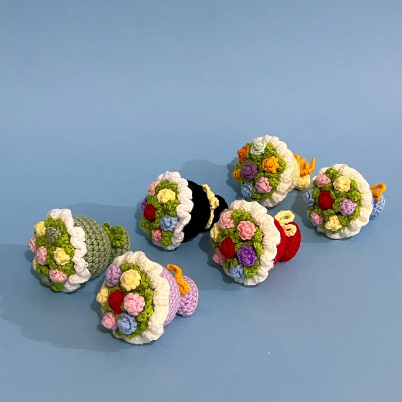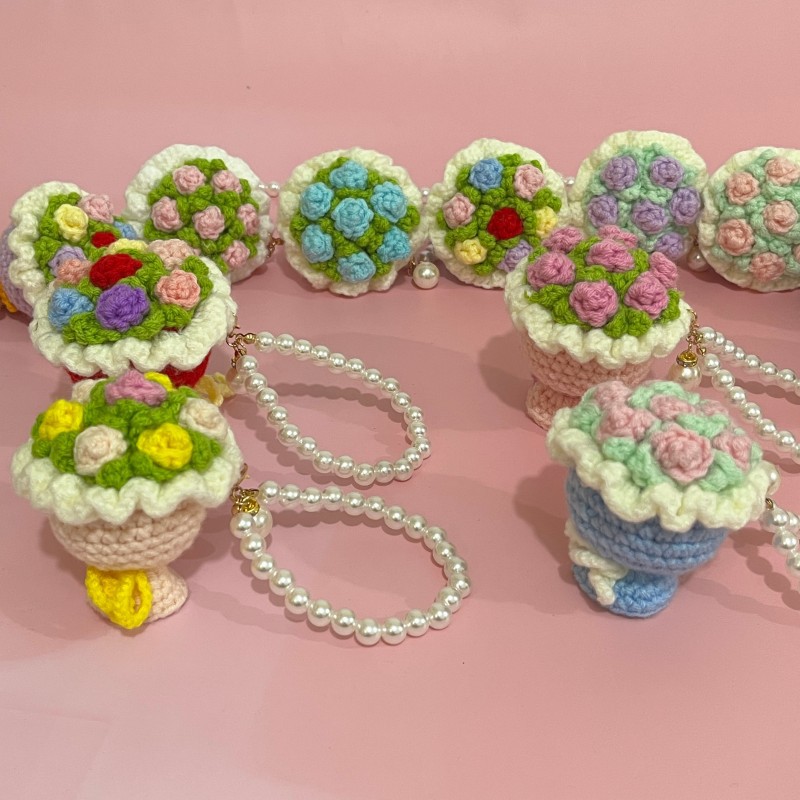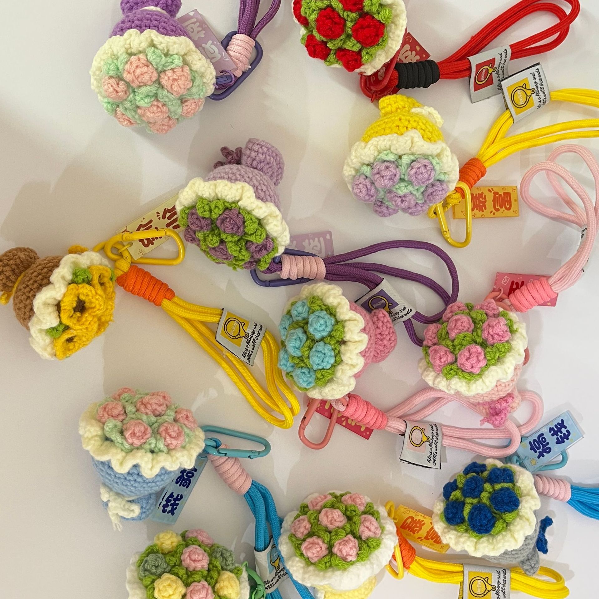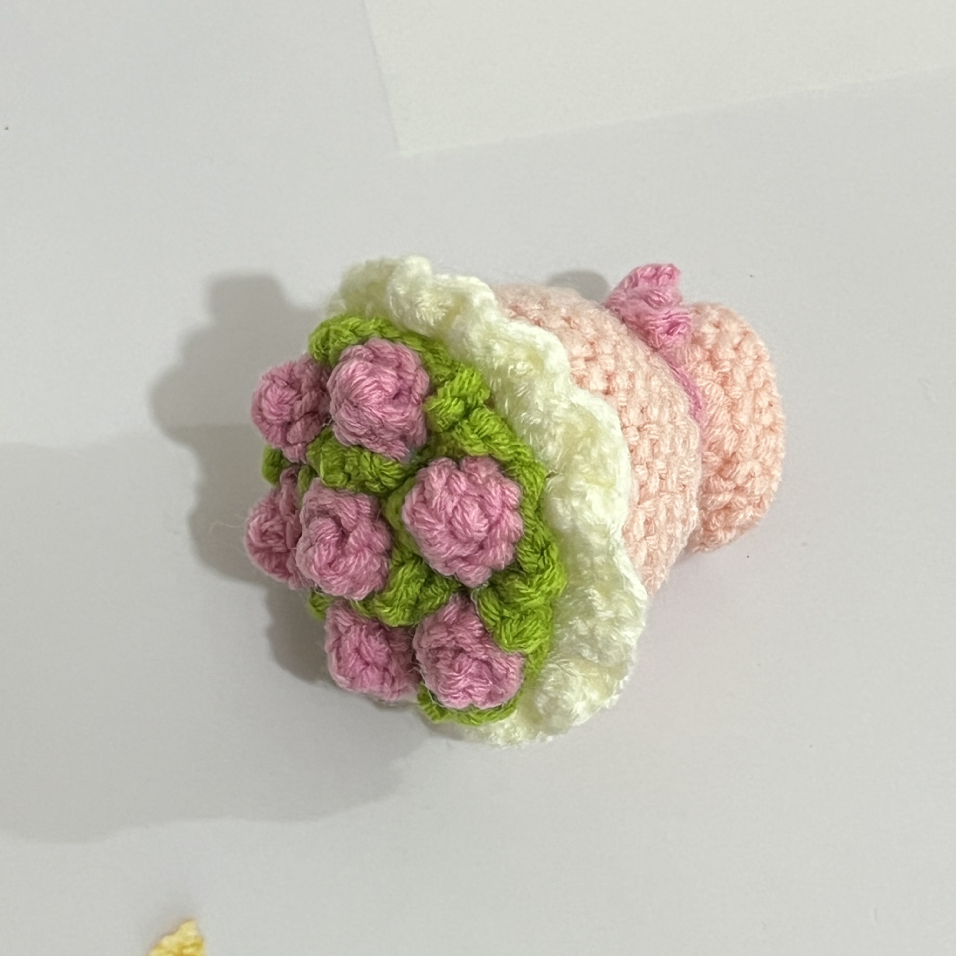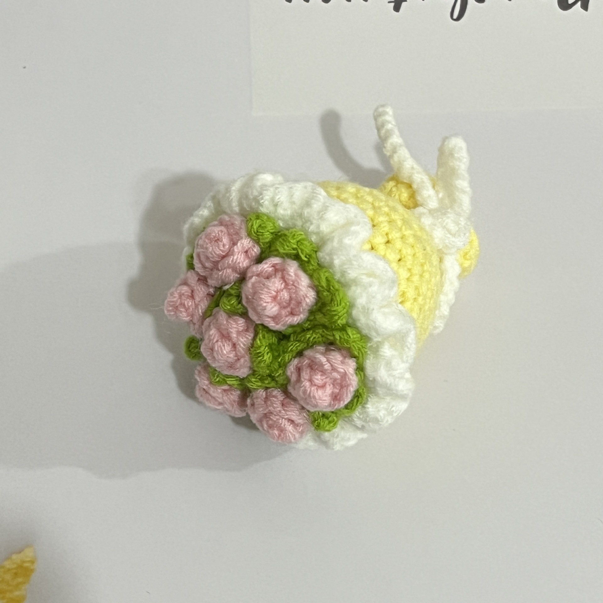 优质钩织毛线手捧花节日礼物挂件手工玫瑰花编织小花束爆品批发