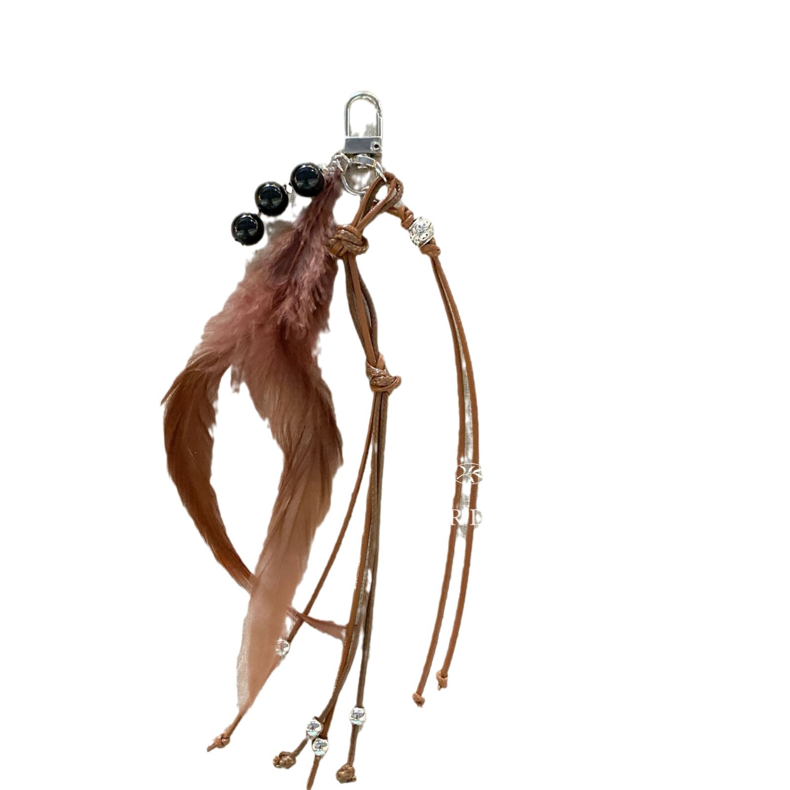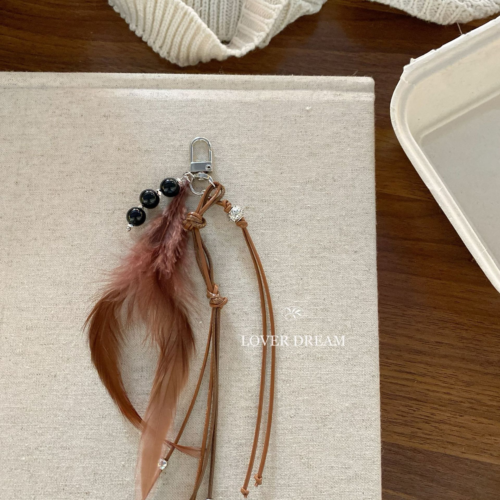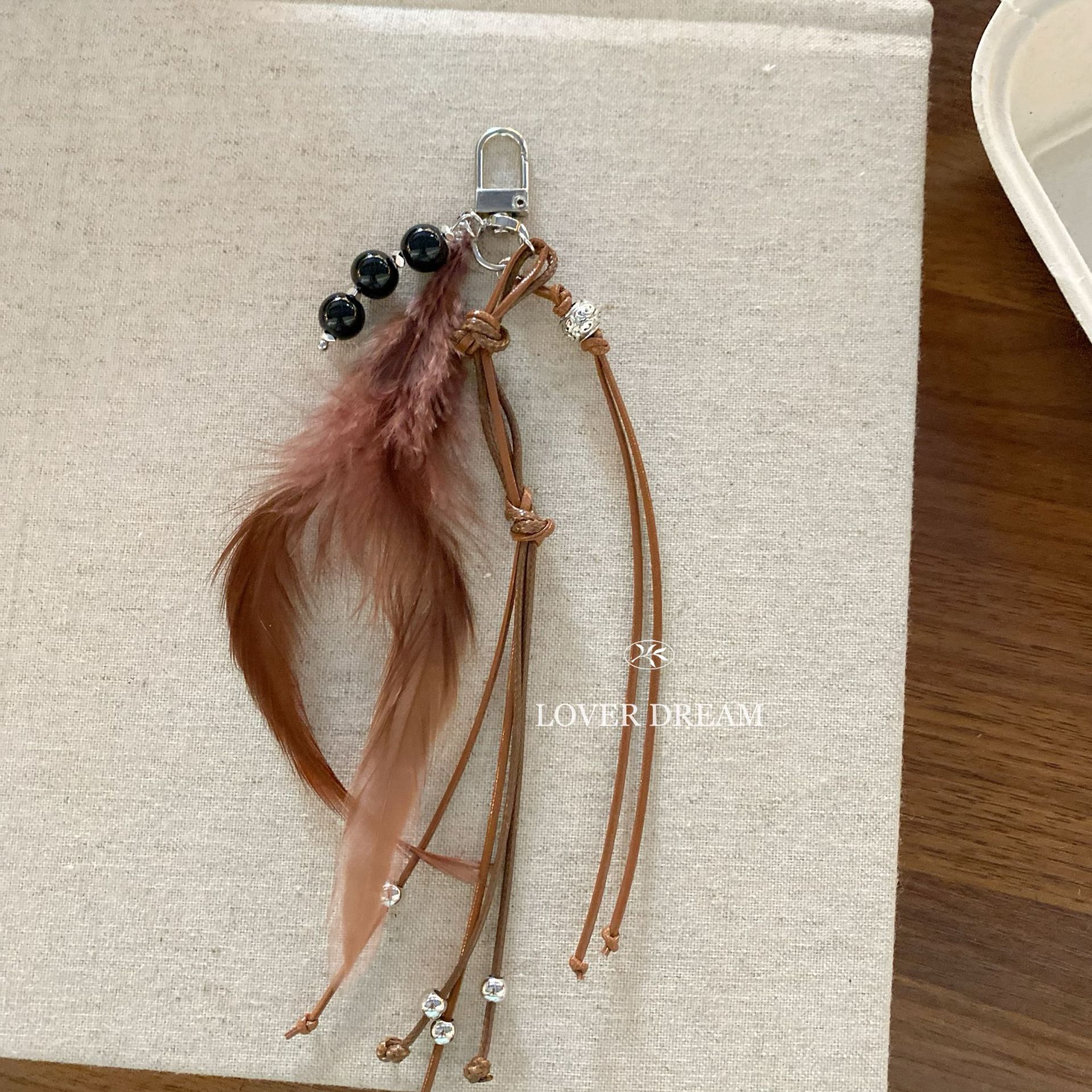 韩国东大门ins石头串珠羽毛几何挂饰 时尚高级感钥匙扣百搭挂件女