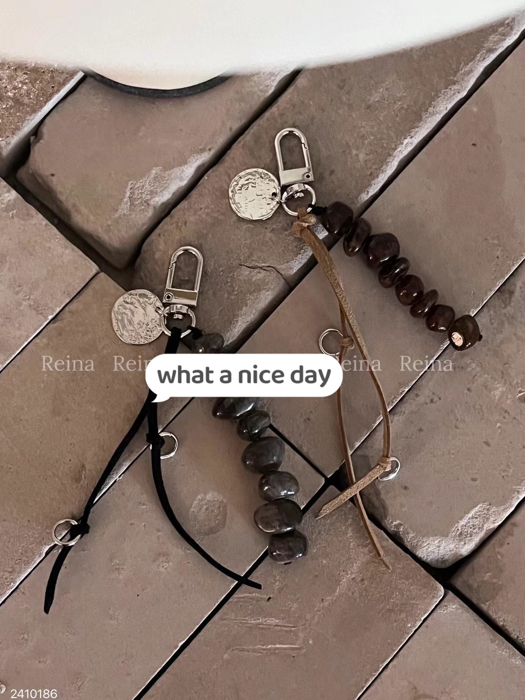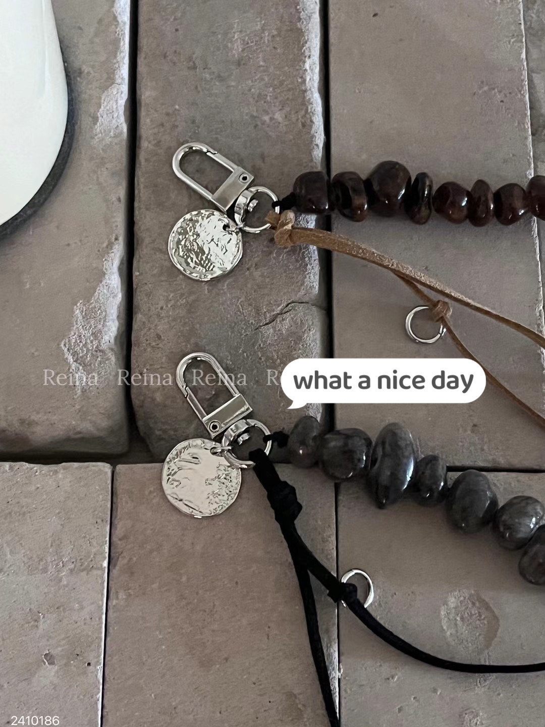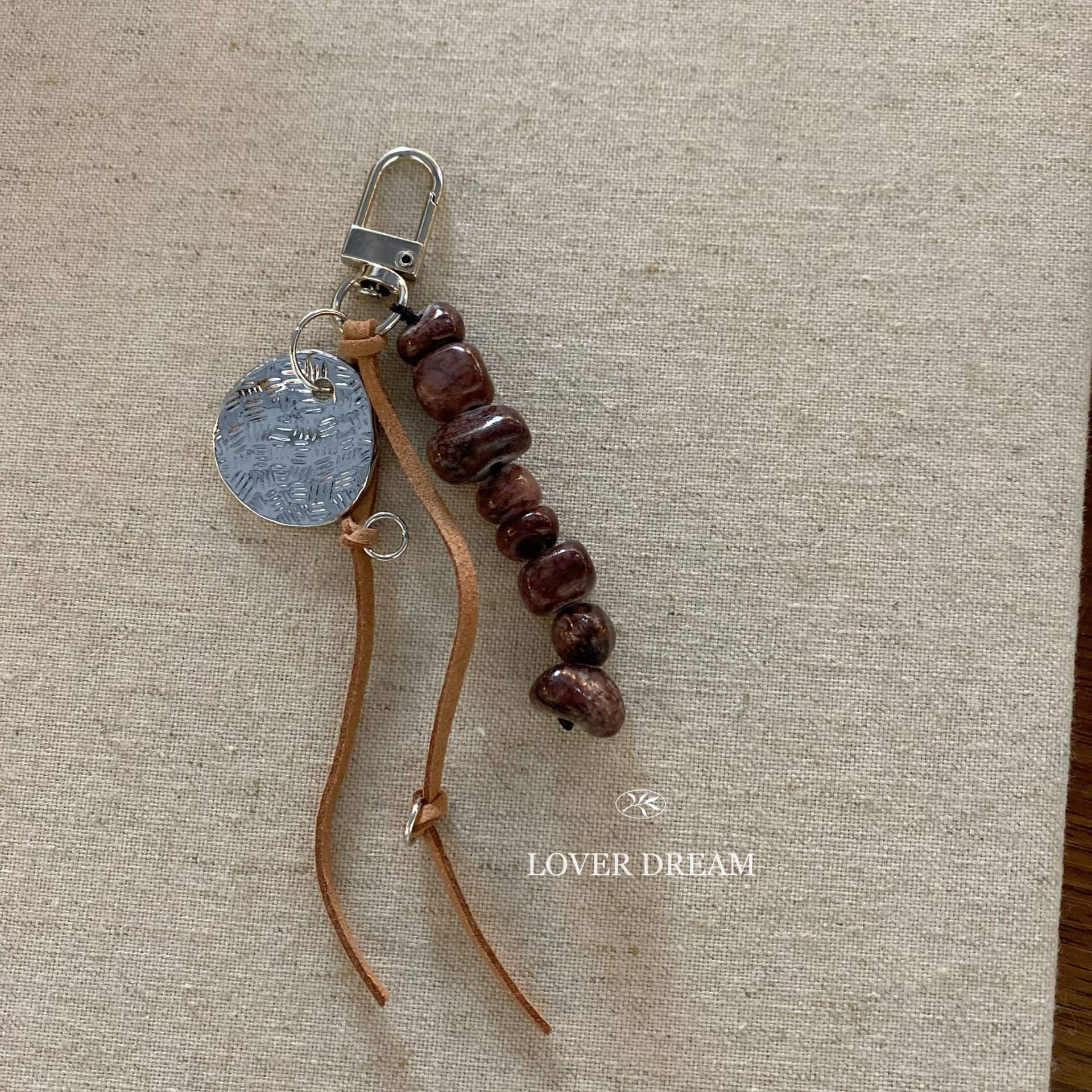 韩国东大门ins石头串珠羽毛几何挂饰 时尚高级感钥匙扣百搭挂件女