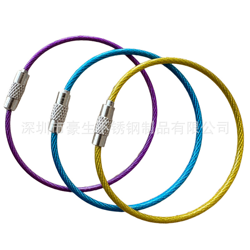 彩色包胶钢丝圈环绳钥匙圈304不锈钢DIY配件户外多功能钥匙扣批发