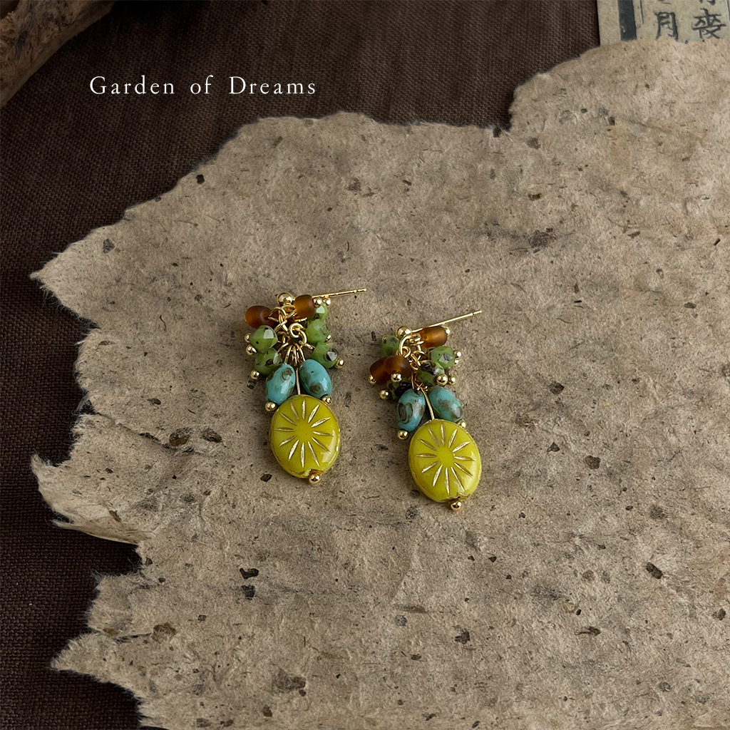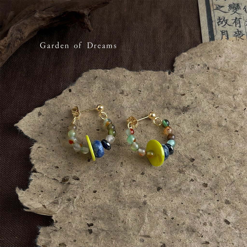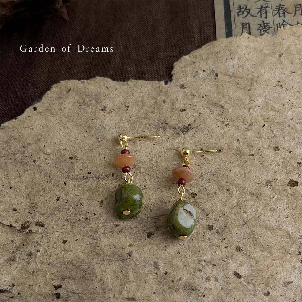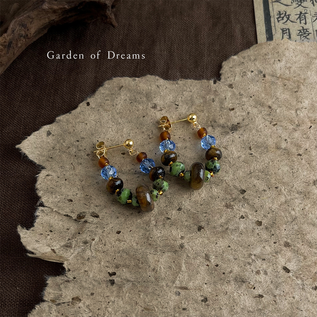 原创复古新中式天然石串珠耳环合集手工设计款国风油画感气质耳饰