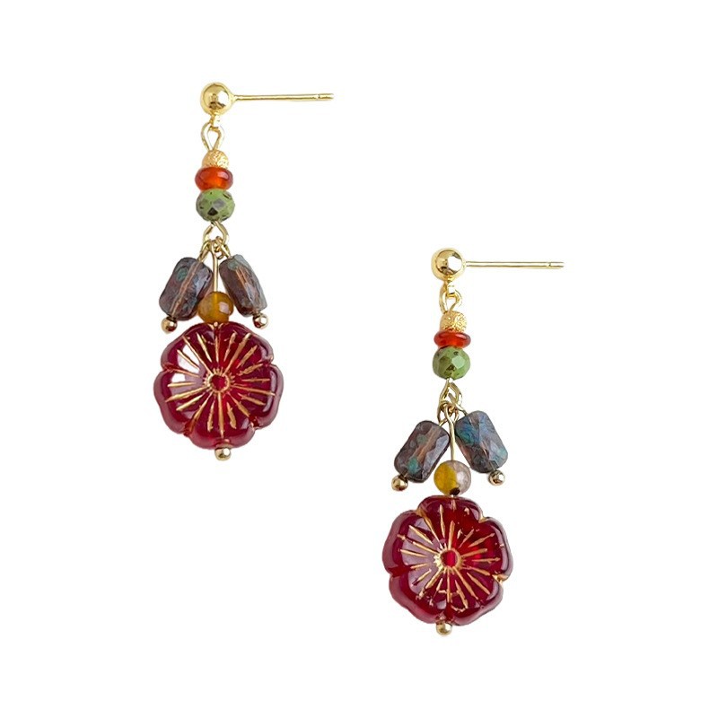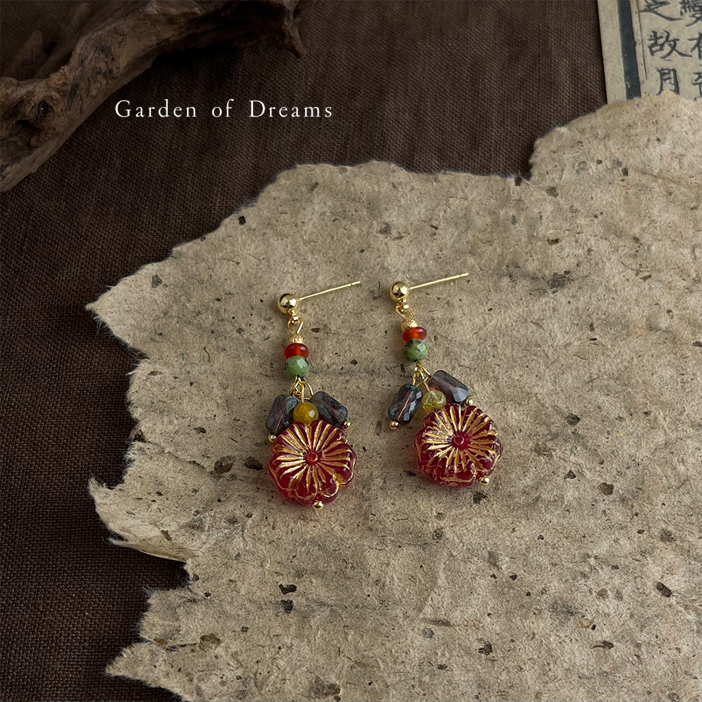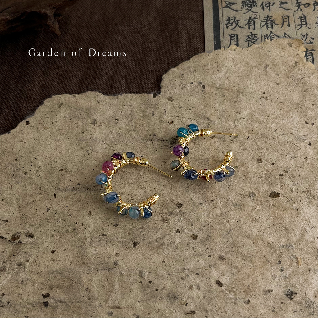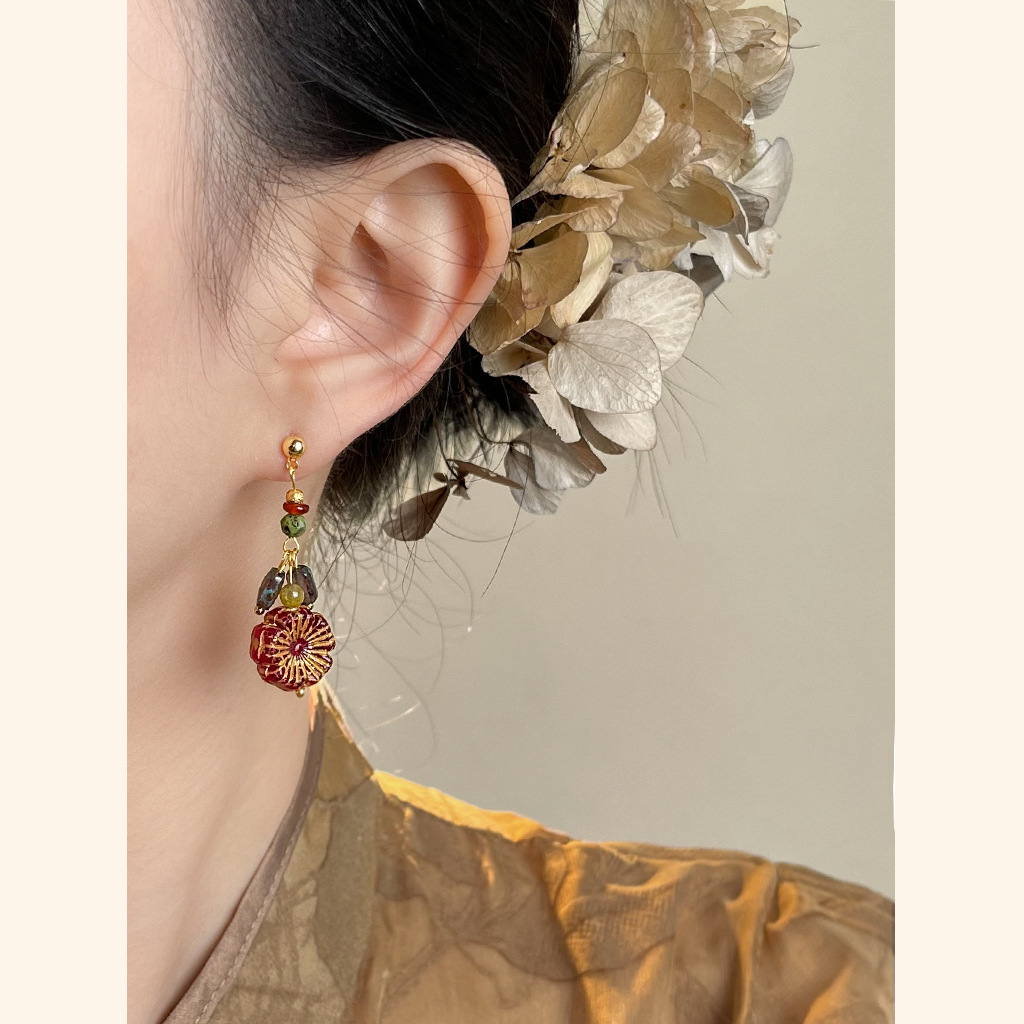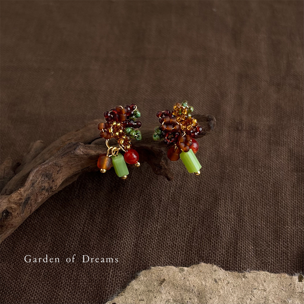 原创复古新中式天然石串珠耳环合集手工设计款国风油画感气质耳饰