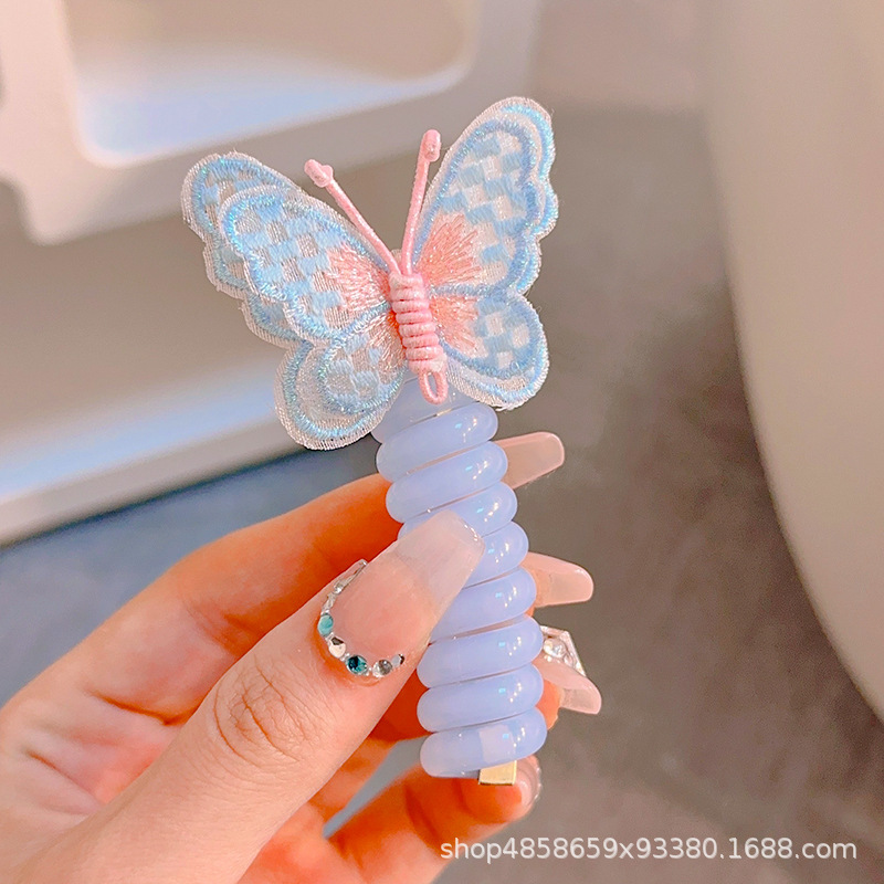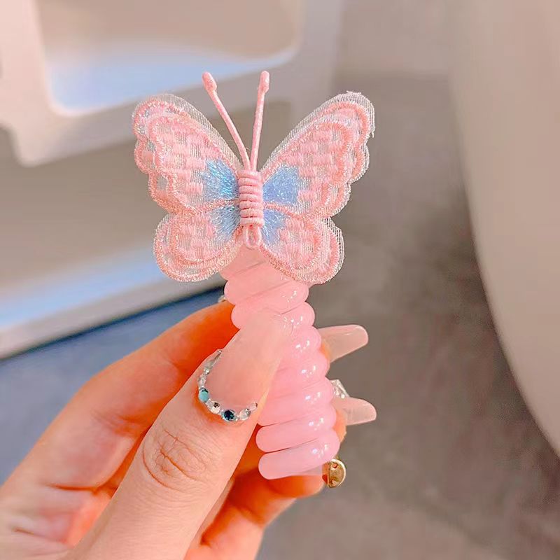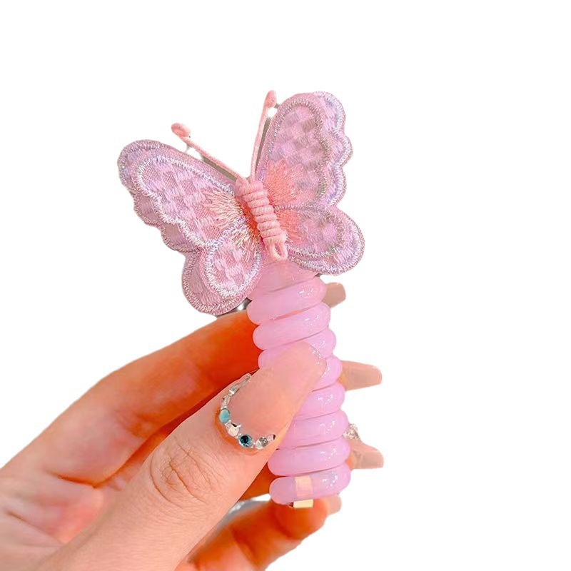 儿童新款蝴蝶电话线发圈高弹力头绳女童可爱小女孩扎辫子卷卷发饰