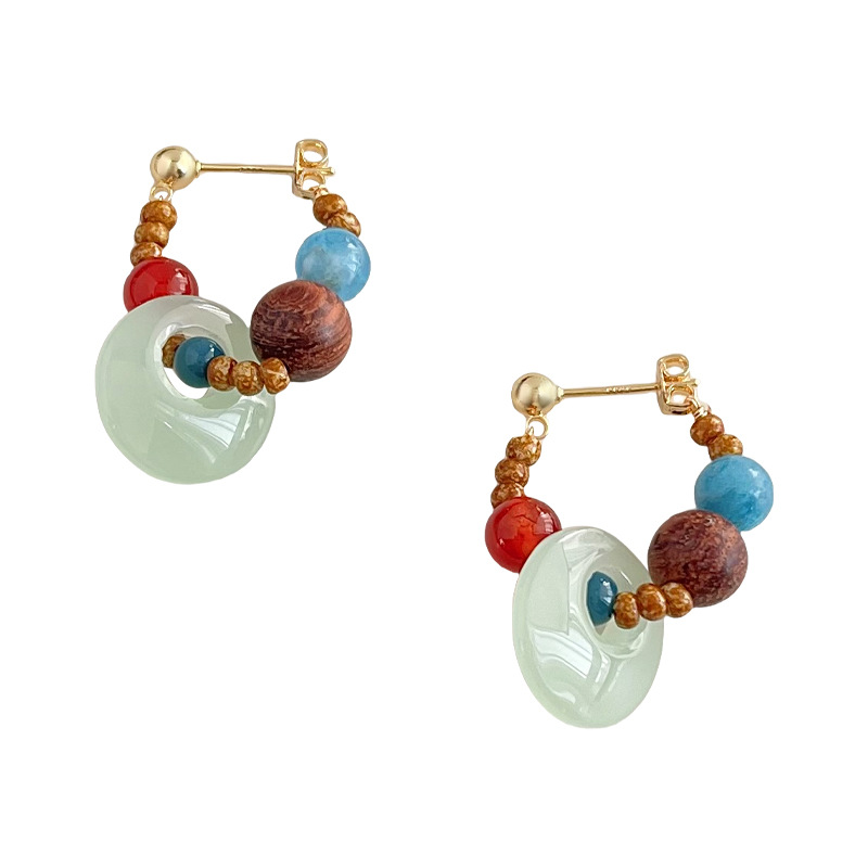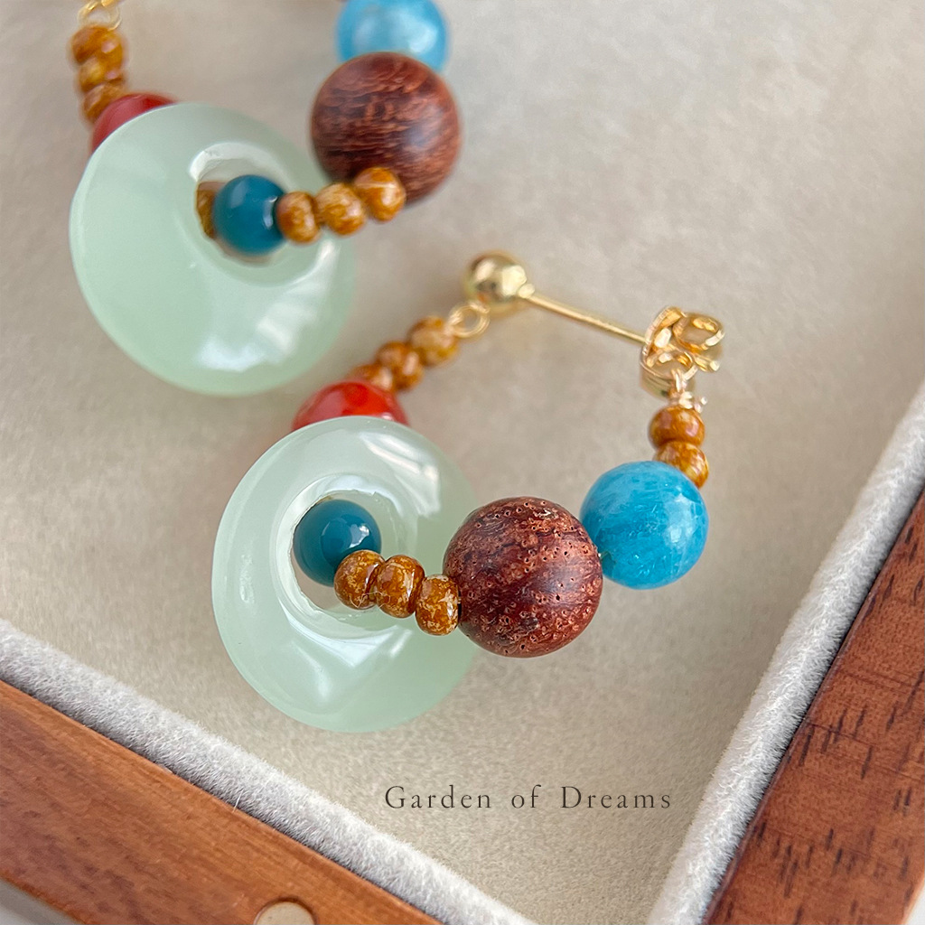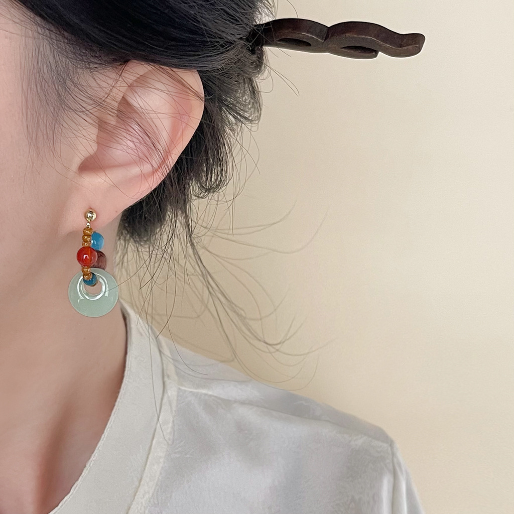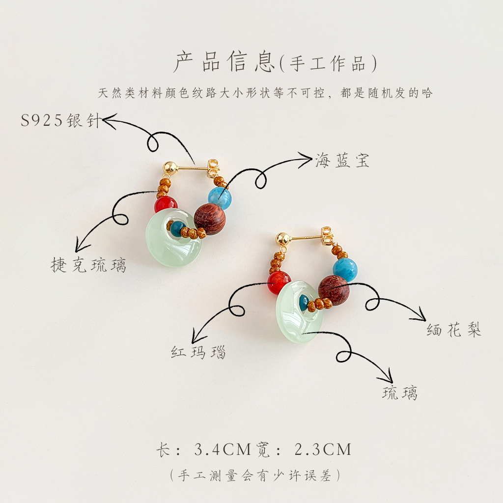 敦煌~国风原创手作新中式串珠耳环复古天然石国潮耳钉高级感耳饰