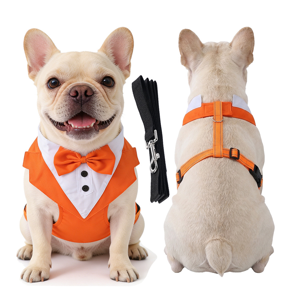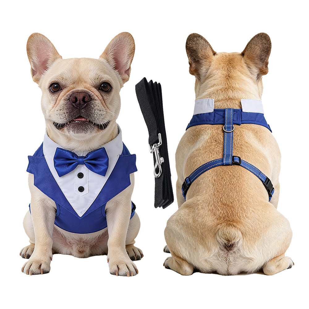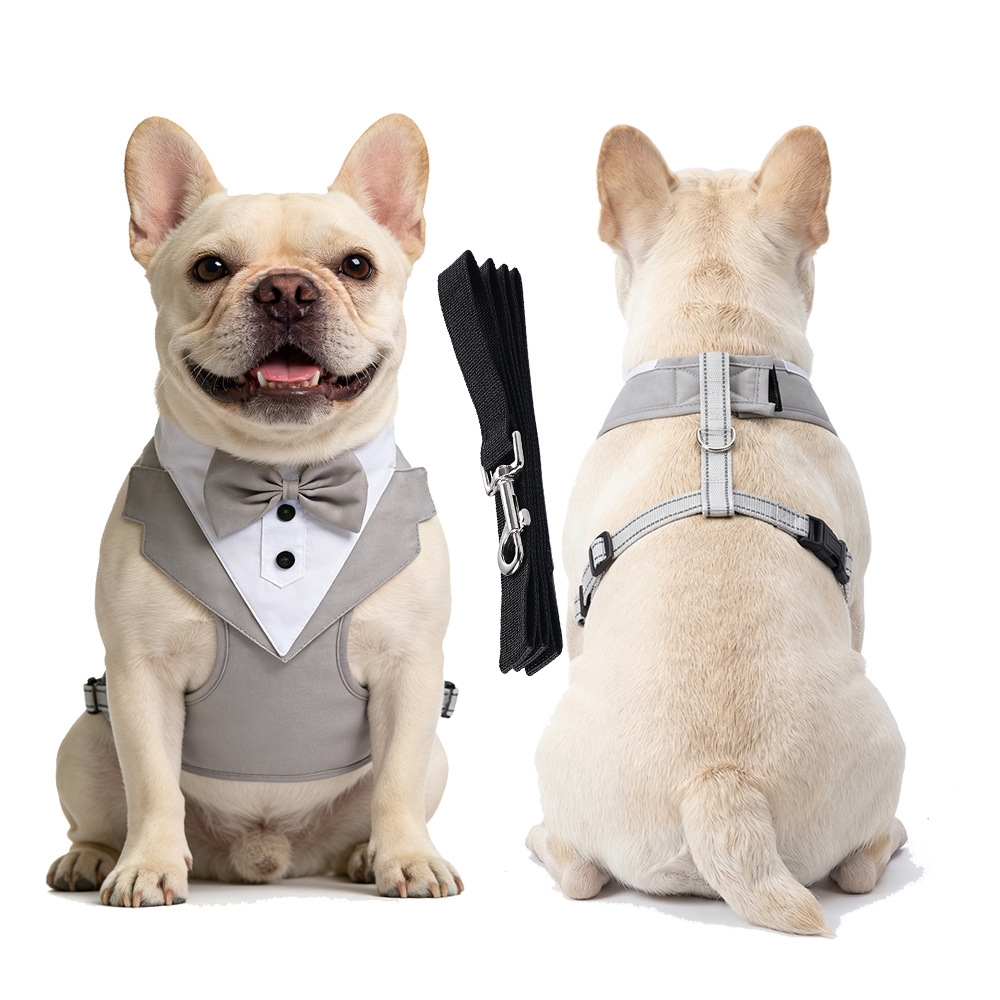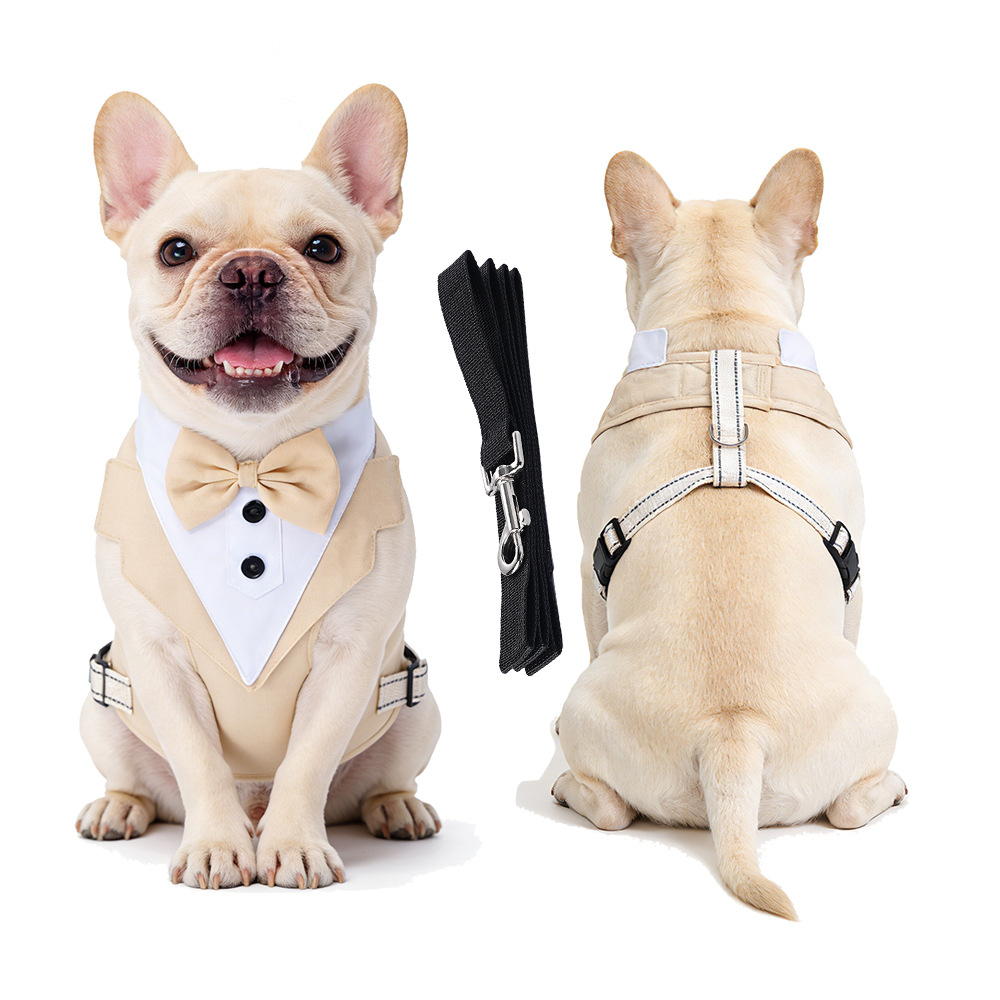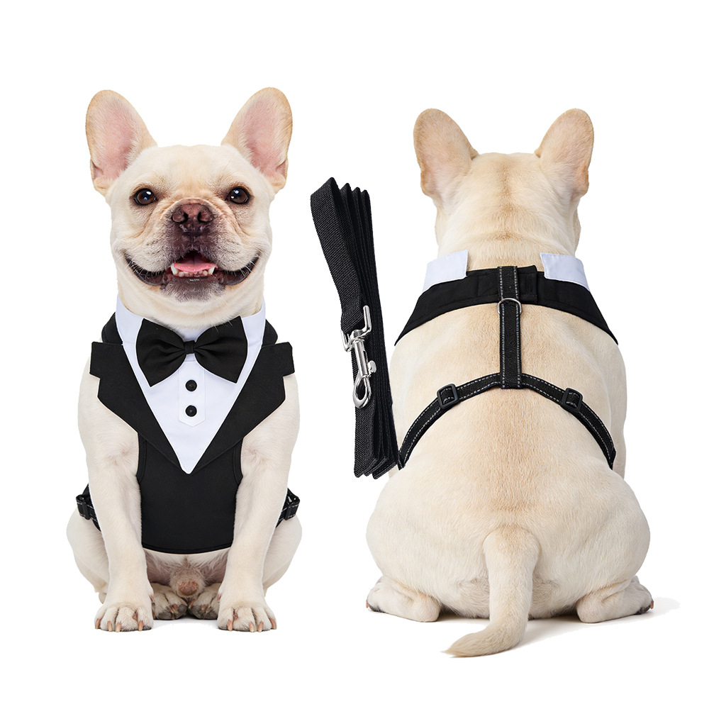 跨境新款宠物胸背带牵引绳衣服背心式小中大型犬狗狗西装礼服批发