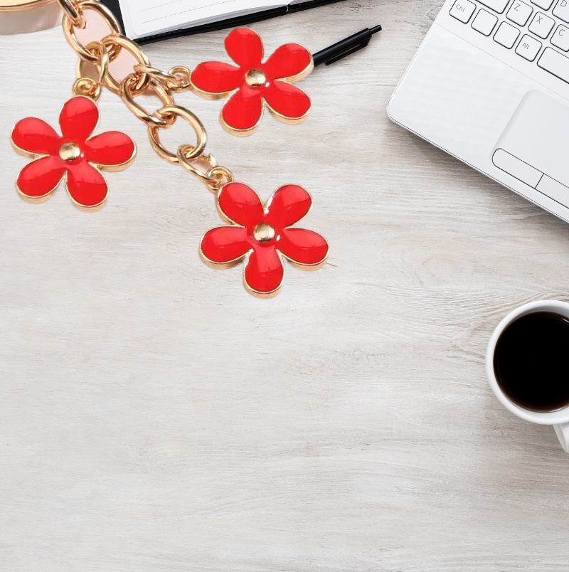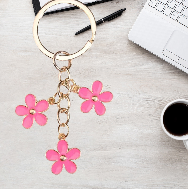 简约夏日新款热销彩色花朵钥匙扣包包汽车挂饰挂件亚马逊新款配饰