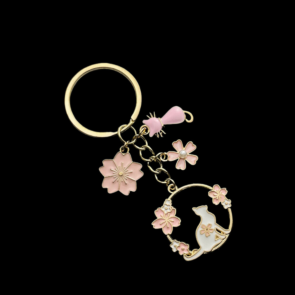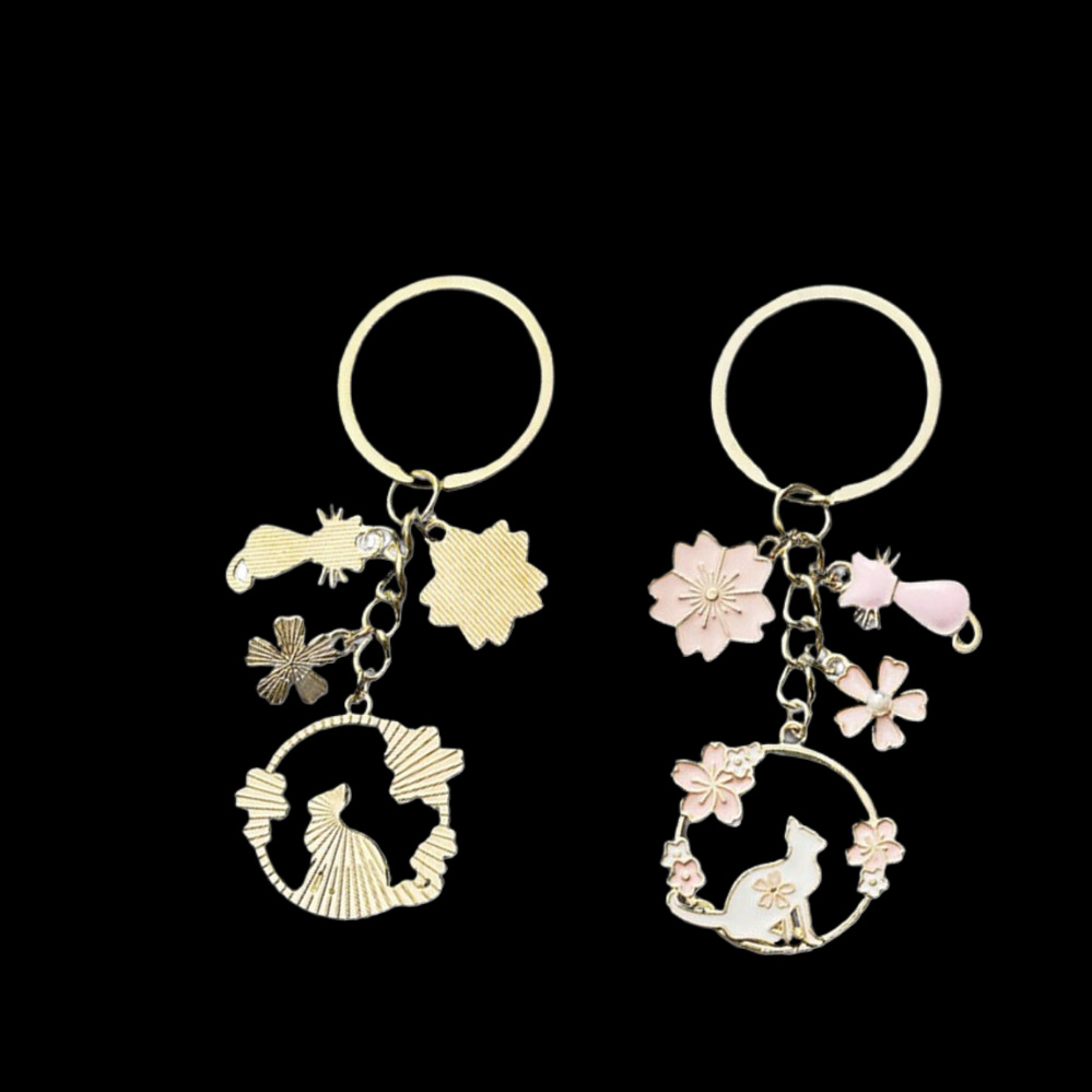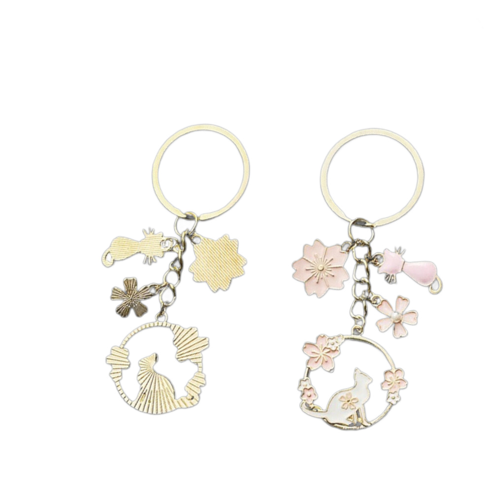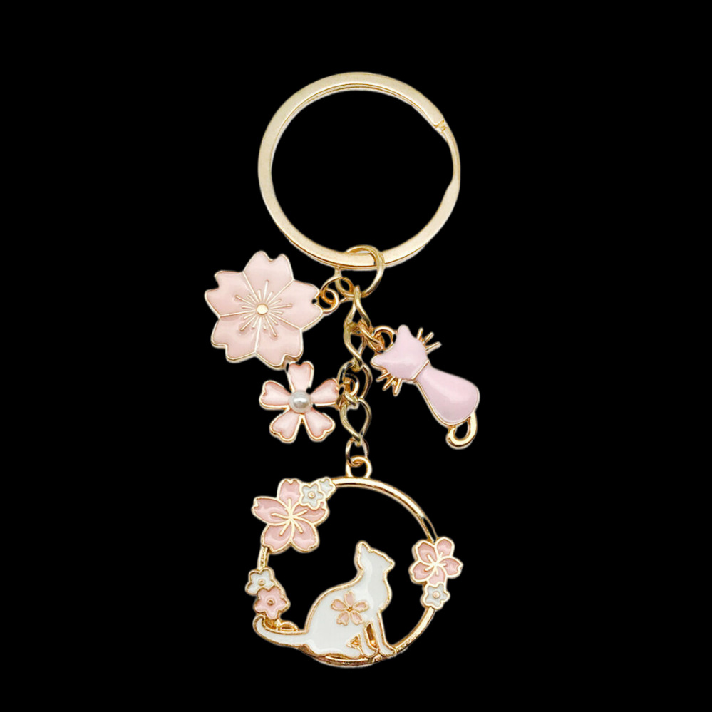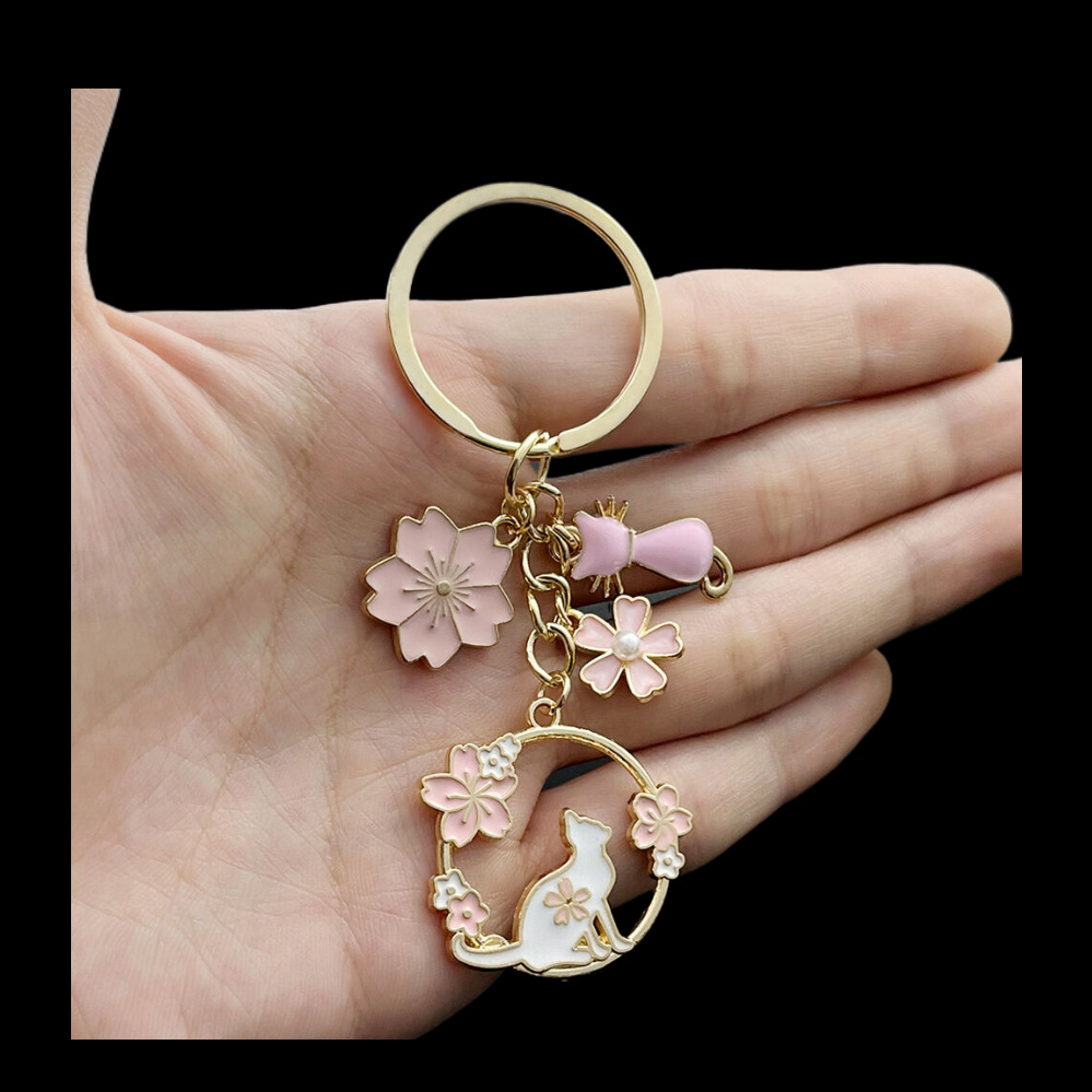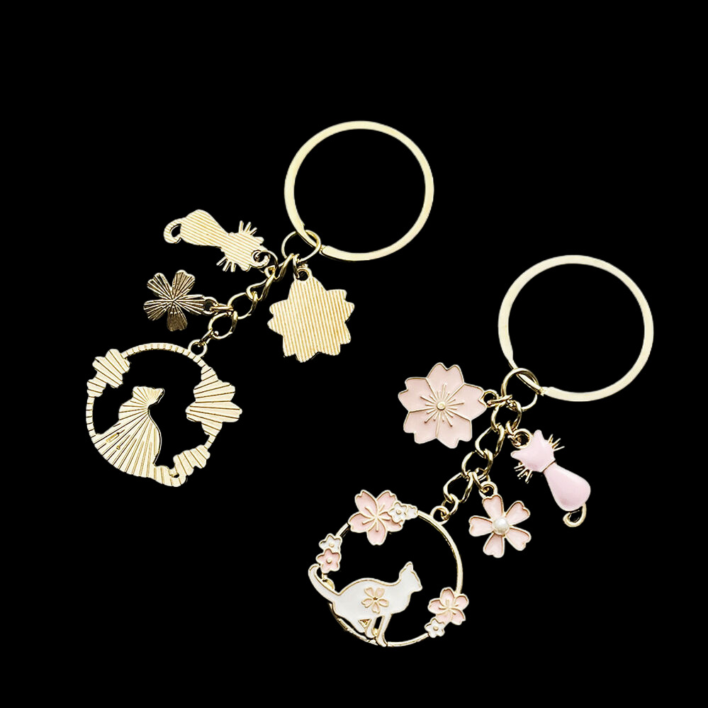 跨境热销滴油黑花猫珍珠钥匙扣挂件ins合金时尚机包包钥匙挂饰