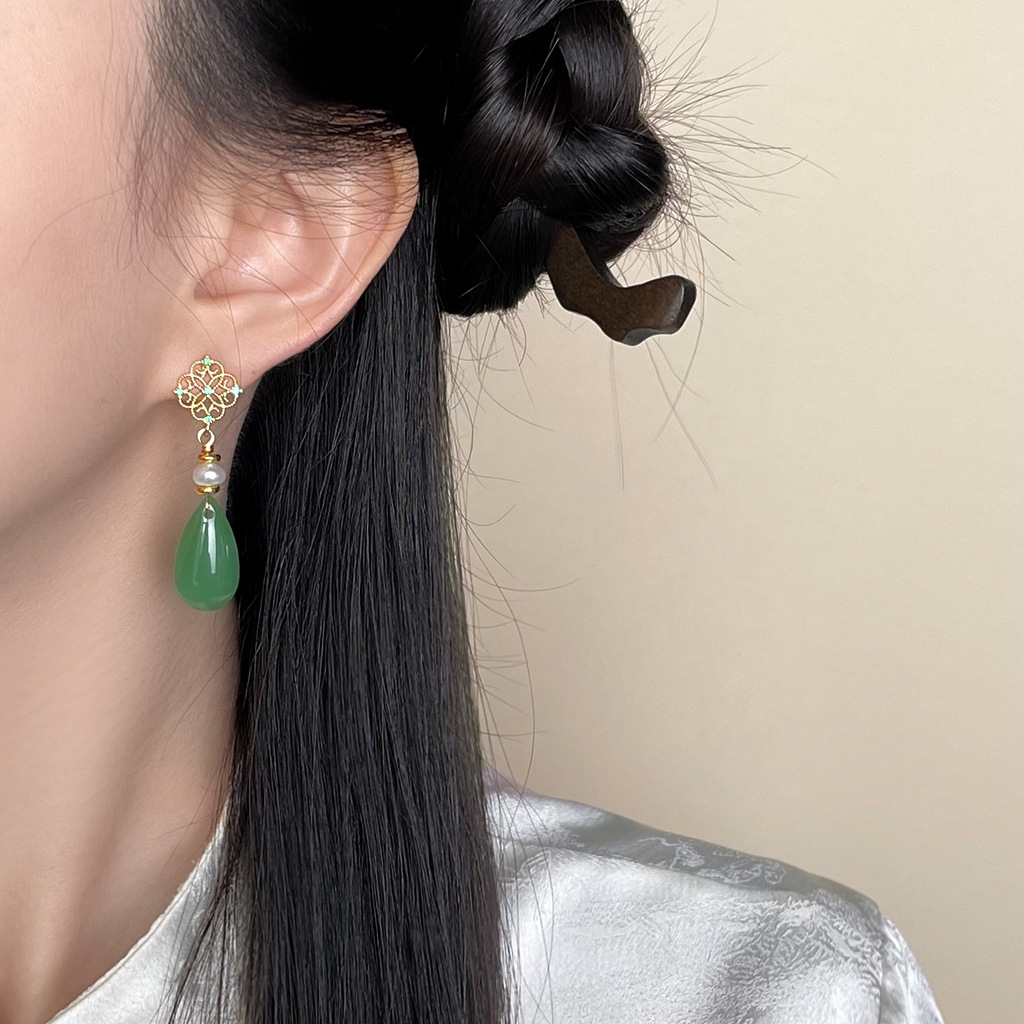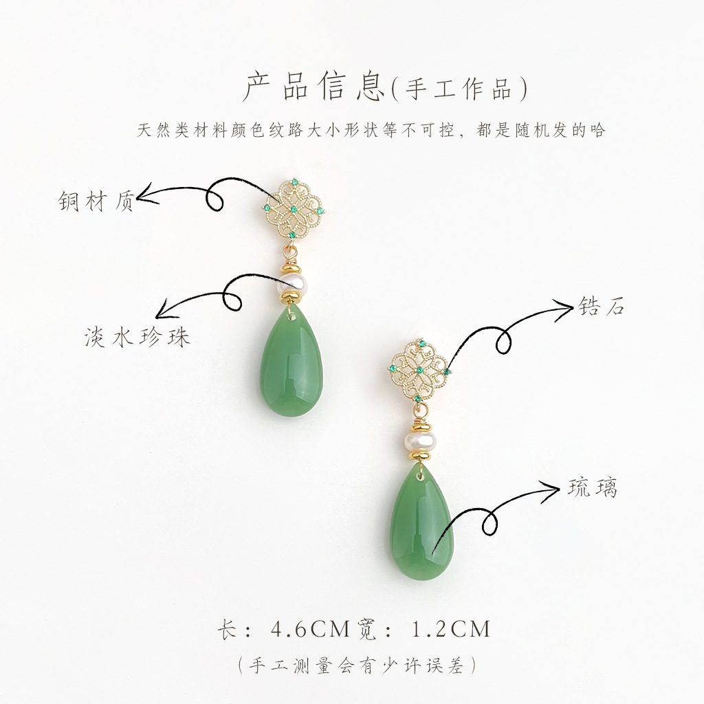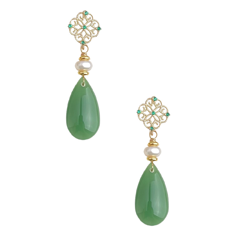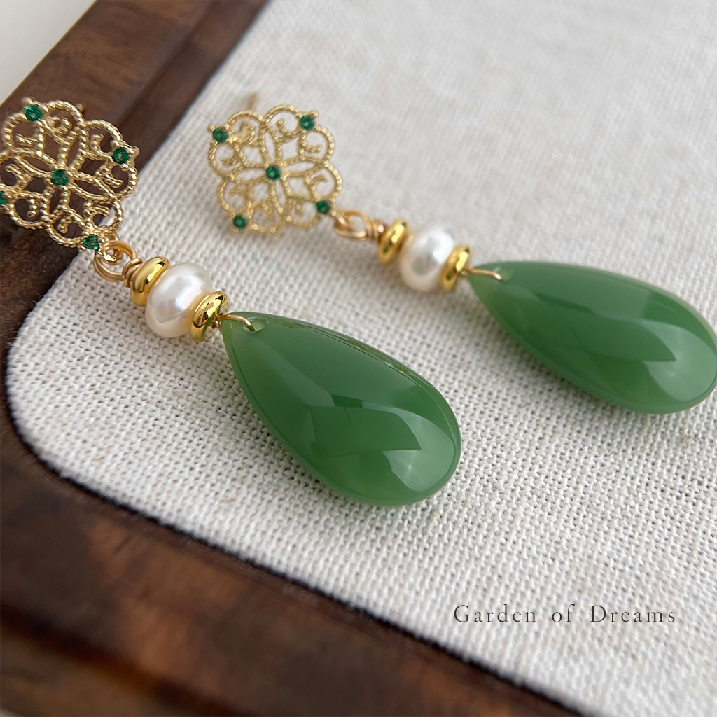 国风原创天然淡水珍珠镂空蕾丝锆石耳环复古宫廷风新中式古风耳饰