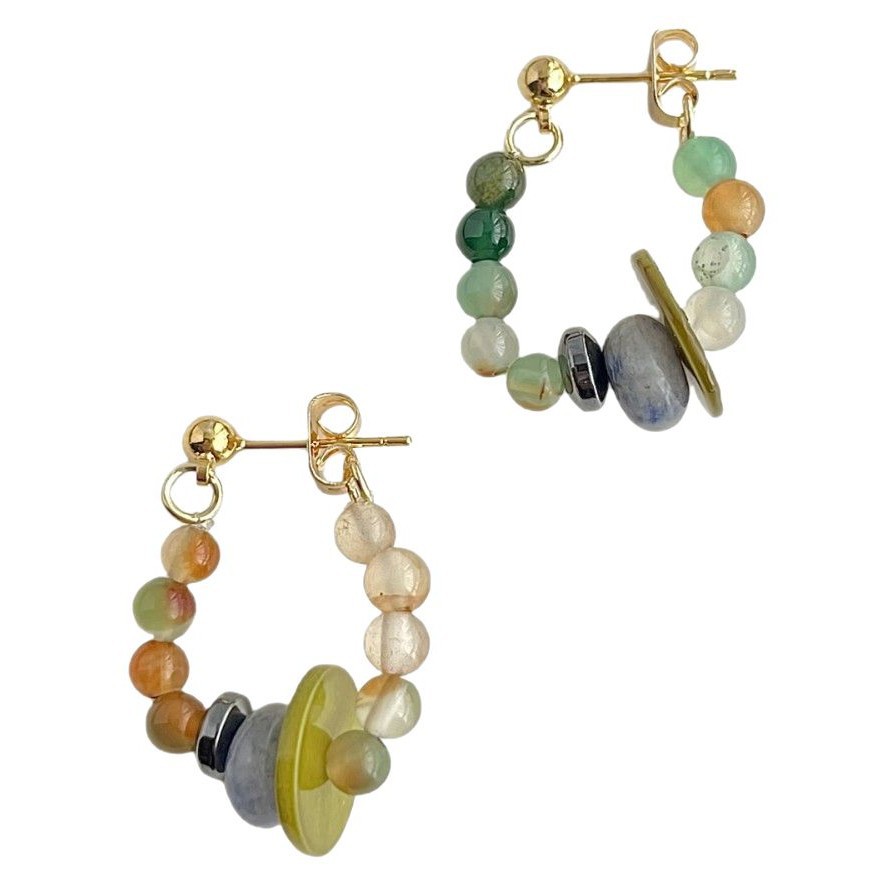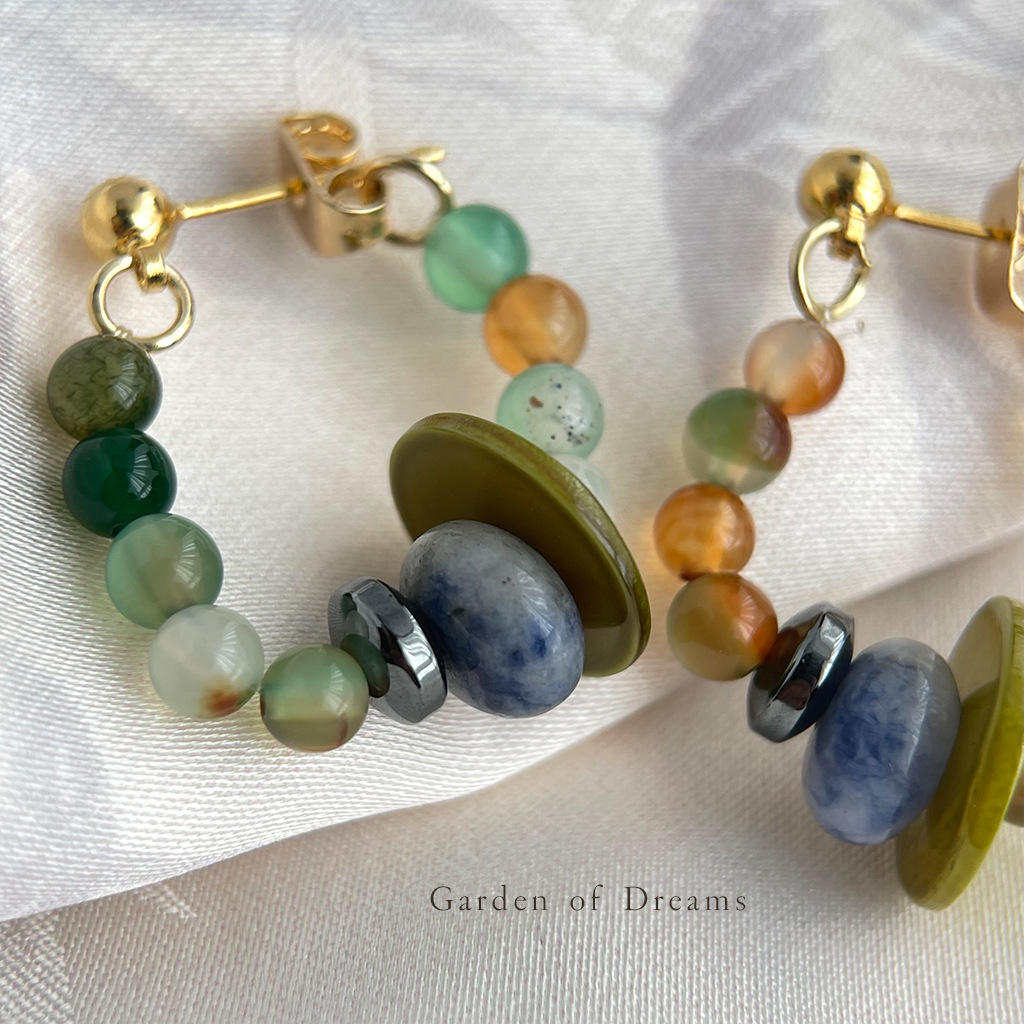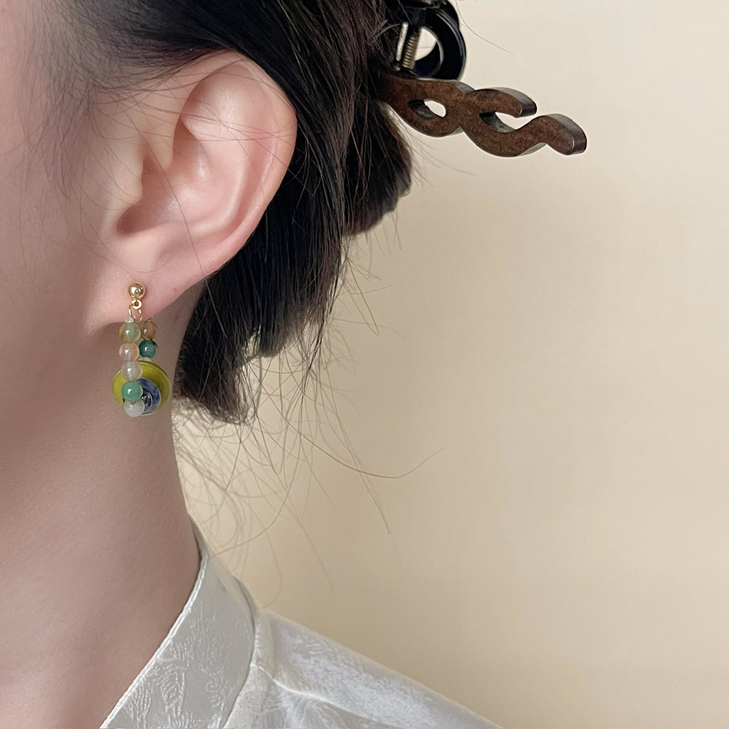 丝绸之路~国风手作几何天然石玛瑙贝壳耳环复古文艺耳钉小众耳饰
