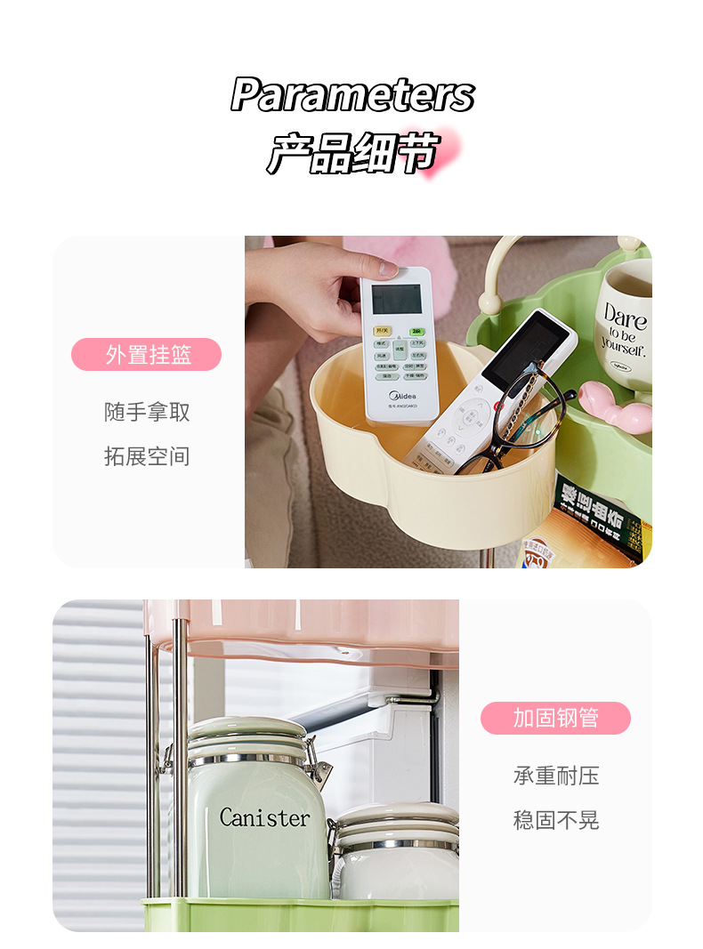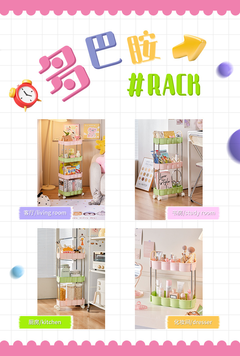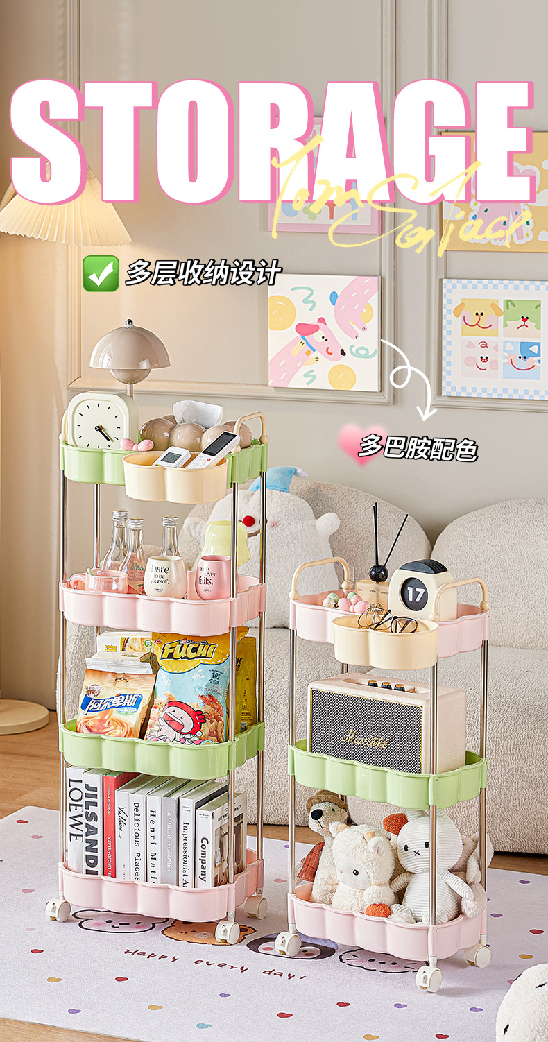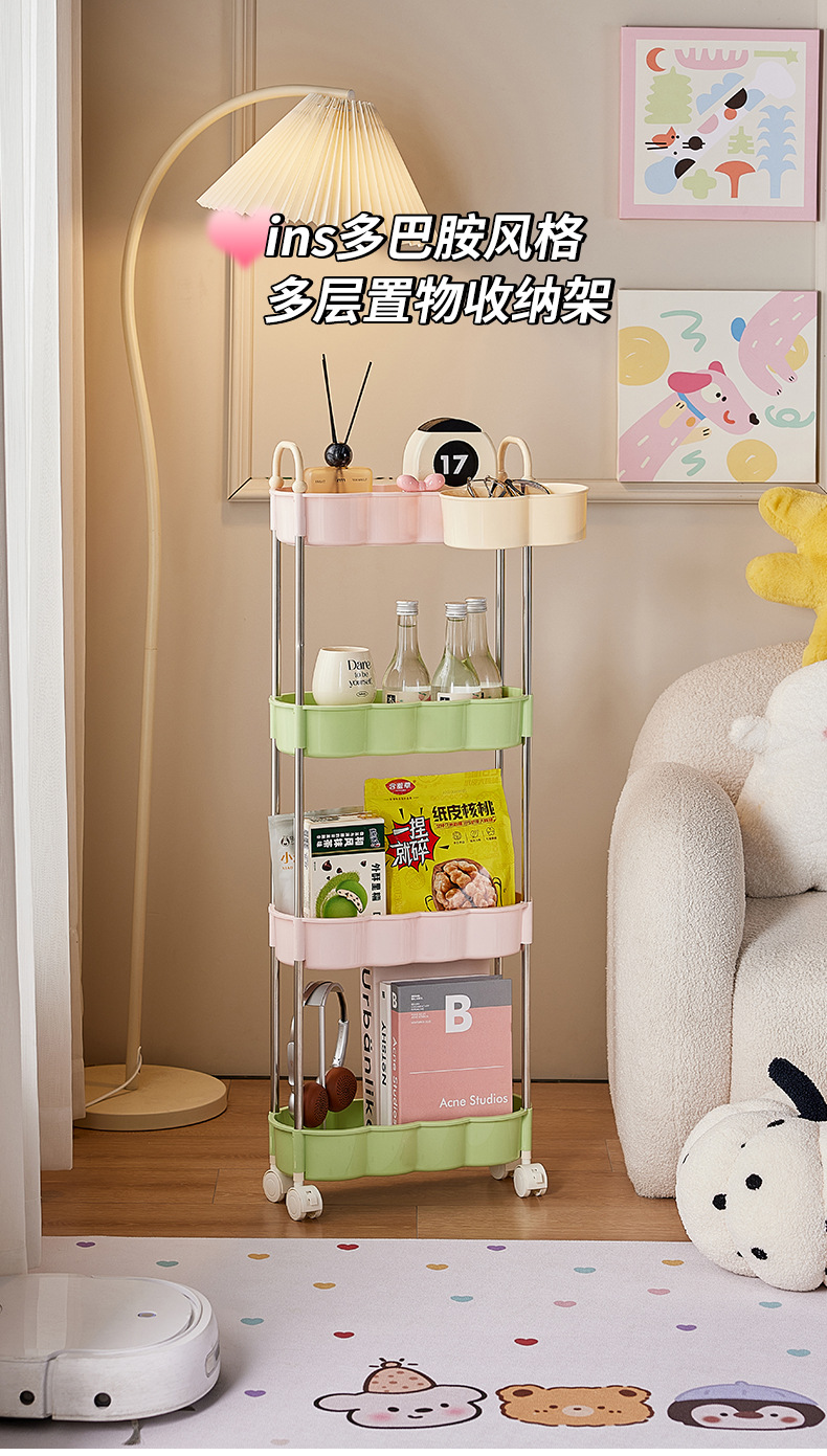 多巴胺小推车大容量落地零食收纳架宿舍桌下夹缝多层可移动置物架