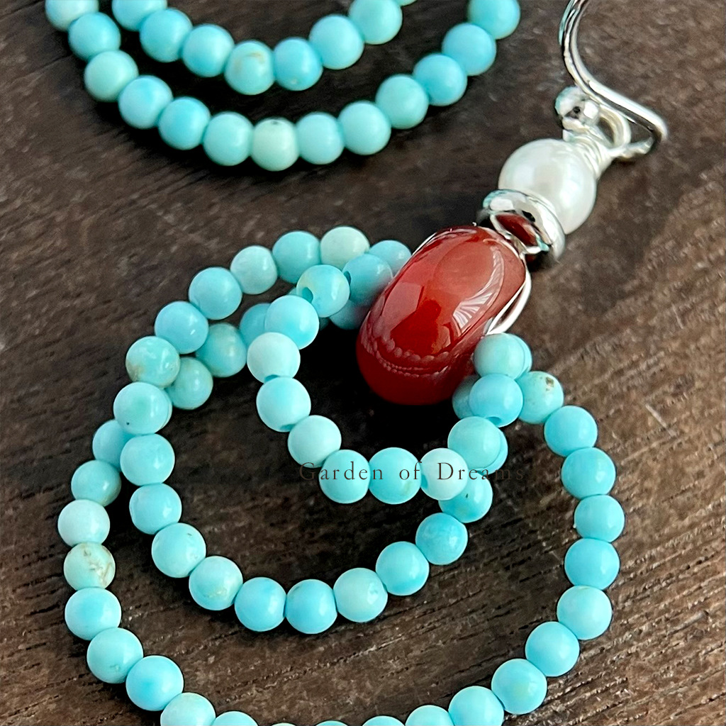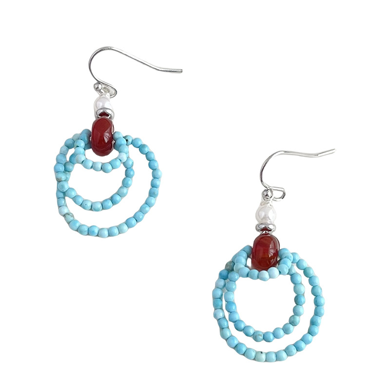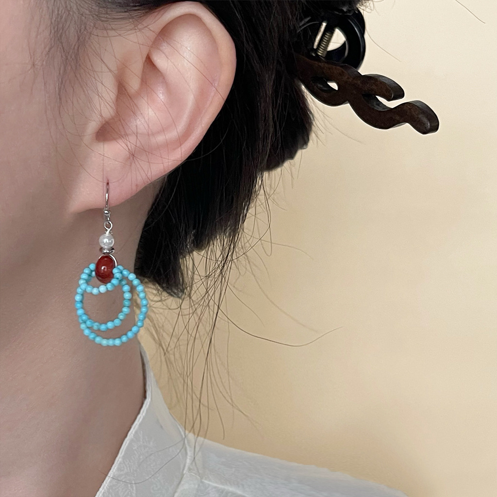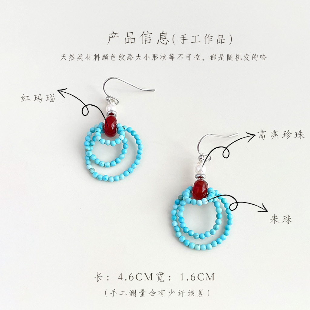 纳木错~原创手作红玛瑙耳环文艺复古民族风绿松石耳钩串珠耳饰品