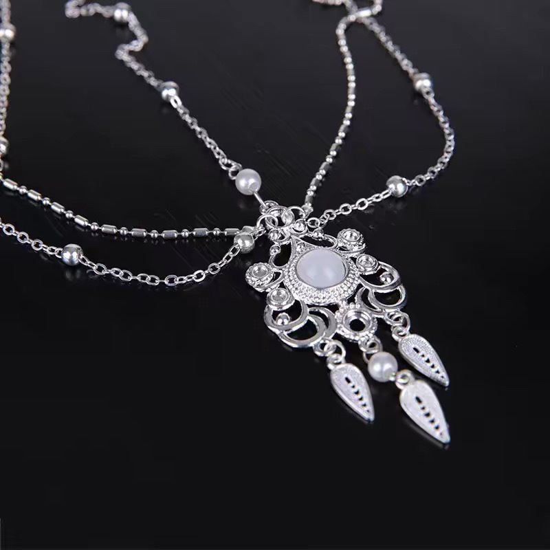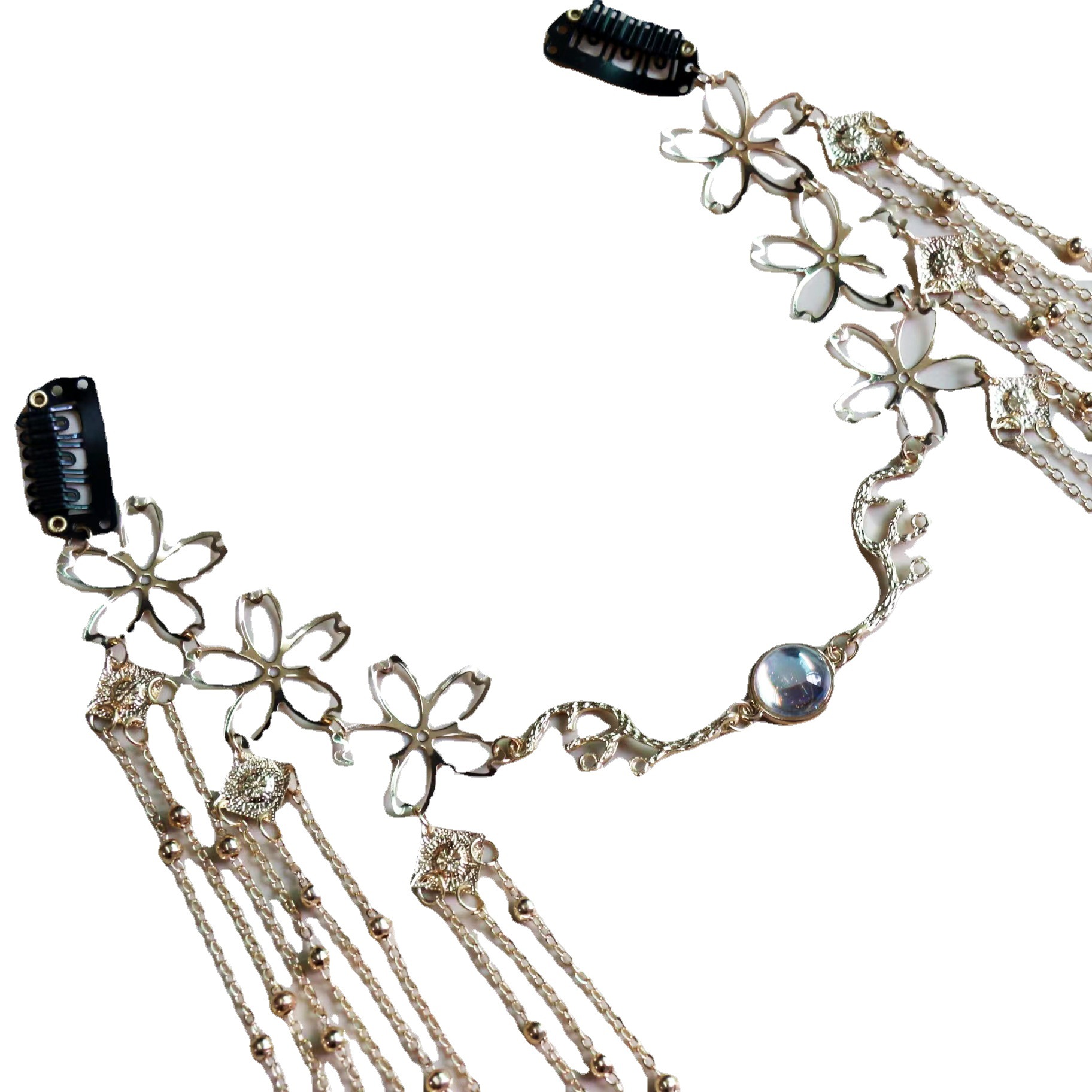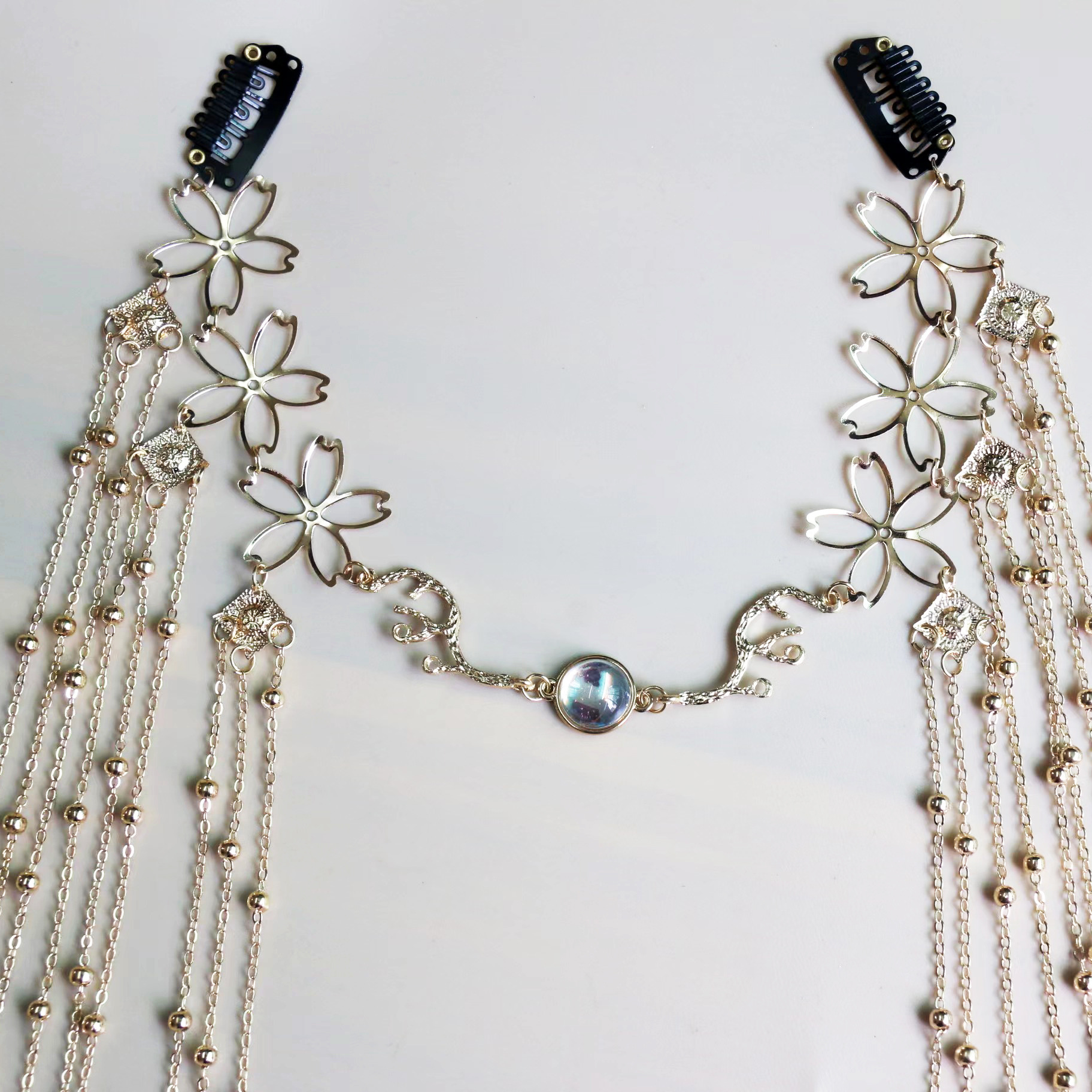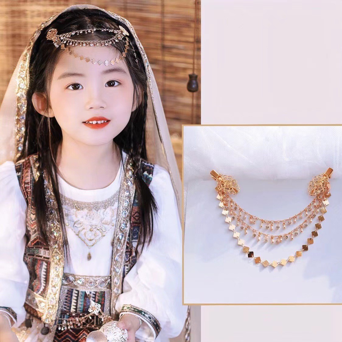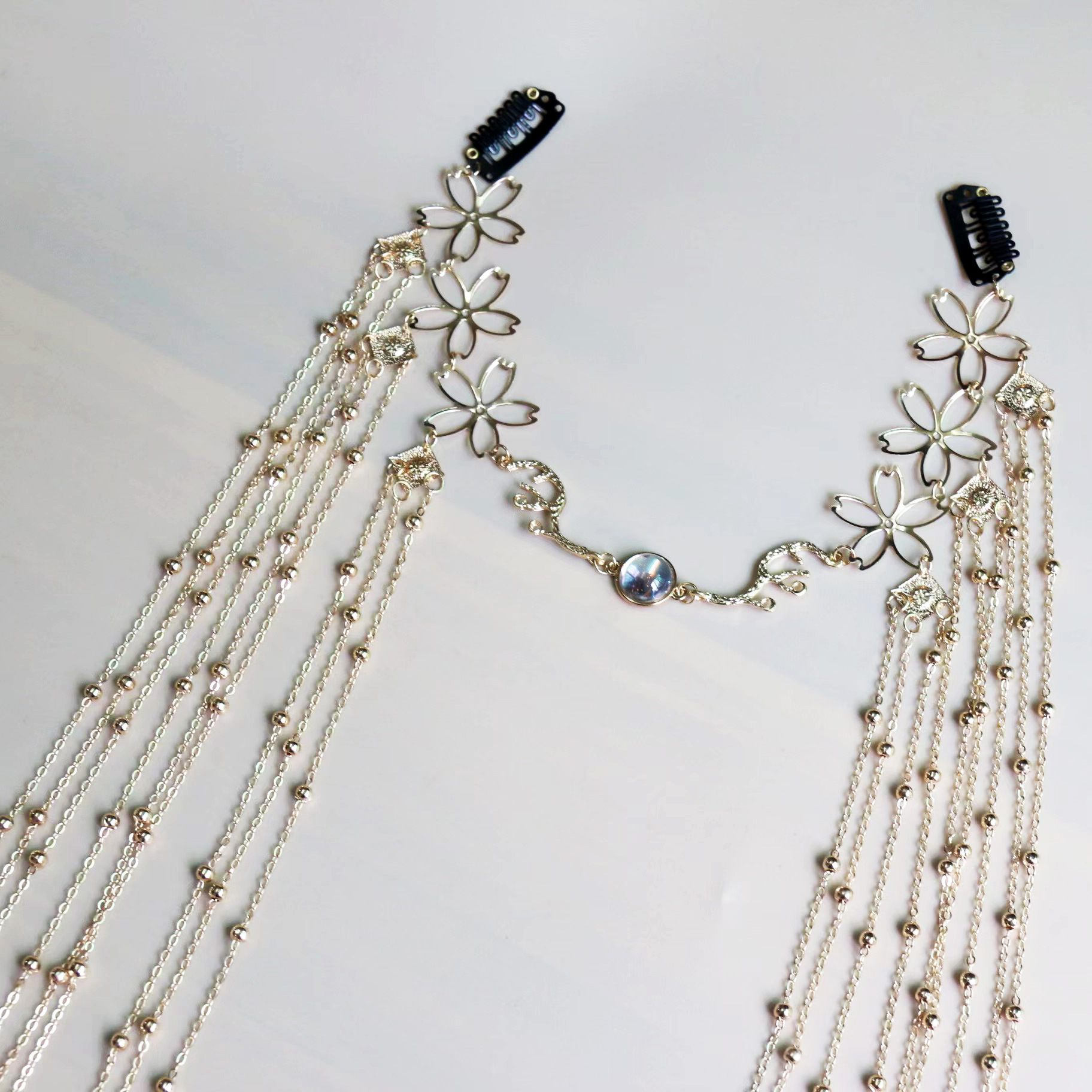 新款流苏古风汉服古装古风面帘额饰网红发饰金色夹珠链头饰发带