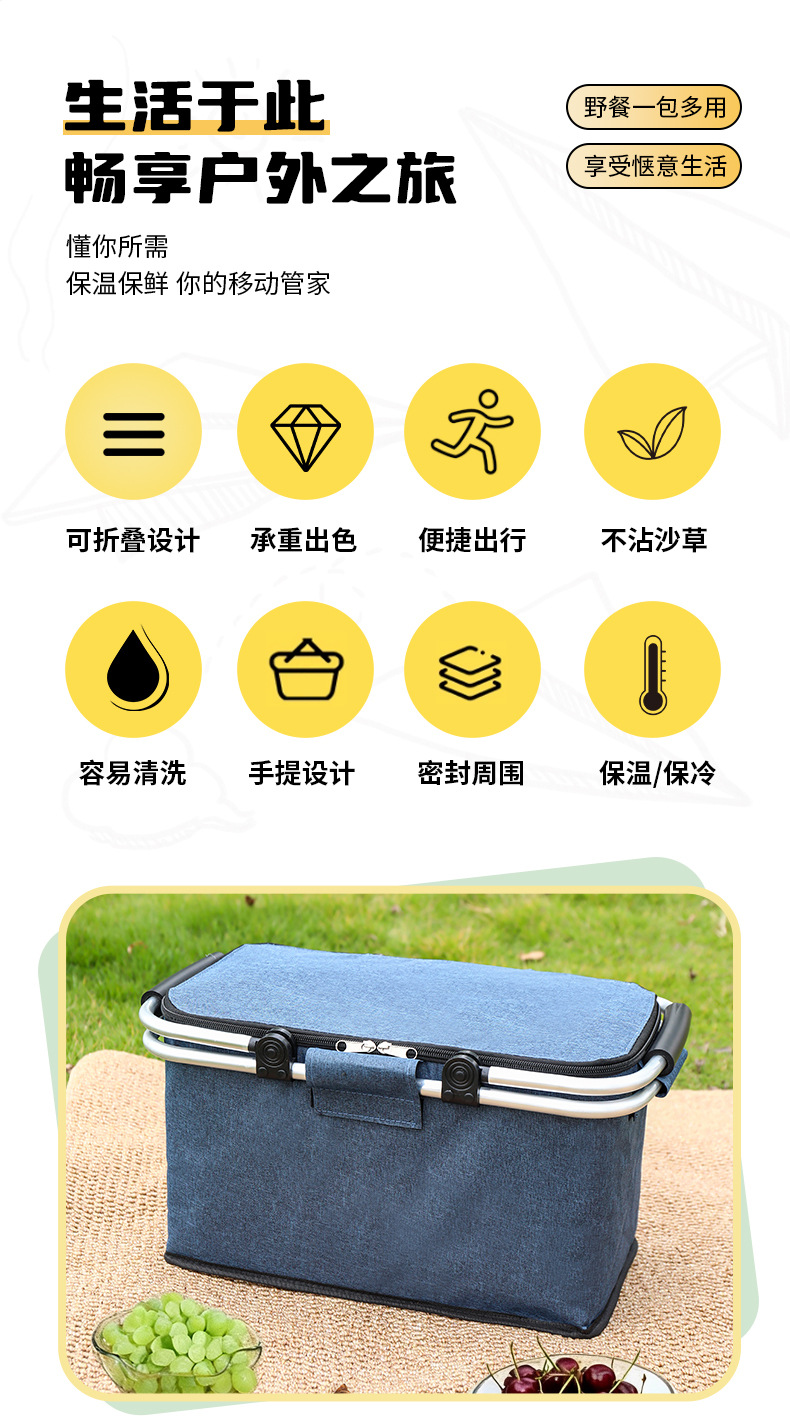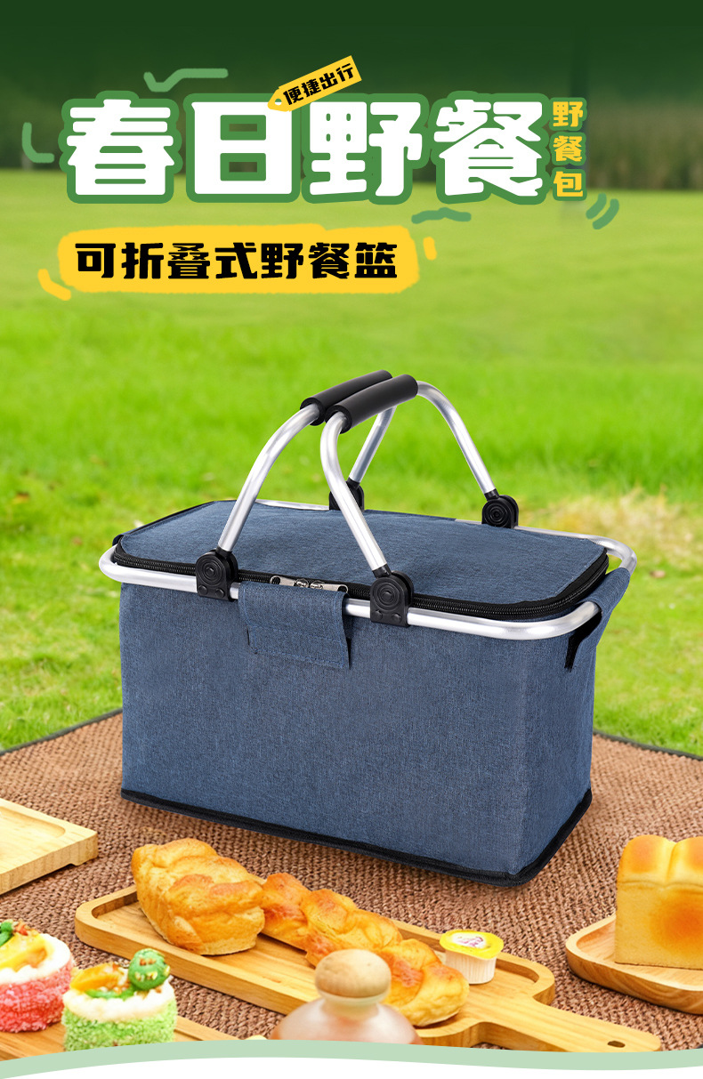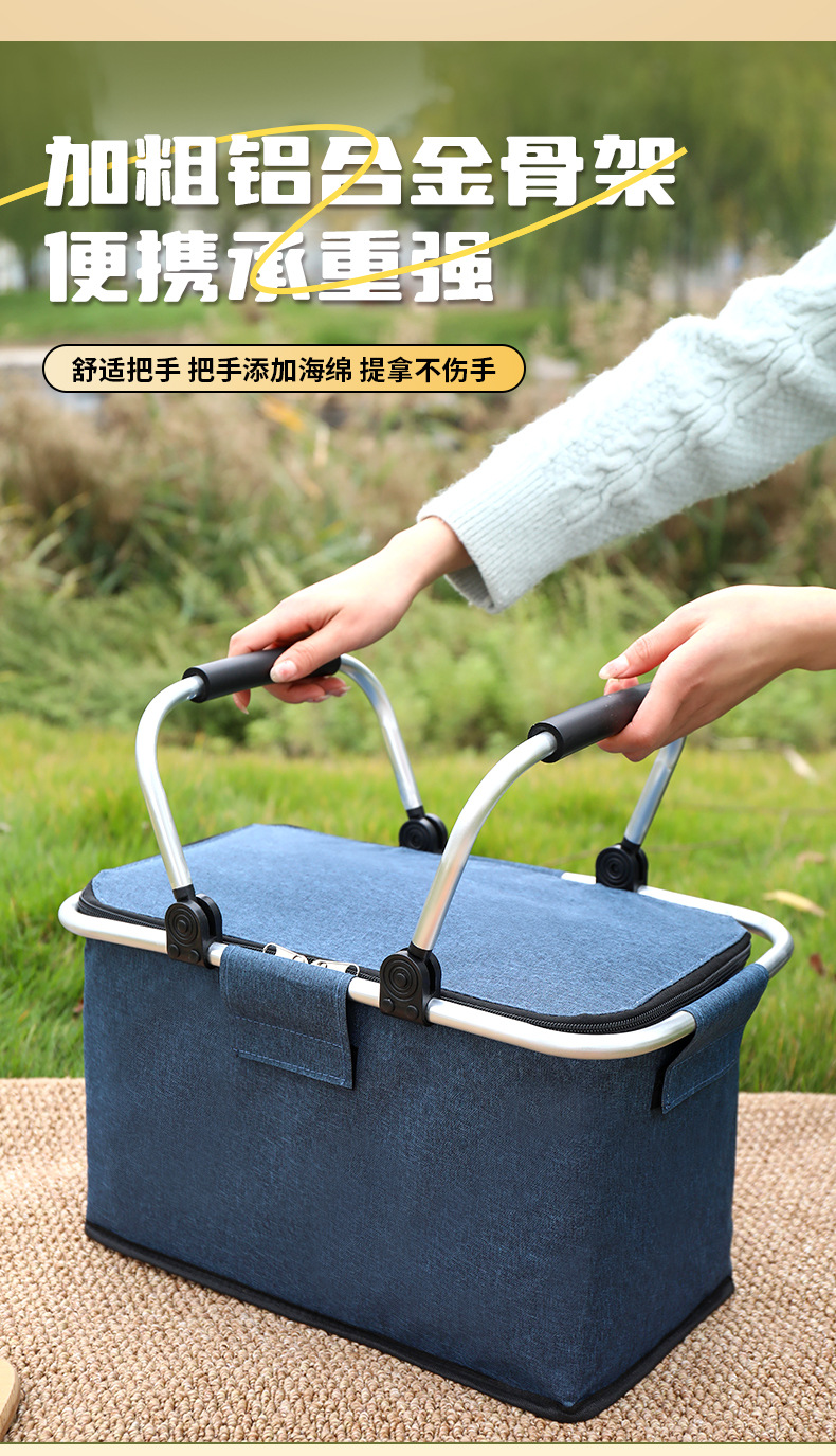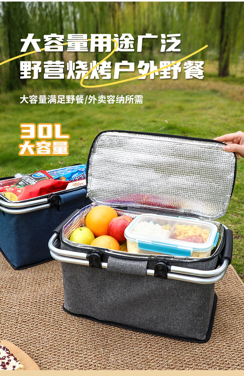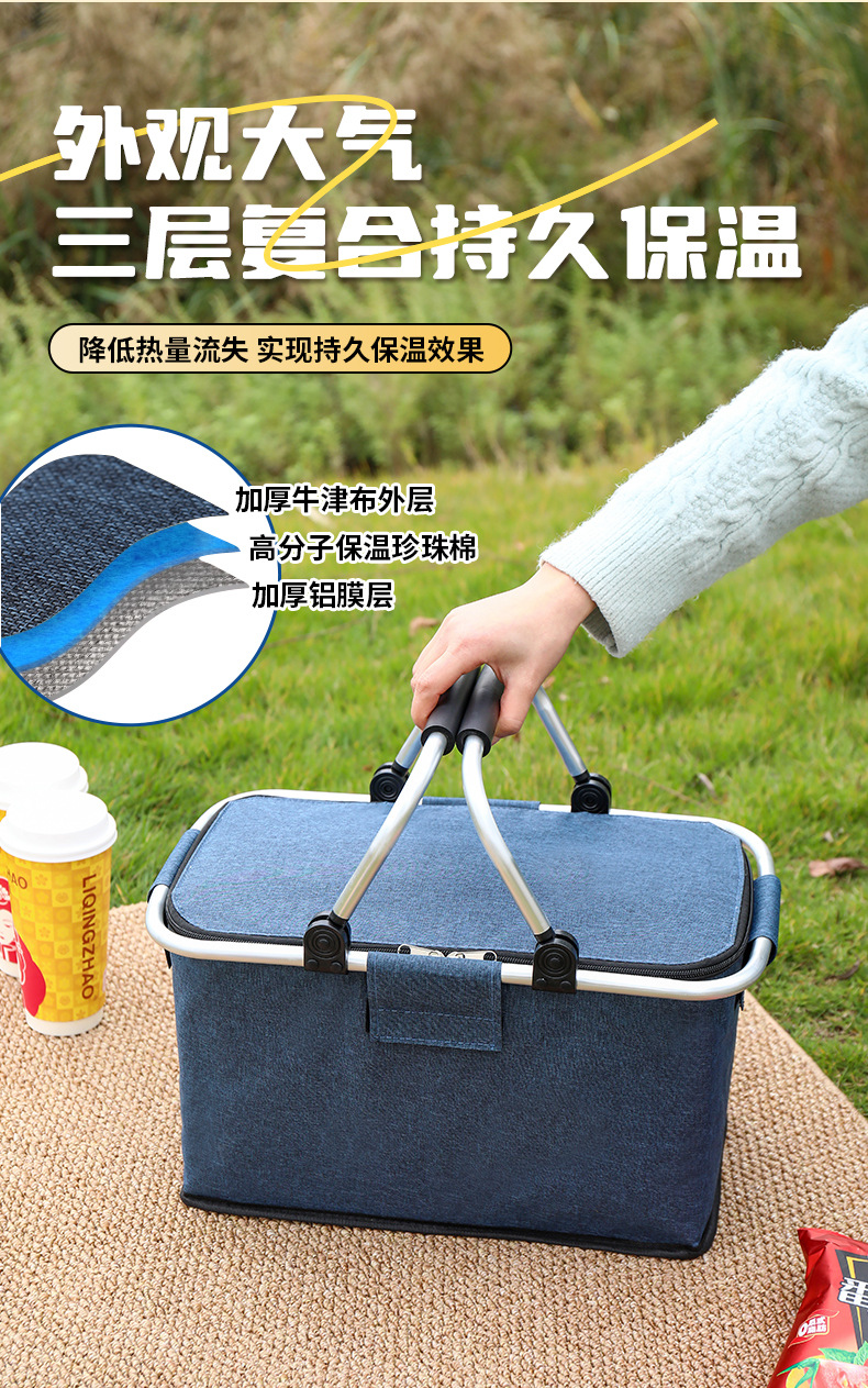 跨境热销户外野餐篮大容量保温篮牛津布折叠野餐包手提保温冰袋