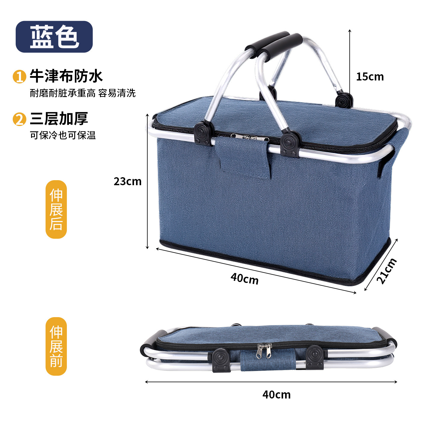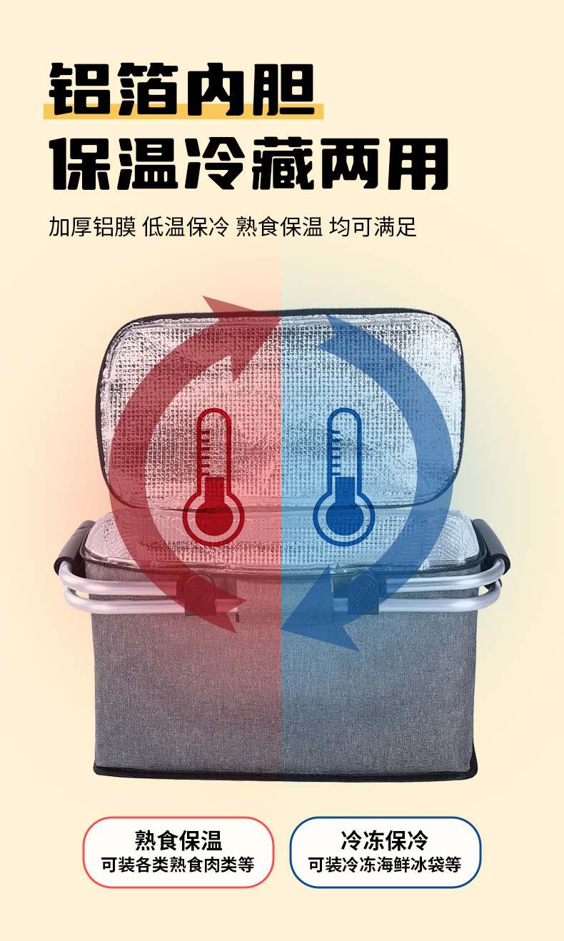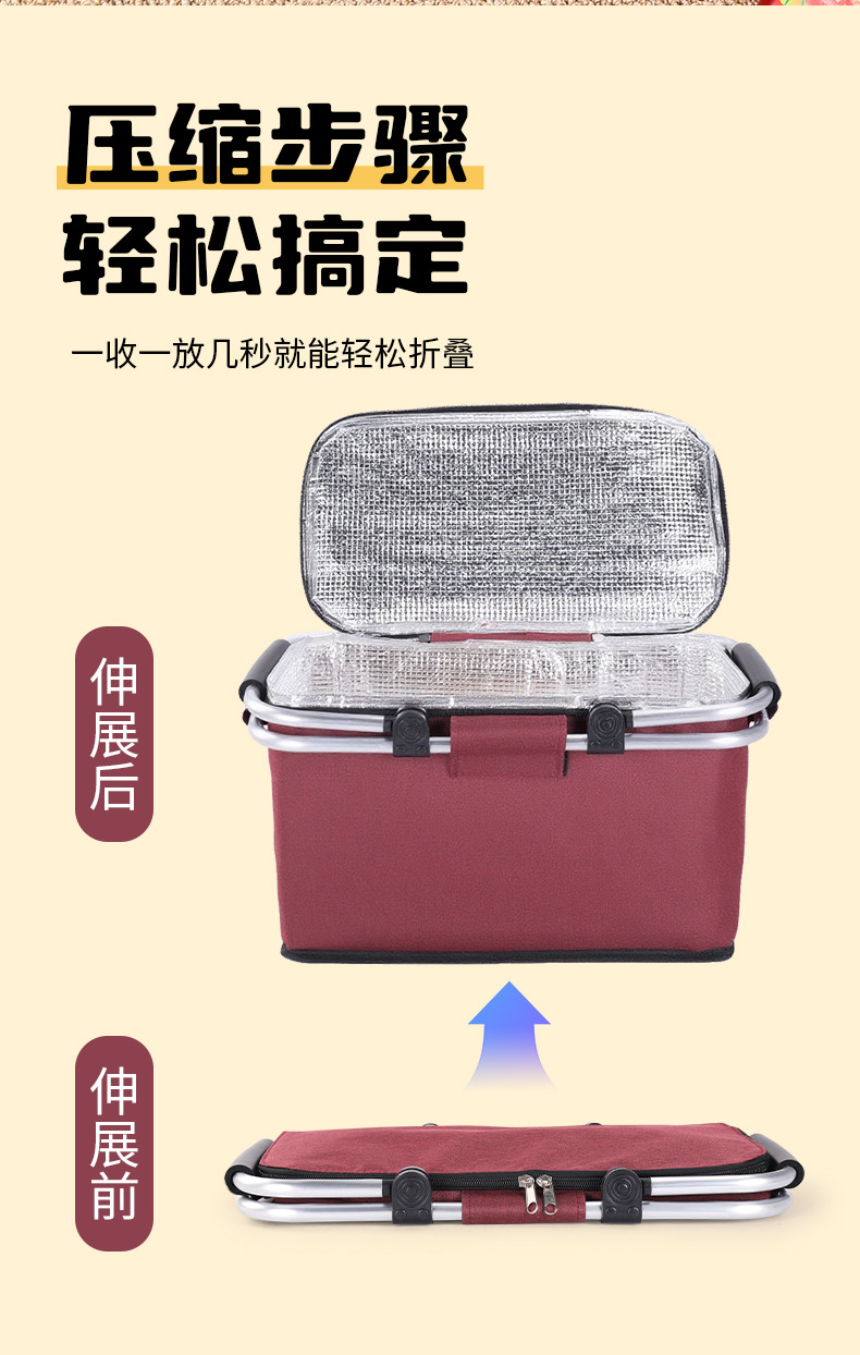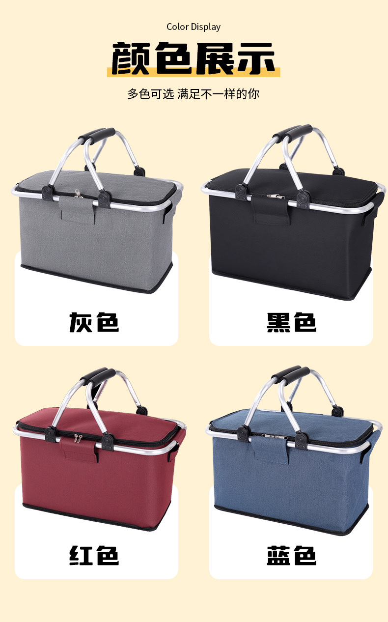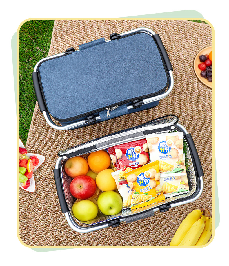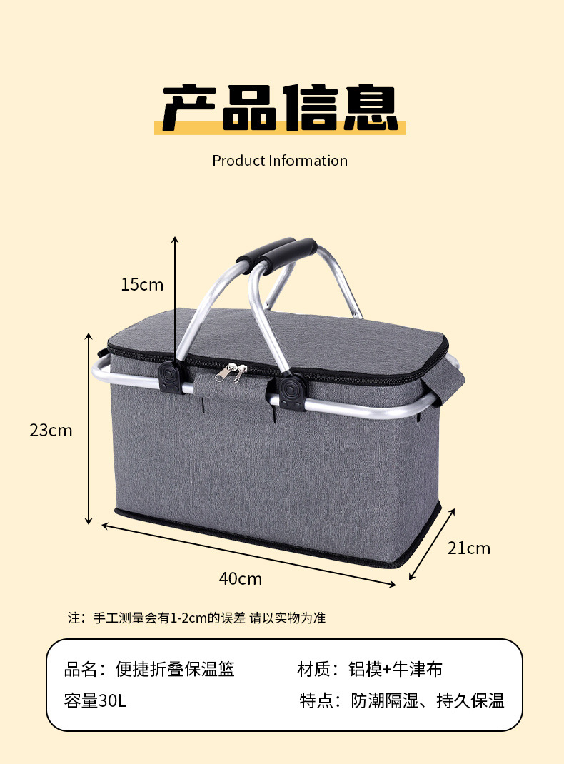 跨境热销户外野餐篮大容量保温篮牛津布折叠野餐包手提保温冰袋