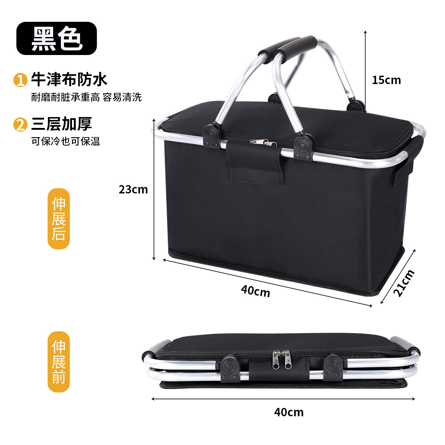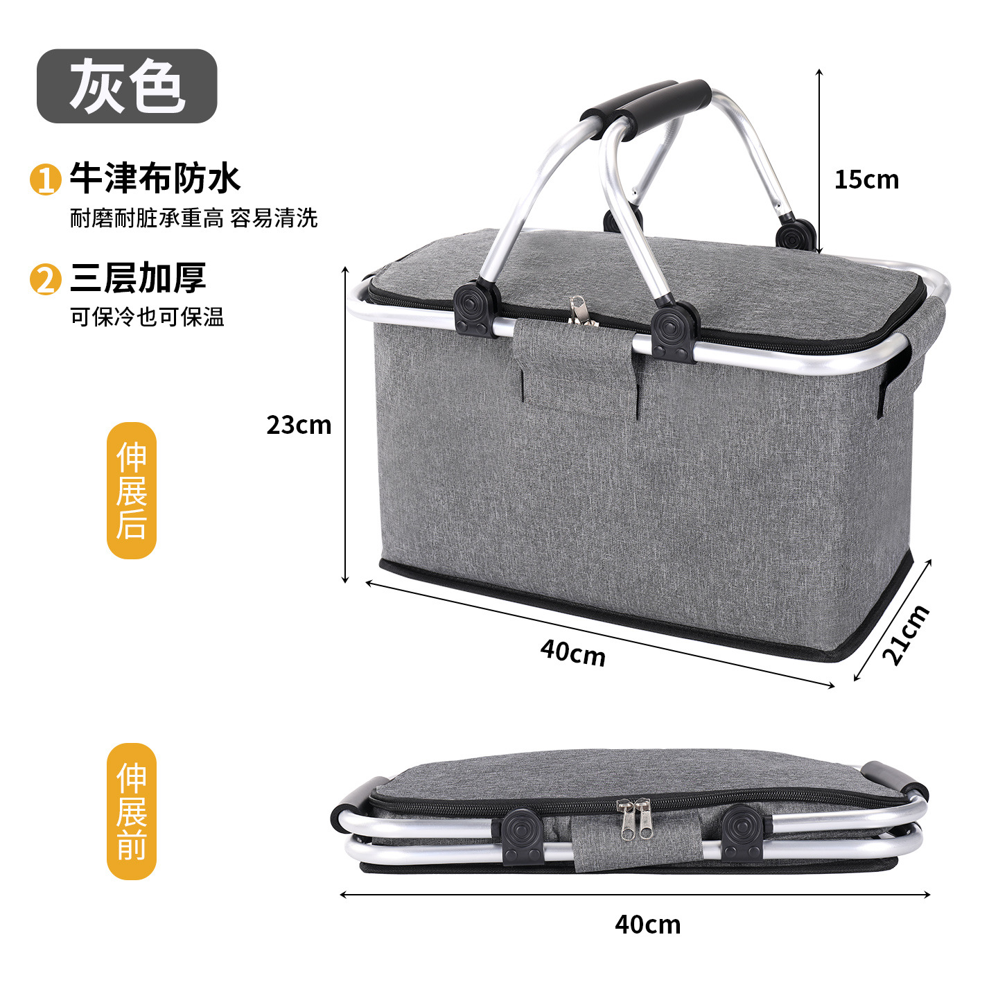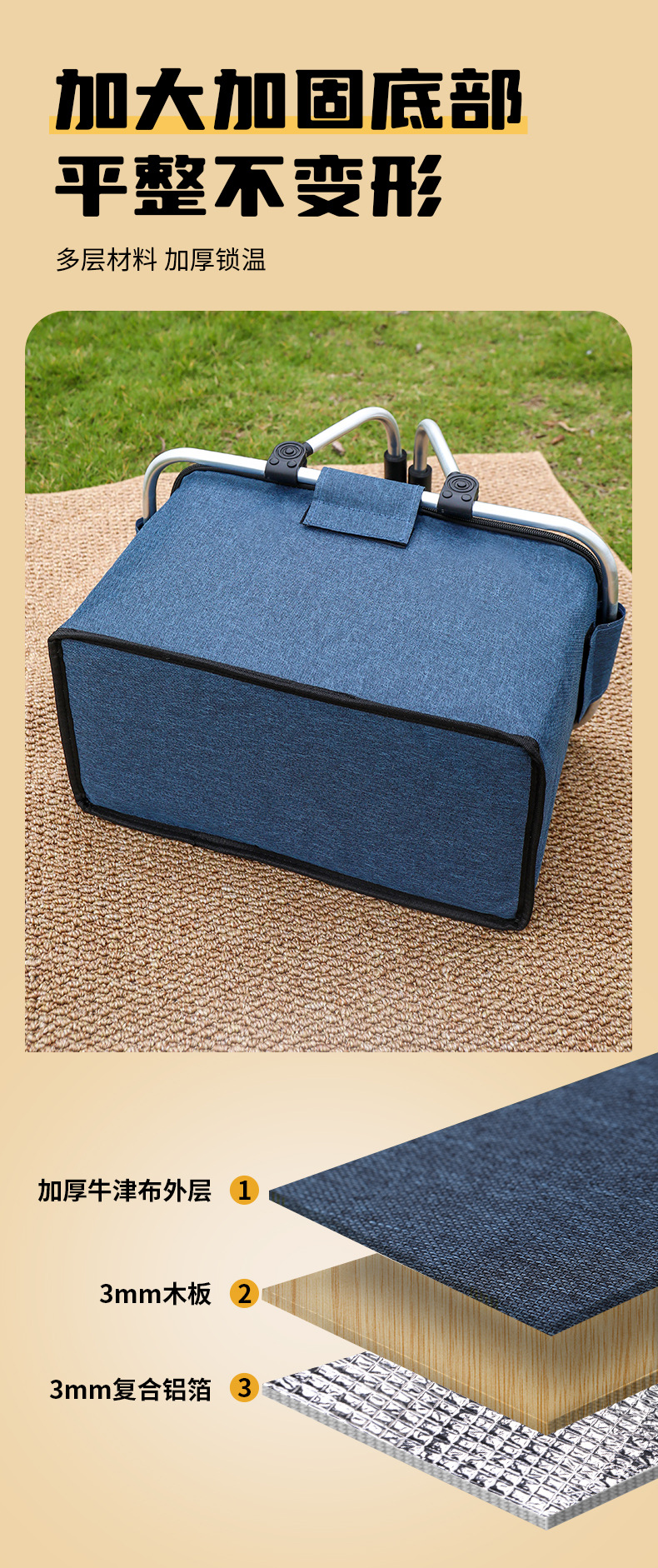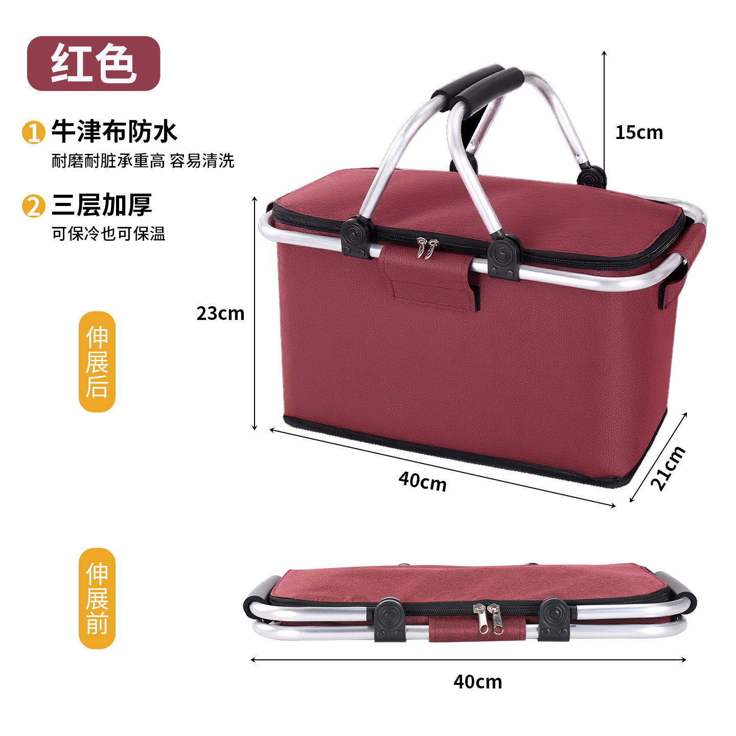 跨境热销户外野餐篮大容量保温篮牛津布折叠野餐包手提保温冰袋