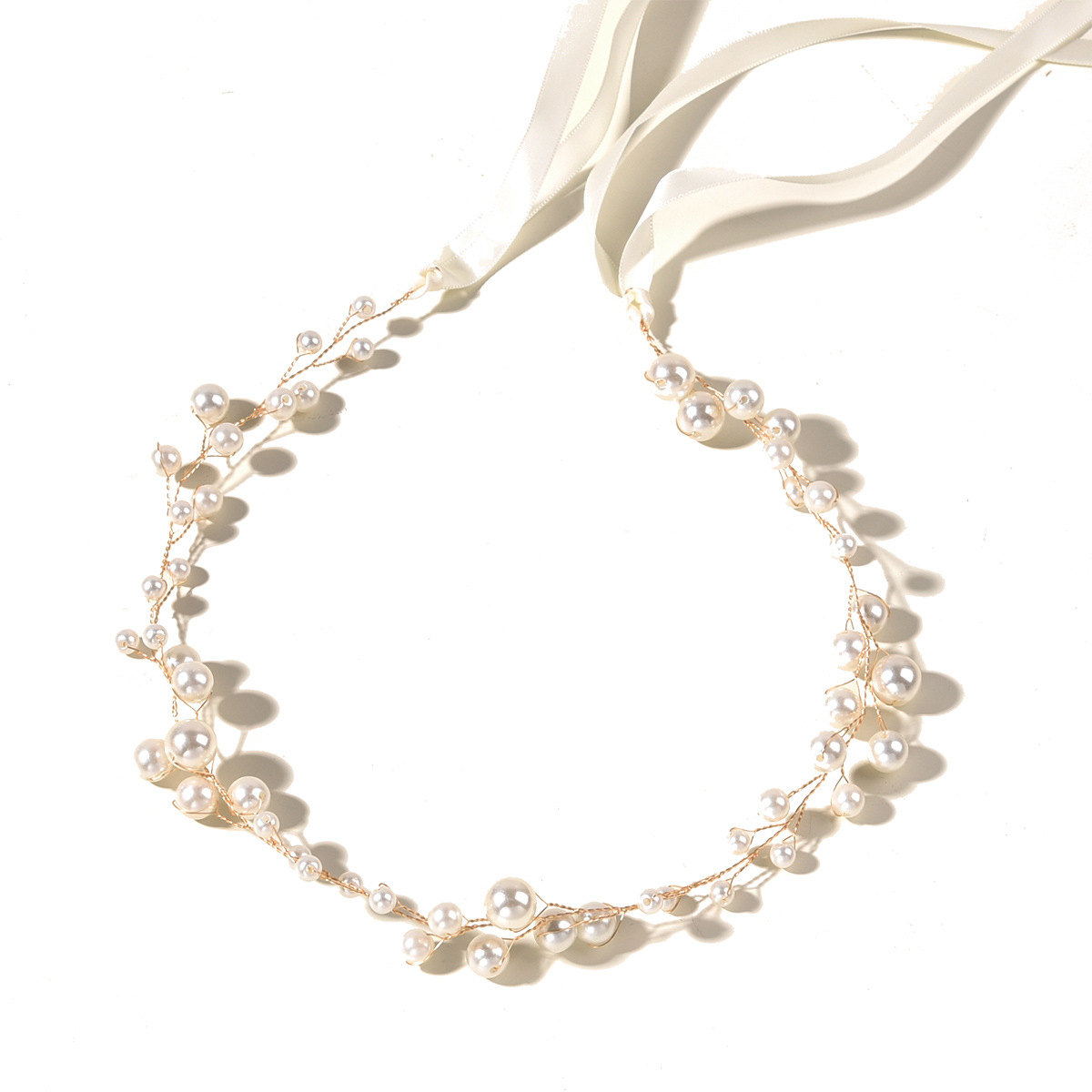 新娘婚礼发饰 欧美跨境 高亮珍珠保色铜线扭珠发链发带头饰