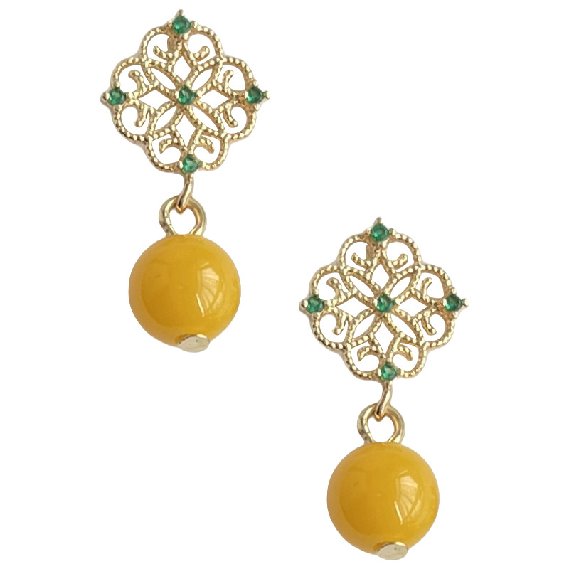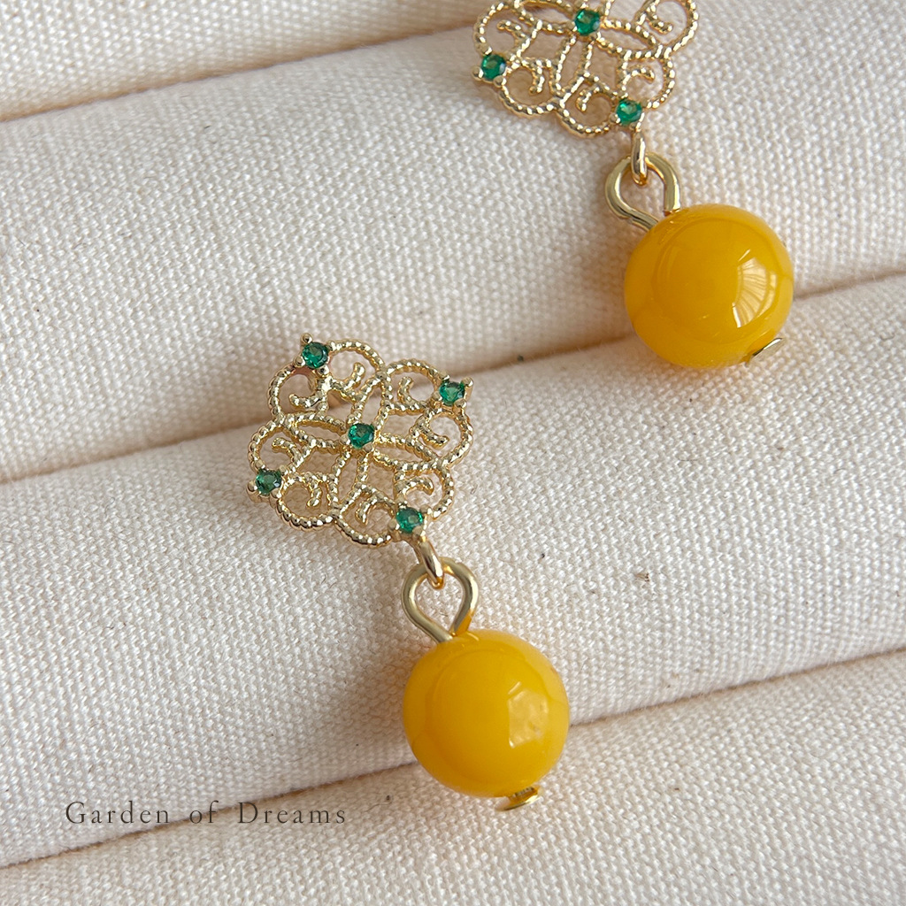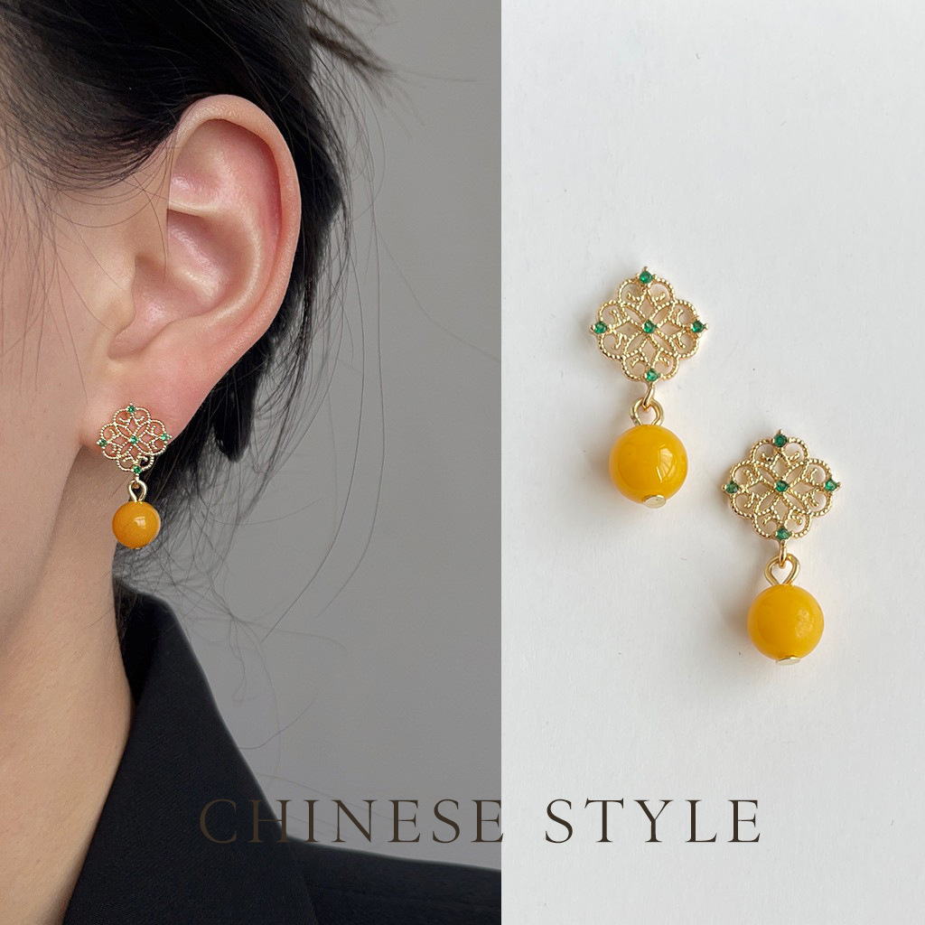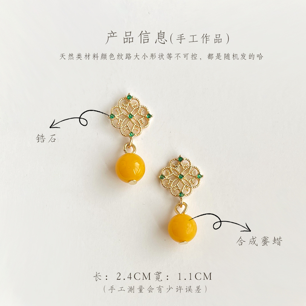 国风原创手作宫廷风镂空微镶锆石耳环古风耳钉新中式高级感耳饰品