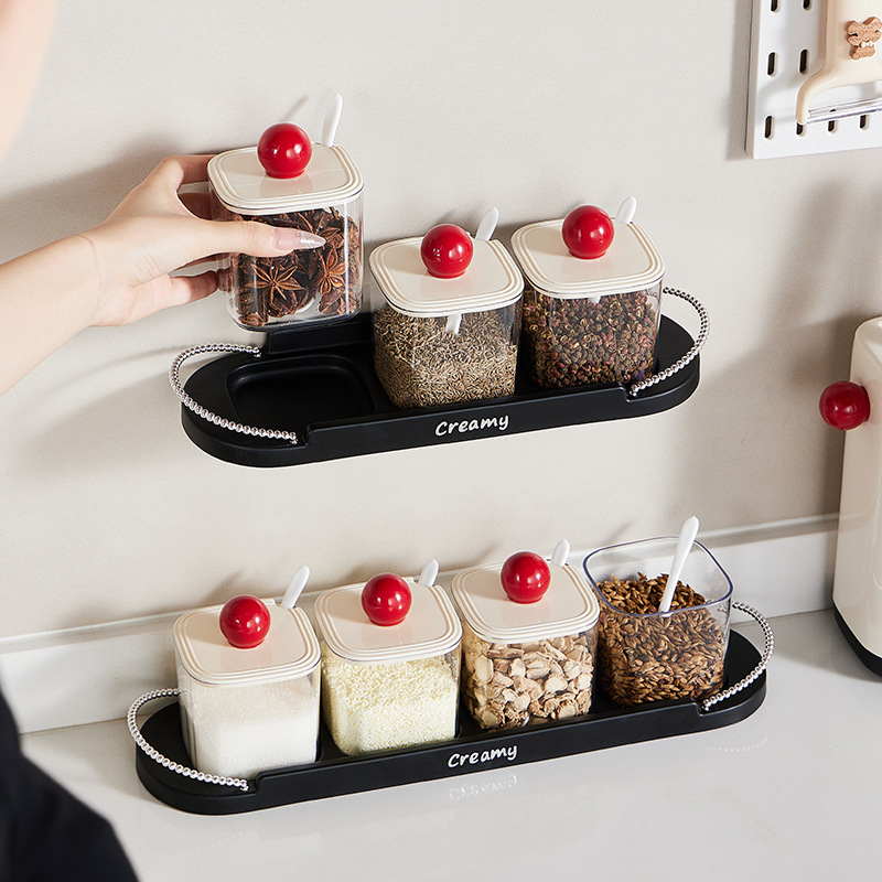 塑料组合调料罐调料盒厨房家用盐罐调味料收纳盒调味瓶罐玻璃调料