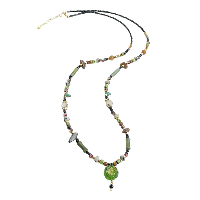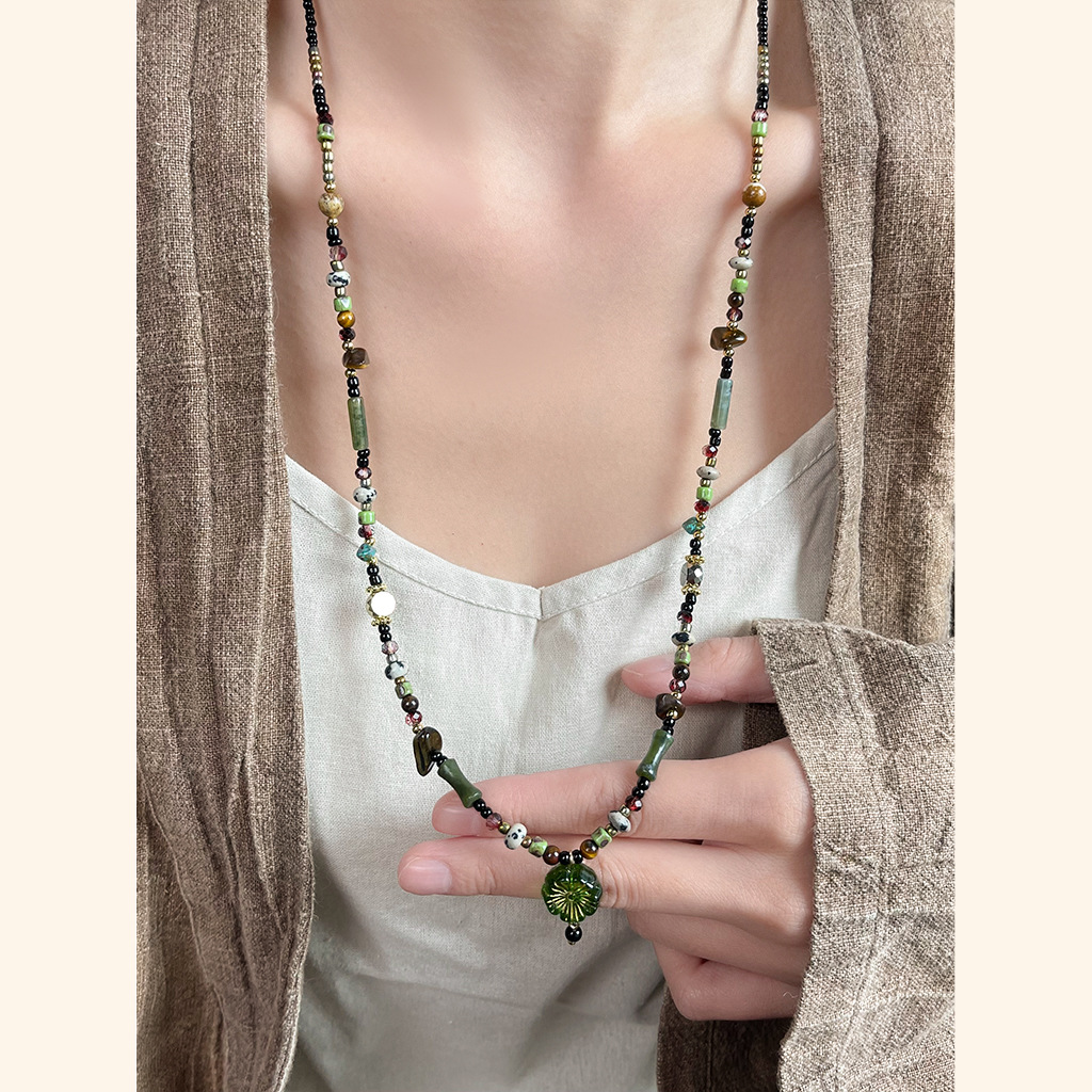 绿野~国风手作复古捷克琉璃项链天然石串珠毛衣链小众轻奢项饰女