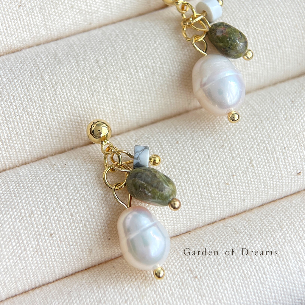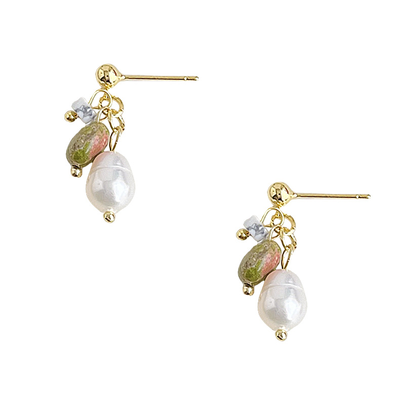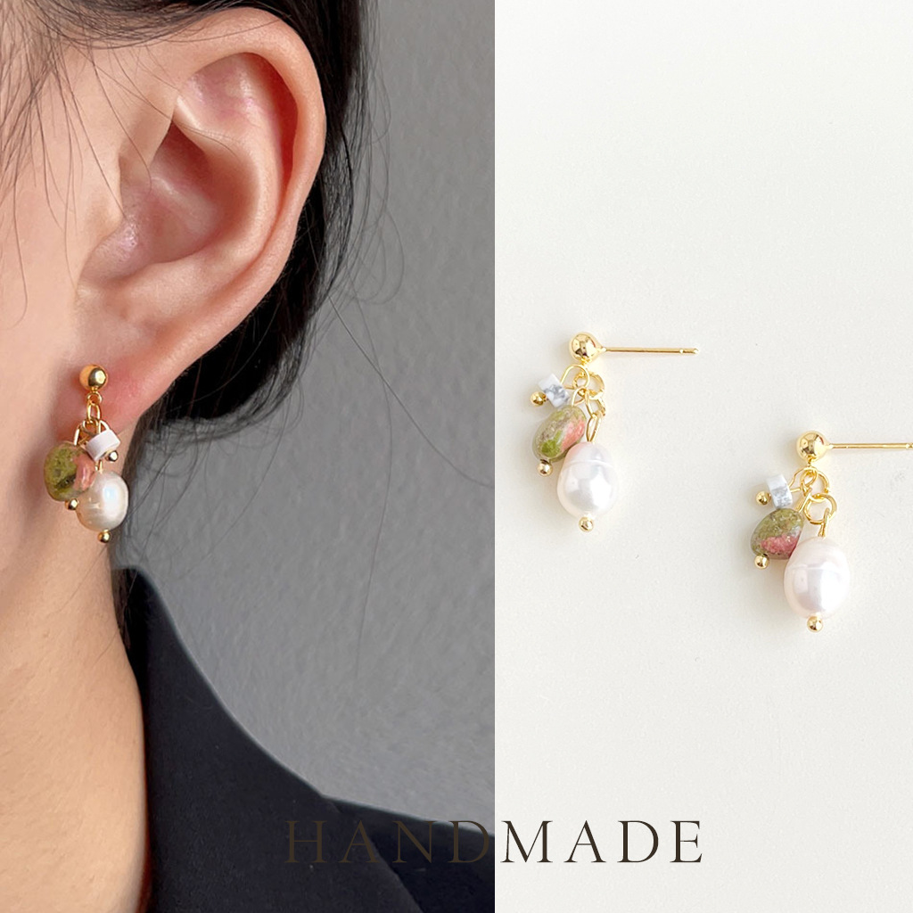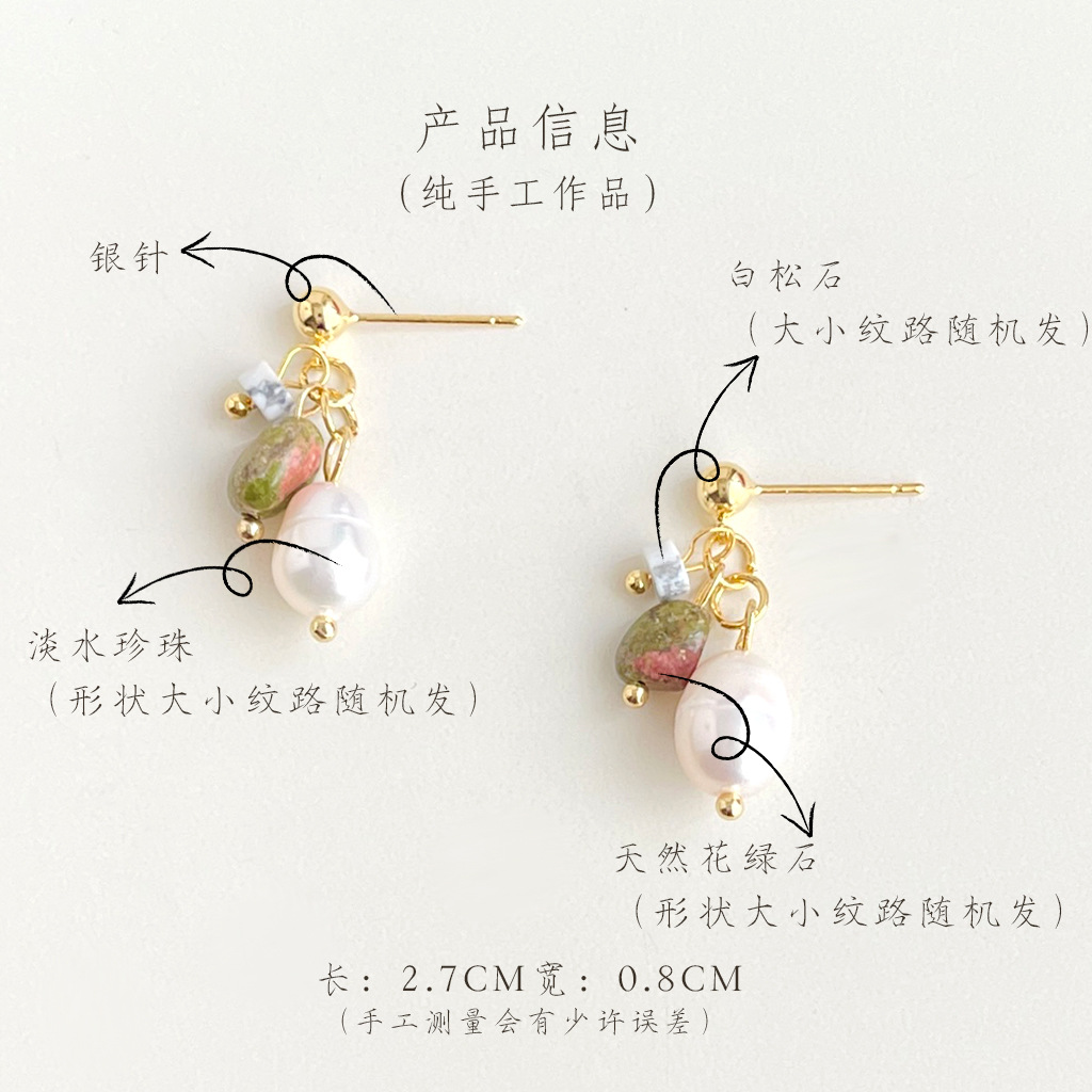 国潮手作原创设计淡水珍珠天然石耳钉复古天然石耳环新中式耳饰品