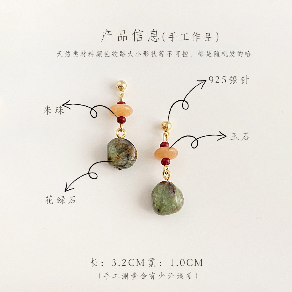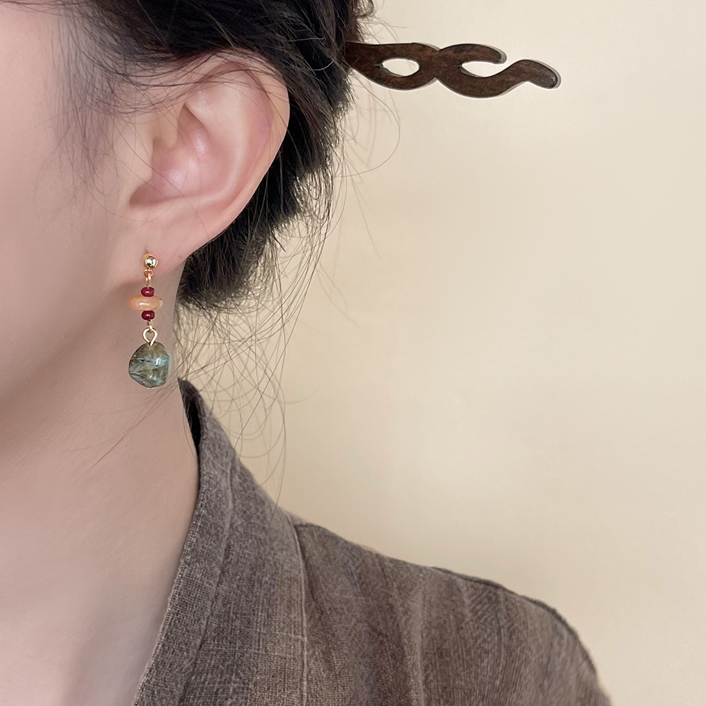 苔原~国风原创手作天然石耳钉文艺复古耳环古风新中式高级感耳饰