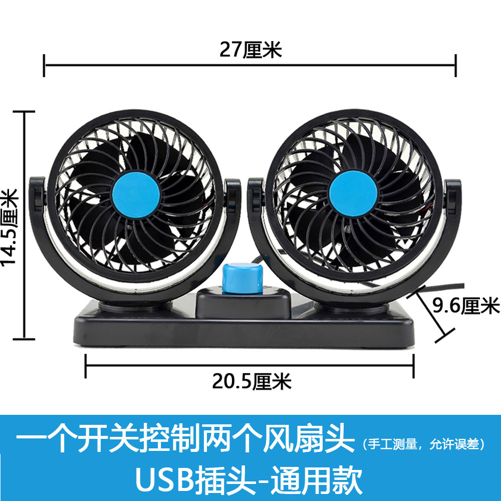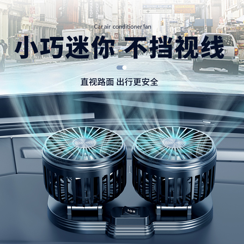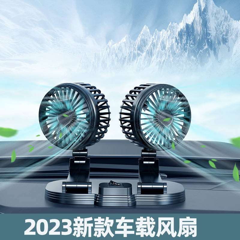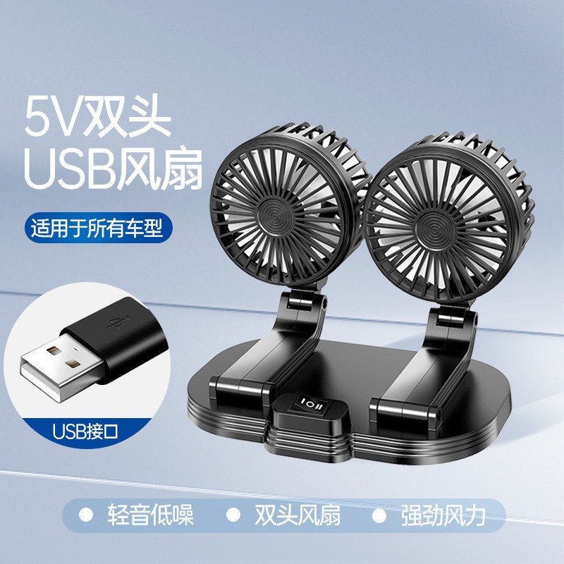 2023车载风扇双头usb折叠风扇12v24v大货车大风力车用电风扇降温
