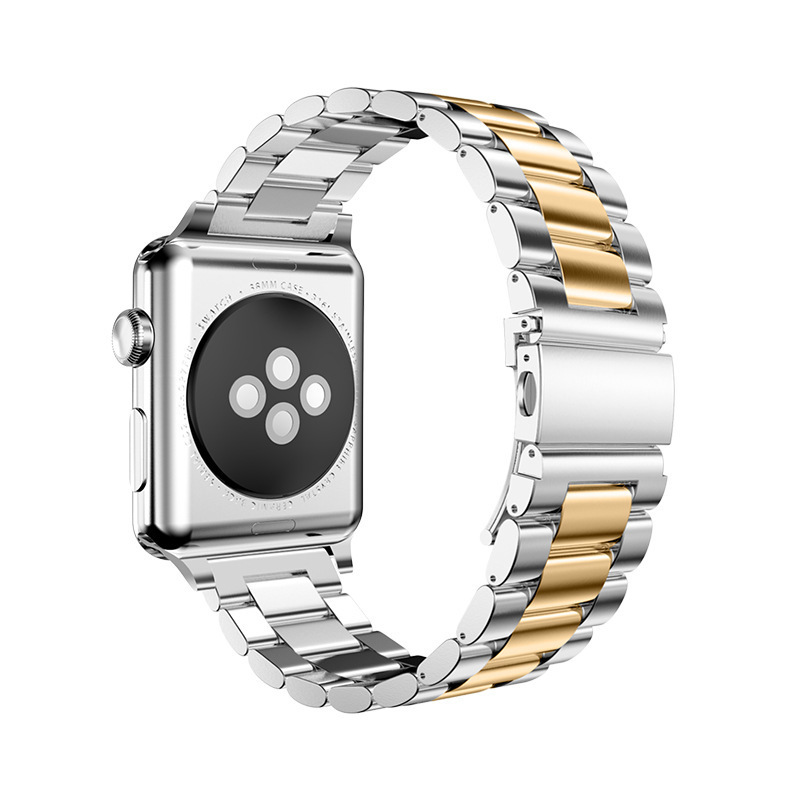适用苹果三星华为GT4表带三珠不锈钢实心表带金属iWatch手表带