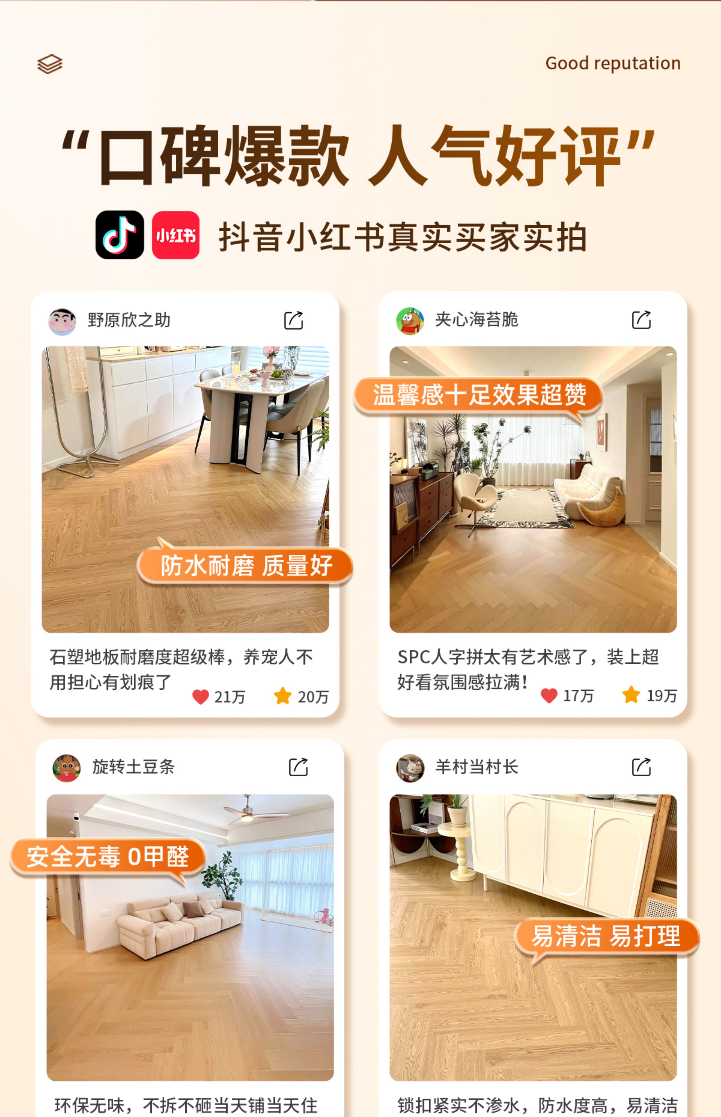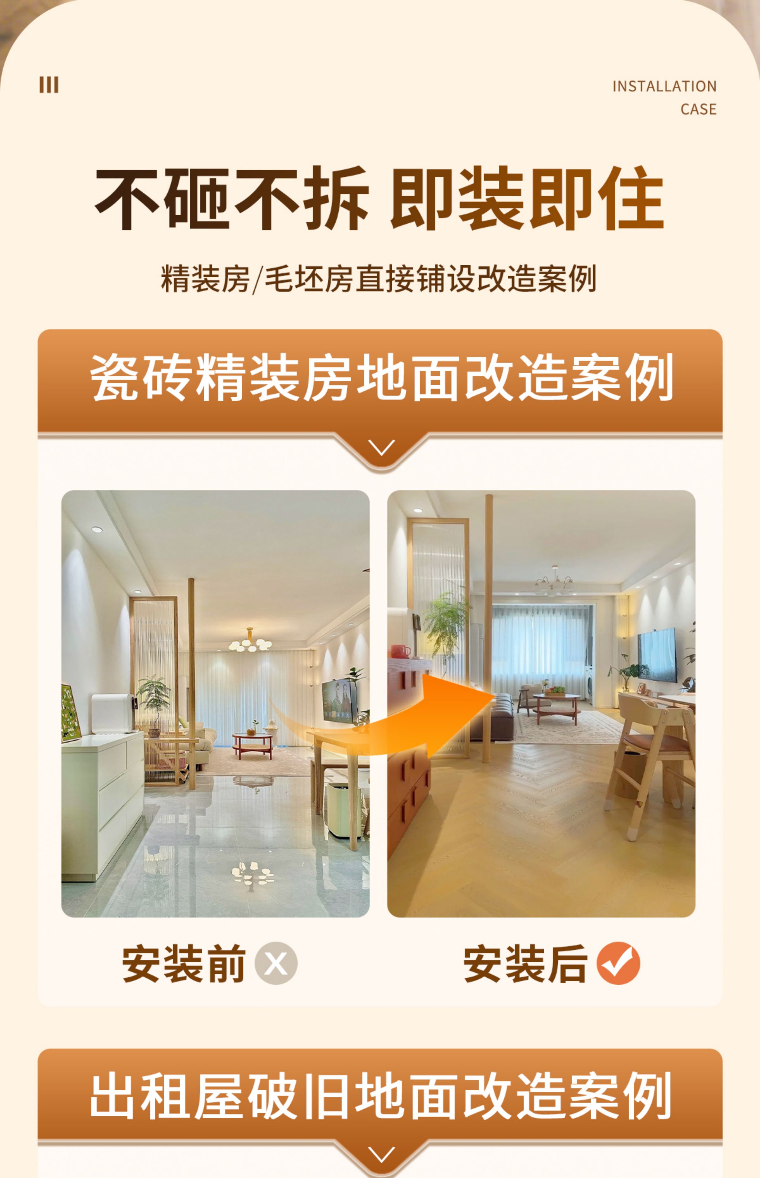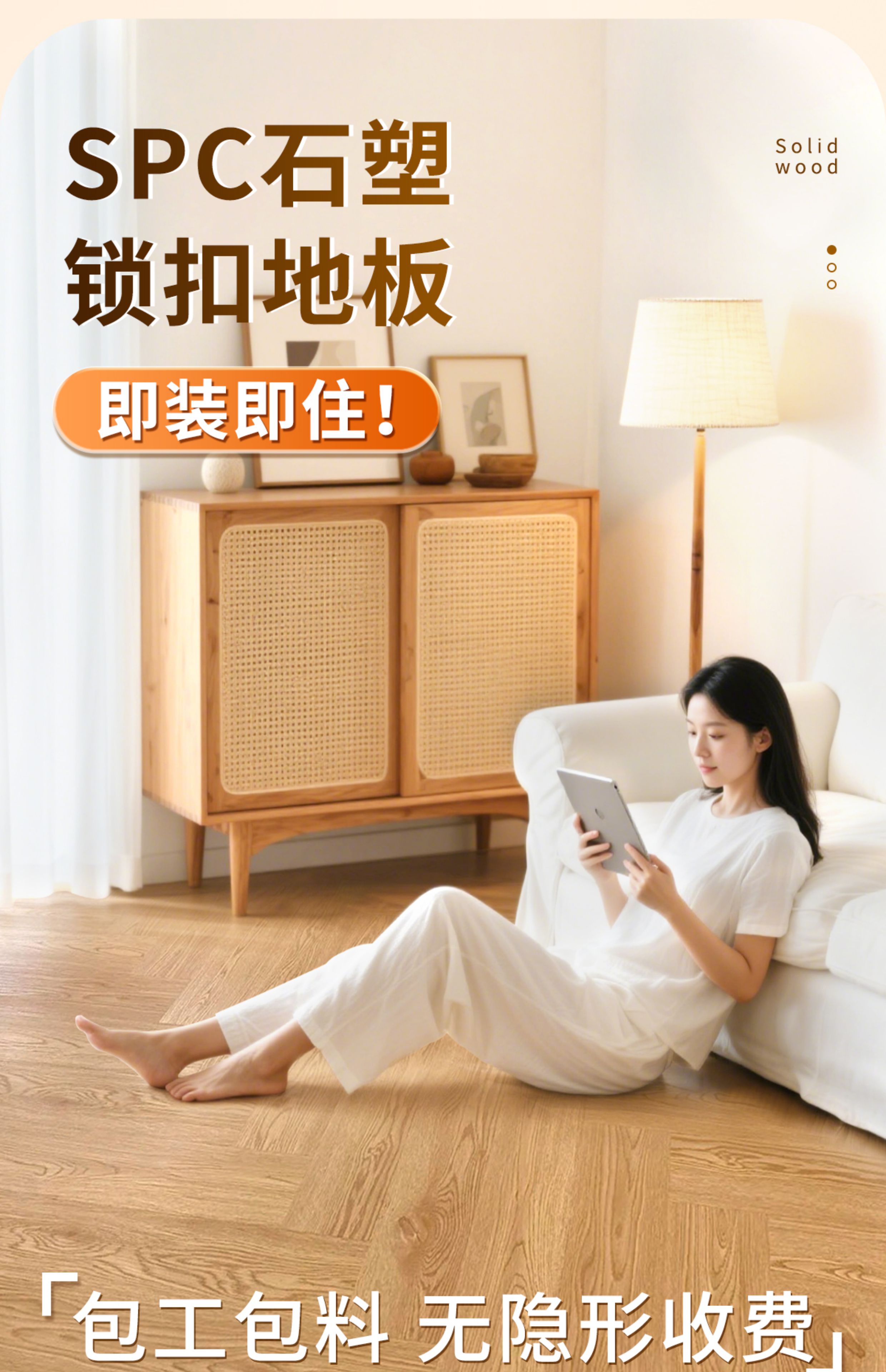 spc石塑地板人字拼翻新改造家用木地板室内瓷砖直接铺锁扣地板包