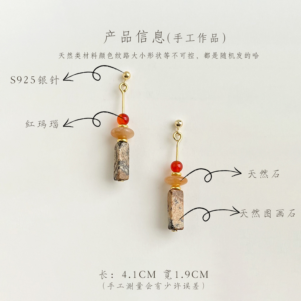国风原创手作天然石红玛瑙耳环复古文艺新中式耳钉高级感汉服耳饰